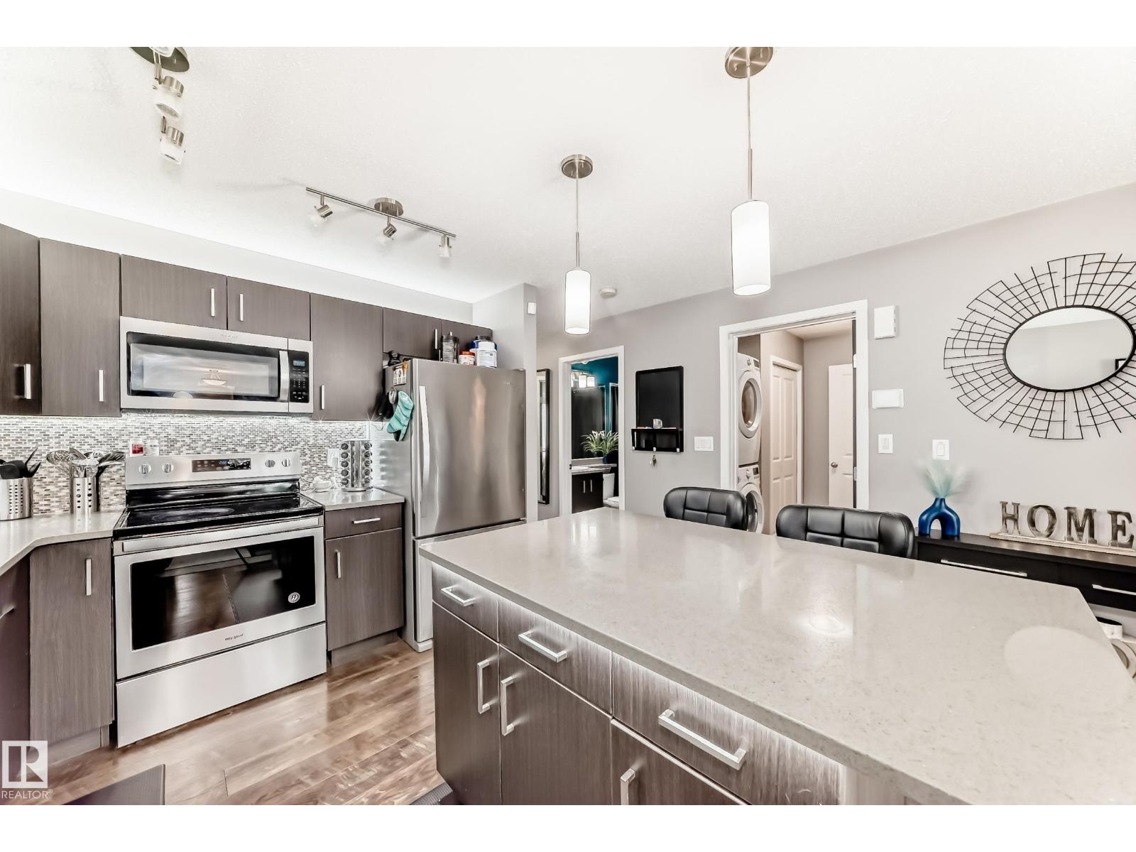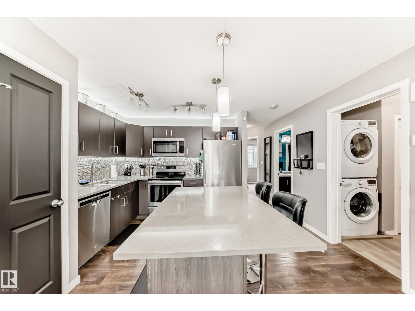 This beautifully upgraded 2 bedroom home is sure to please. Upgrades include kitchen island with extra cabinet drawers, laminate flooring, tile and quartz countertops in the kitchen and stackable washer and dryer. This pet friendly home has a private fenced yard and a double (tandem garage) complete with 'man cave'. If that wasn't enough enjoy the NHL regulation sized skating rink, clubhouse and tobaggon hill in the winter. Summer entertainment consists of tennis courts, basketball court, children's playground, spray park, picnic areas and walking paths. Easy access to the Henday, Calgary Trail, South Common and quick access to the airport. (id:63190)