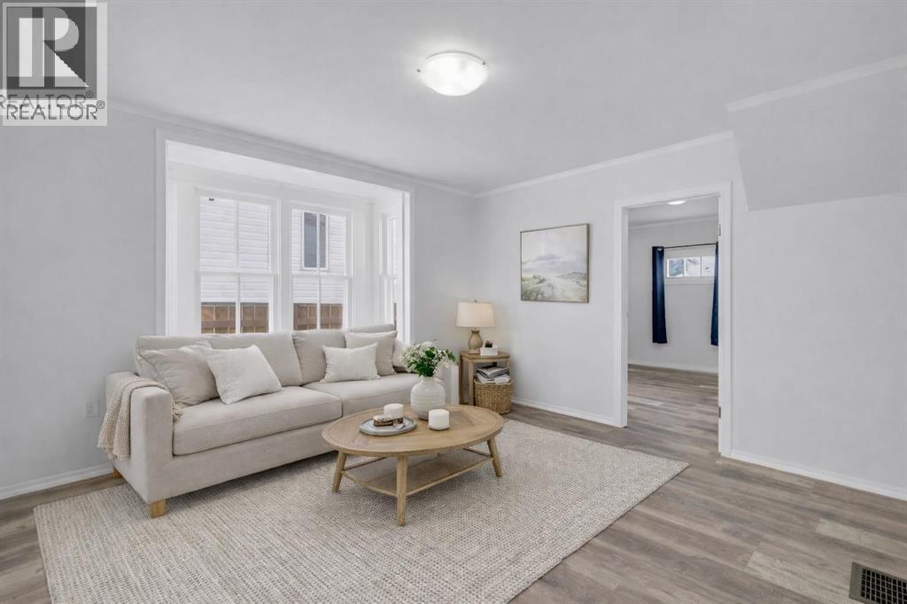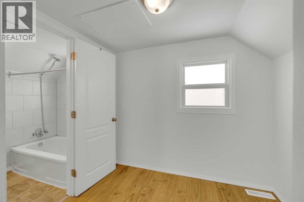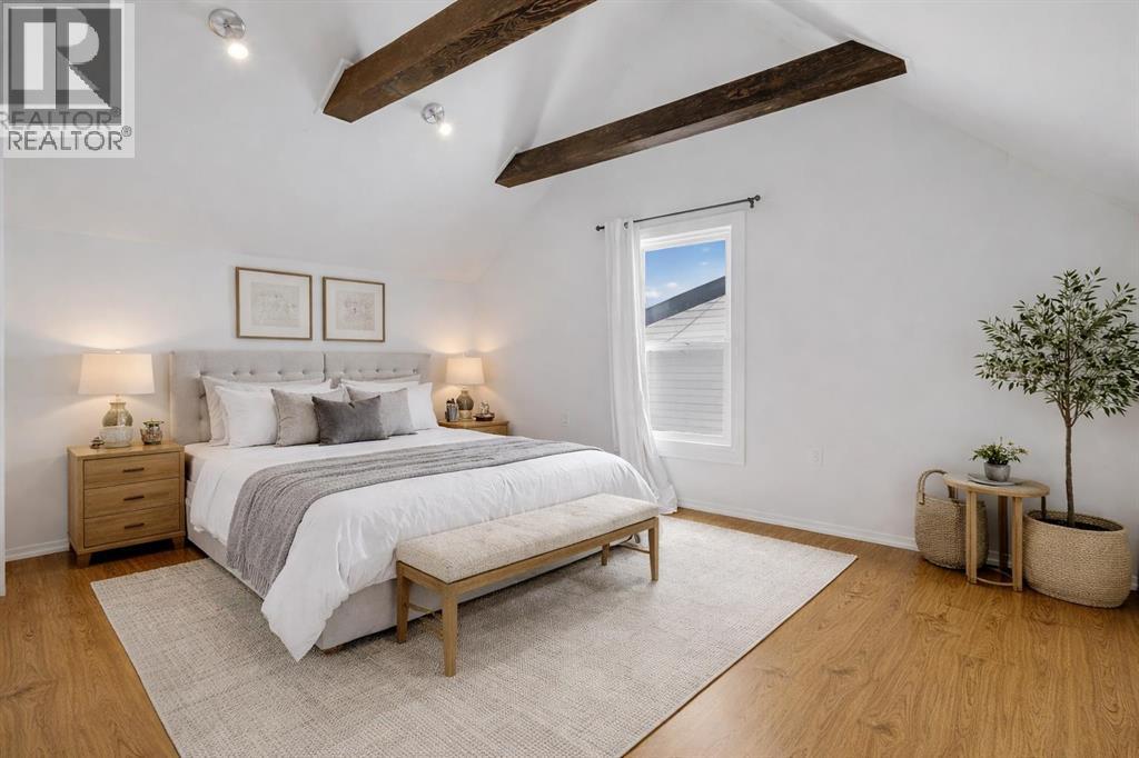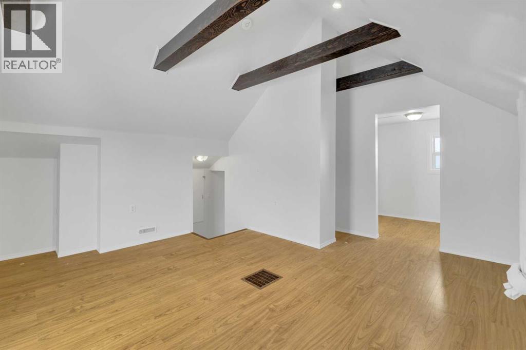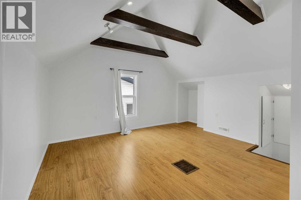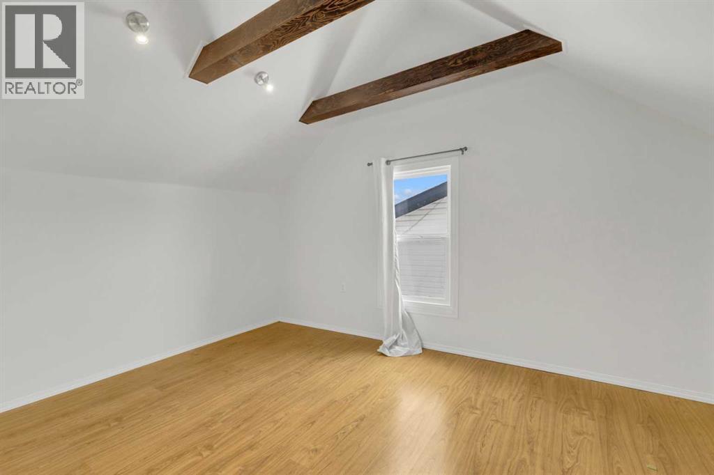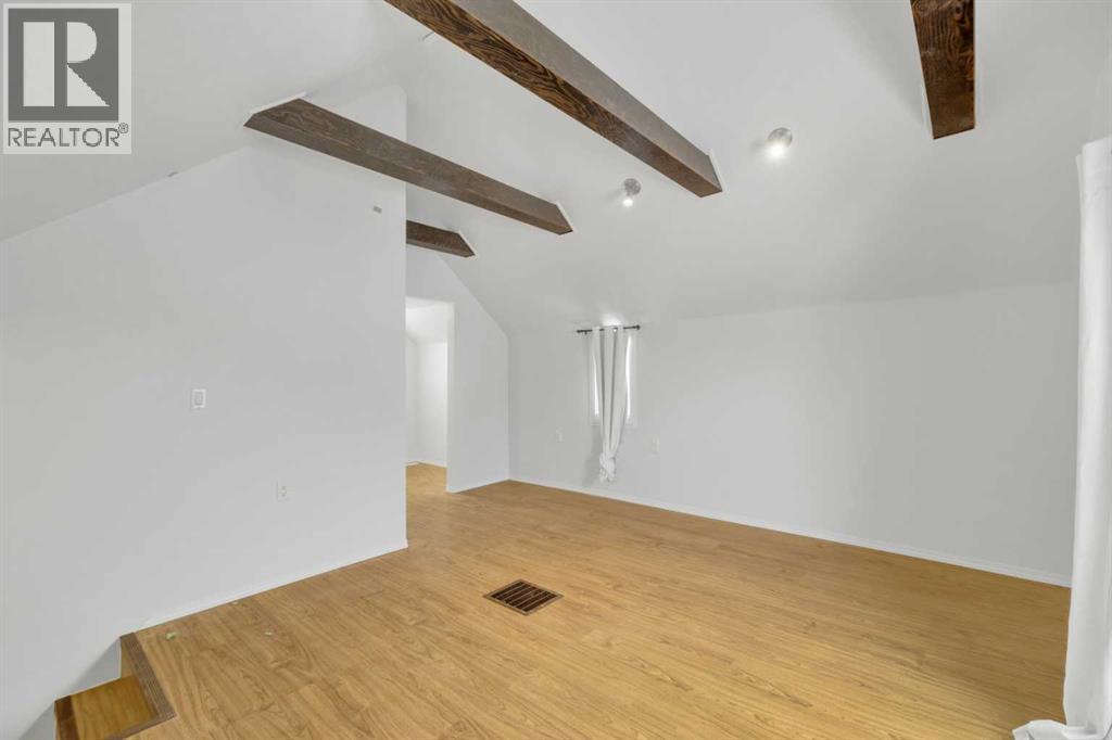 Welcome to this charming, renovated 1½-storey home in Ponoka where there is more here than meets the eye!! The main floor features a good sized mudroom, 2 bedrooms, a full bathroom, a bright and functional kitchen, and a cozy living room with the sweetest bay window. Upstairs you’ll find a spacious and unexpected primary retreat complete with beautiful open wood beams, a generous walk-in closet, and a private full ensuite. The basement is ready for your finishing touches and includes some upgraded windows, with ample space for a future family room and additional bedrooms. Outside, enjoy the massive fully fenced yard with back gate access, a garden area, and a nicely sized deck. This large yard is perfect for the kids, or pets and leave plenty of space for a future garage. The front of the home offers charming country curb appeal with lilac bushes and convenient off-street parking. Ideally located within walking distance to shopping and schools, this property is an excellent opportunity for first-time buyers, investors, or a young family. (id:63190)