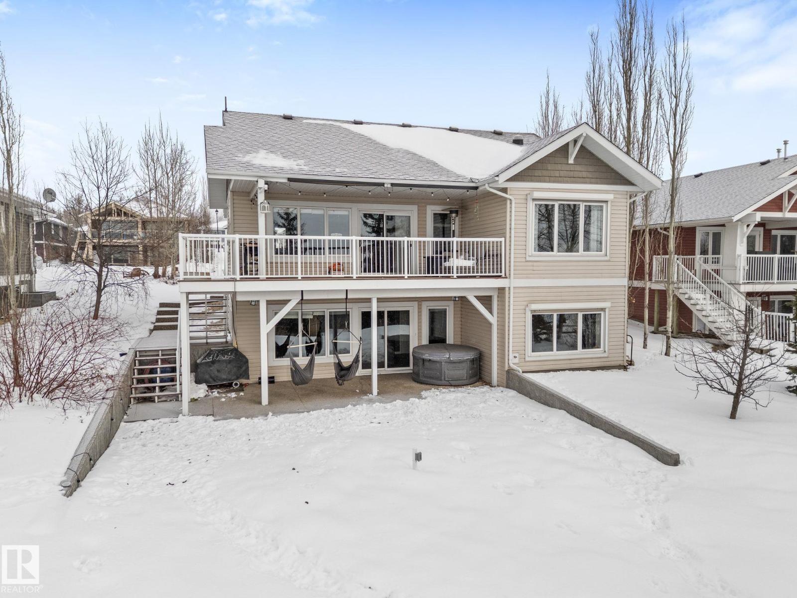 Welcome to year round lake living in the prestigious community of the Estates at Water's Edge! This gorgeous 3 bdrm + den, 2.5 bath NO CARPET home offers the convenience of a main floor primary bedroom with a bright walk out basement. The large kitchen features granite countertops, SS appliances, gas range, new fridge and an RO system at the tap. The triple pane windows look out over your SOUTH FACING covered deck with gas line for BBQ to incredible LAKE views beyond your private backyard. The large primary bedroom overlooking the lake also features a 5-pc ensuite, water closet and FIAT sauna shower plus a massive walk in closet. NEW 2026 washer & dryer, hot water on demand, AC and central vac. Oversized doubled detached garage with extra long bay has attic storage, 2024 heater and floor drain. You will access all the community amenities including salt water pool, fitness facilities, playground, fishing dock, community garden and more. GOLF CART INCLUDED! This home is ready for you to move in and enjoy! (id:63190)