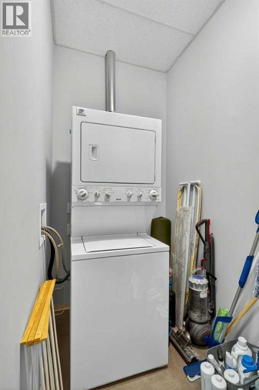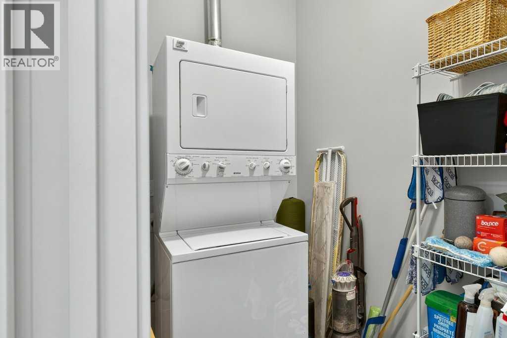 Welcome to this beautifully designed 2-bedroom + den, 2-bathroom home that blends luxury, comfort, and convenience in one of the quietest buildings in the area. From the moment you step inside, the impressive 10 & 11-ft ceilings create a bright, spacious, and elevated feel throughout the open-concept layout. The modern kitchen offers excellent functionality with a large pantry, premium finishes, and plenty of room for cooking and entertaining family and friends. The living area extends seamlessly to your private balcony, perfect for enjoying a morning coffee or simply unwinding at the end of the day. Both bathrooms are thoughtfully upgraded with in-floor heating, providing year-round comfort. The home also includes custom blackout blinds, ideal for privacy and restful nights, along with central heating and air conditioning with in-unit controls for personalized comfort in every season. A dedicated laundry room with extra storage adds convenience, while the building itself enhances your daily living with an exceptionally quiet atmosphere, a separate storage unit, and a titled parking stall. You’ll also appreciate the added security and service of a Monday–Friday concierge (9 am–5 pm). Perfectly appointed and impeccably maintained, this upscale condo offers a rare blend of luxury features and everyday practicality—truly a rare opportunity. (id:63190)