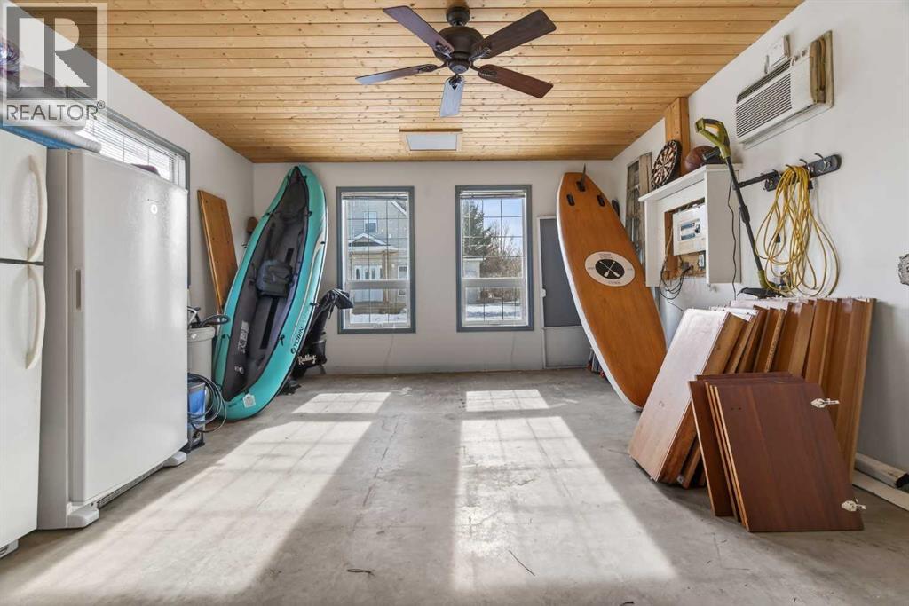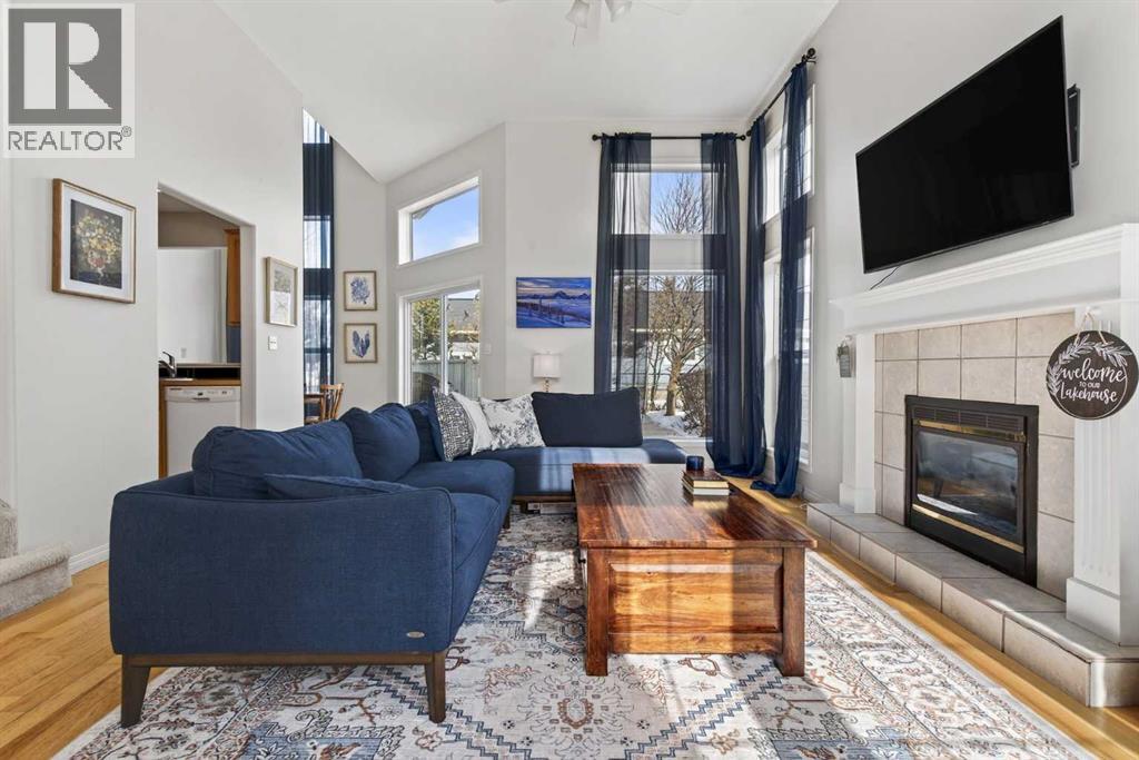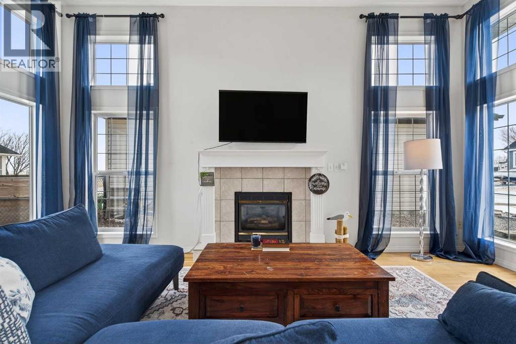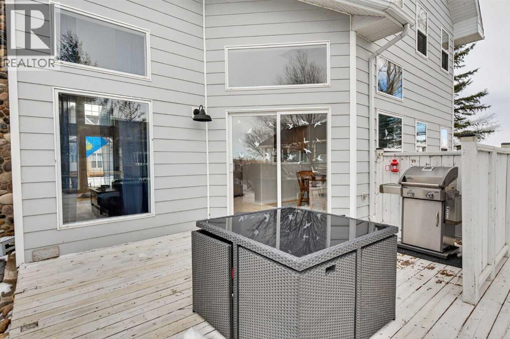 Welcome to your four-season retreat in Lake McGregor Estates — a gated, year-round recreational community just over 90 minutes from Calgary and Lethbridge, and conveniently close to the town of Vulcan. Situated on a large, private corner lot with mature landscaping, this beautiful detached two-storey home offers exceptional space, flexibility, and parking — including room for boats, guest vehicles and a golf cart. Step inside to soaring ceilings and floor-to-ceiling windows that flood the living space with natural light and gorgeous hardwood flooring throughout. The open-concept main floor features a functional U-shaped kitchen with a window overlooking the dining area, creating a connected yet defined layout perfect for entertaining. A cozy gas fireplace anchors the living room, while a main-floor bedroom and full bathroom provide convenience for guests or single-level living. The heated and air-conditioned (wall unit) converted garage adds incredible versatility — currently an ideal flex space, it could easily be further developed into a secondary living area, recreation room, additional bedroom, or converted back to garage use depending on your needs. Upstairs, you’ll find a bedroom, laundry, 3-piece bathroom, and an open den overlooking the main living space below — the perfect reading nook, office, or additional lounge area that enhances the home’s airy design. Living in Lake McGregor Estates means access to unmatched amenities, including: Indoor pool & outdoor pool, Hot tub & sauna, Full clubhouse with gym, Games room & pool table, Lounge & bar area, Conference room, Basketball court & baseball diamond, Tennis court & beach volleyball, Driving range, Gazebo & playground, Affordable boat storage, Beach access, boating & fishing. These properties are secure in a gated community and are Airbnb friendly offering flexible use with income generating potential. (id:63190)