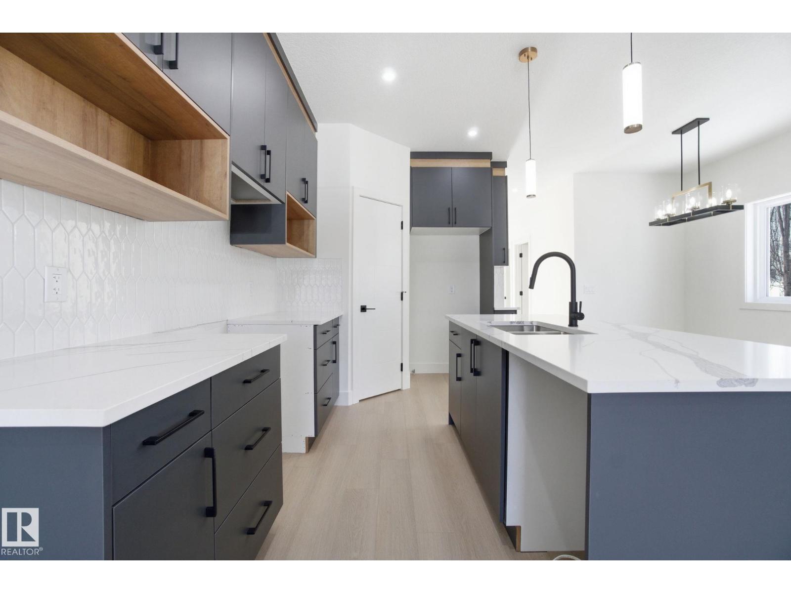 Welcome to the community of Allendale, where you will discover this recently completed BRAND NEW half-duplex offering exceptional value. Designed with versatility in mind, this residence features six spacious bedrooms and four full bathrooms, including a highly desirable bedroom and full bath on the main level—ideal for guests, multi-generational living, or flexible use. The bright, open-concept layout highlights quality craftsmanship and modern finishes, including contemporary lighting, stylish cabinetry, and quartz countertops throughout. The lower level includes a fully self-contained, LEGAL two-bedroom basement suite with a private entrance, providing an excellent mortgage helper or investment opportunity. Completing the home is a double detached garage and a prime location close to public transit, schools, shopping, and nearby post-secondary institutions, making this move-in-ready property an outstanding option for families, investors, or students seeking long-term value. (id:63190)