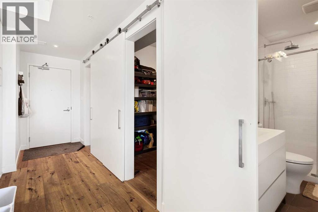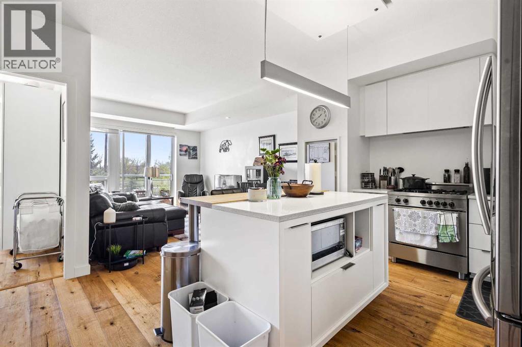 Welcome to the sought-after Sobow building, where modern urban lifestyle meets unbeatable downtown convenience. This beautifully maintained 1-bedroom plus spacious den unit offers exceptional comfort, functionality, and style.Step inside to find an upgraded kitchen featuring high-end finishes and appliances, complemented by stunning hardwood flooring that flows throughout the living space. Enjoy the privacy of a well-designed layout with serene views from both the living room and bedroom.Located just minutes from downtown Calgary, this home provides easy access to public transit, premier shopping, dining, and river pathways. With underground parking included, this is urban living at its finest. Building amenities include day-time concierge, well-equipped gym, owners’ lounge with a billiards table, and a theater room.Don't miss your opportunity to live in one of Calgary's most desirable inner-city communities — book your private showing today! (id:63190)