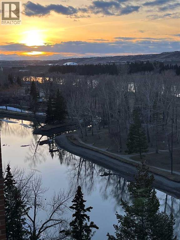 OPEN HOUSE: 3-5PM Sunday March 29, 2026. Perched on the 8th floor, this exceptional condo offers **one of the largest floor plans in the building** and showcases truly breathtaking views overlooking Bowness Park and the picturesque Bow River. From vibrant seasonal landscapes to stunning natural light displays and dramatic sunsets, the expansive private balcony provides a front-row seat to it all.Step inside to a generous foyer that welcomes you into a thoughtfully designed open-concept layout. The spacious hallway leads to a bright and airy kitchen featuring expansive countertops, ample cabinetry, and upgraded stainless steel appliances — perfect for everyday living and entertaining alike. The dining area flows seamlessly into the inviting living room, which opens directly onto the oversized private balcony, blending indoor and outdoor living naturally.Tucked just around the corner for added privacy, the large primary bedroom and well-sized second bedroom both offer impressive city views. A 4-piece bathroom with a newer receptacle adds modern functionality, while a substantial in-suite storage room completes this well-appointed home.This well-managed **18+ adult living** complex offers an array of desirable amenities, including a fitness centre, sauna, social room, and rooftop terraces. Enjoy the convenience of inclusive utilities, free common laundry pet-friendly living (with board approval and fee), and immediate access to the scenic pathways, green spaces, and recreational opportunities of Bowness Park and the Bow River.An incredible opportunity to enjoy spacious, low-maintenance living with unmatched views in a highly sought-after location. (id:63190)