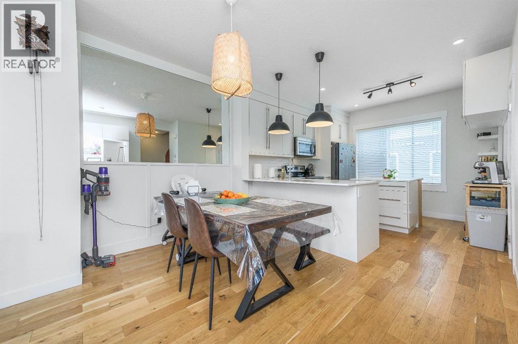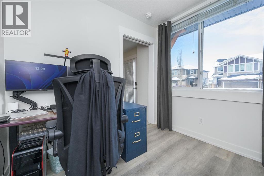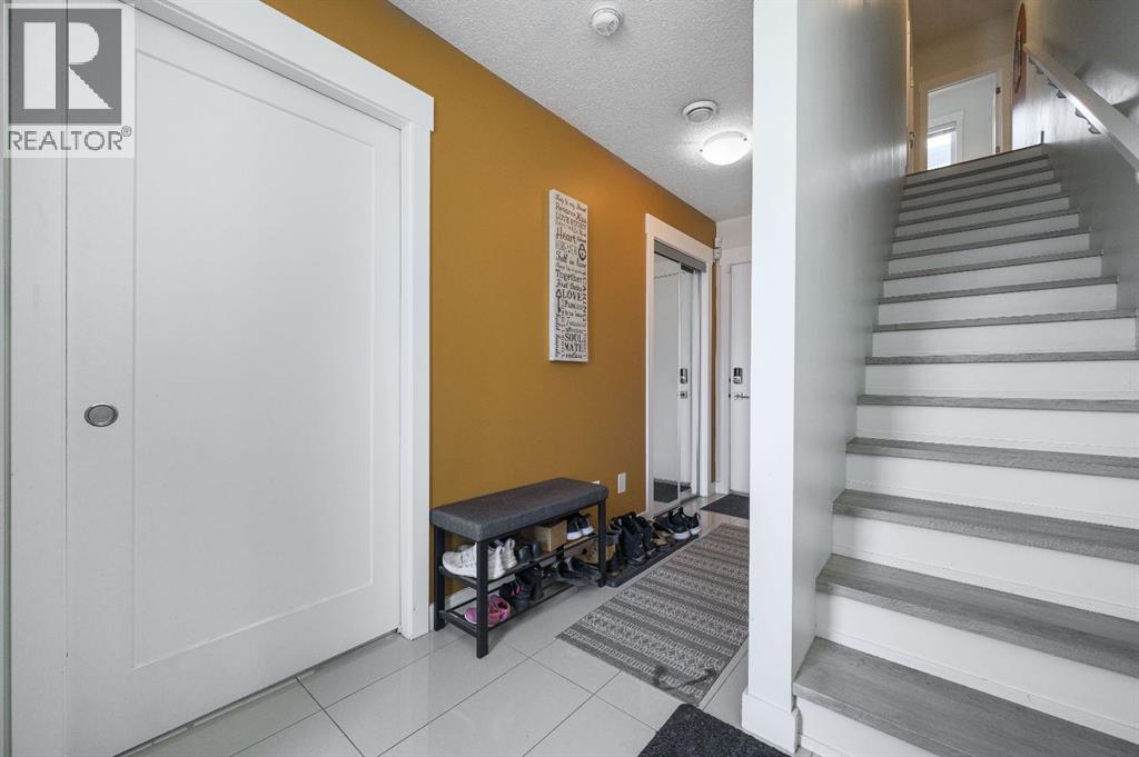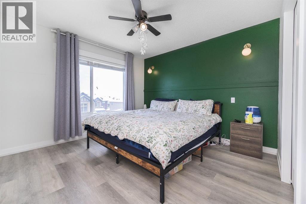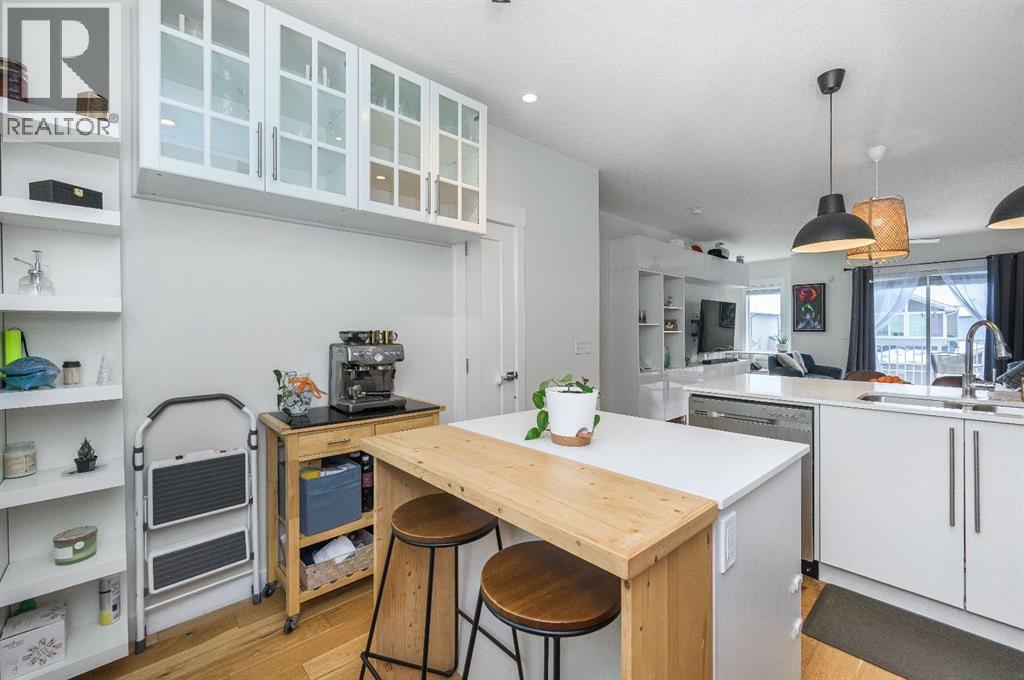 Welcome to a beautifully upgraded FORMER TRUMAN SHOW HOME with a DOUBLE ATTACHED GARAGE and a smart, functional 3-storey design in one of Chestermere’s most convenient locations. Situated on the exterior of the complex for added privacy and extra street parking, this MOVE-IN READY home is thoughtfully upgraded throughout. The main floor offers a versatile DEN/OFFICE with added built-in shelving, under-stair storage, an upgraded half bath vanity, and a modern LED fan/light combo — perfect for working from home.The bright open-concept living space showcases 9’ CEILINGS, hardwood floors, and a STUNNING WHITE KITCHEN with QUARTZ COUNTERS, stainless steel appliances, NEW FRIDGE (2025), new dishwasher, tile backsplash, island with breakfast bar, and added cabinetry for extra storage. The living room features FLOOR-TO-CEILING BUILT-IN STORAGE designed for media, surround sound, and gaming, both functional and stylish.Upstairs you’ll find TWO PRIMARY BEDROOMS, EACH WITH THEIR OWN ENSUITE AND WALK-IN CLOSETS — an ideal layout for families, guests, or roommates. The primary closet was professionally designed by California Closets, and luxury vinyl plank flooring completes the upper level. Bathrooms were freshly painted in 2026, and ceiling fans were professionally installed in 2024.Enjoy your upper deck or lower patio, and live just steps from the canal, walking paths, shops, restaurants, and schools.With premium upgrades, incredible storage, and a standout layout, this home truly checks all the boxes. BOOK YOUR SHOWING TODAY! (id:63190)