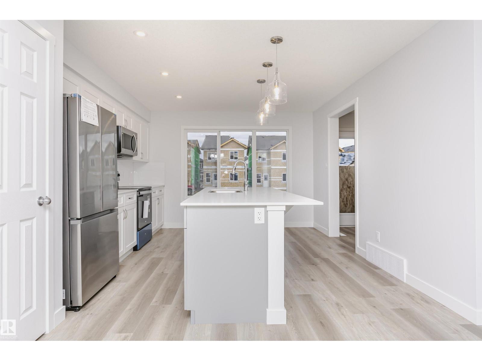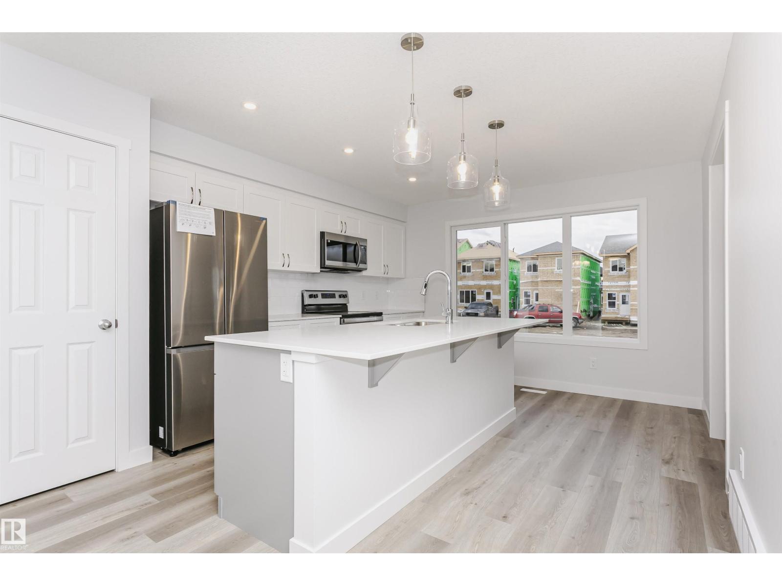 Welcome to this stunning 1,680 sq ft, 3-bedroom, 2.5-bathroom newly built home with SIDE entrance nestled in the heart of Chappell. As you step inside, you're greeted by elegant luxury vinyl plank flooring that flows seamlessly throughout the great room, kitchen, and breakfast nook. The spacious kitchen is a chef's delight, featuring a stylish tile backsplash, a central island with a flush eating bar, quartz countertops, SS appliances, and an under-mount sink. Adjacent to the nook, conveniently tucked away near the rear entry, you'll find a 2-piece powder room. Upstairs, the serene master bedroom boasts a generous walk-in closet and a 4-piece en-suite. Two additional bedrooms, a bonus room, and a well-placed main 4-piece bathroom complete the upper level. Double garage concrete pad is set in the back. This home is perfectly situated close to all amenities, with easy access to Anthony Henday Drive and Whitemud Drive. (id:63190)