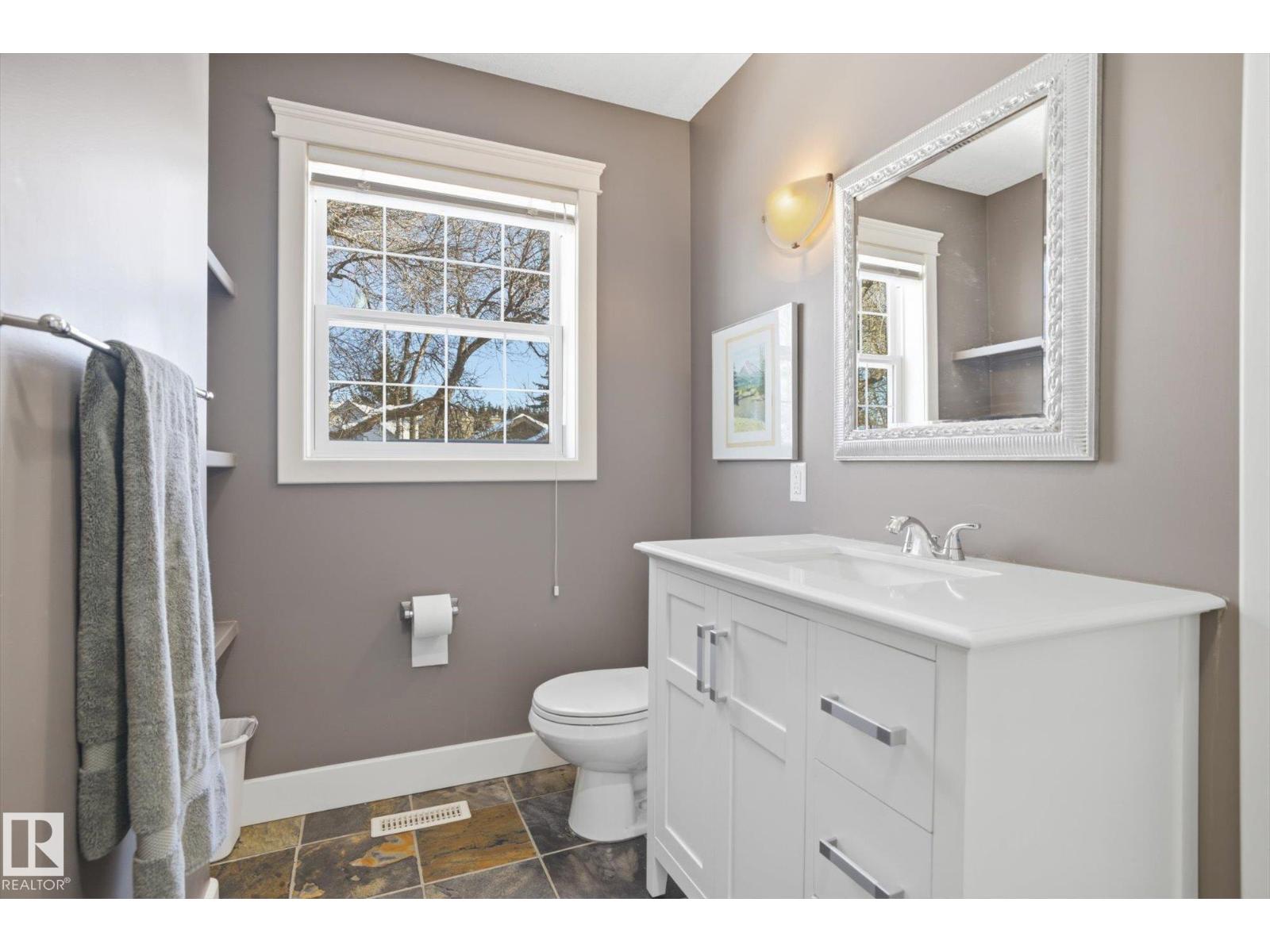 TRIPLE DETACHED GARAGE~ AMAZING 4 BEDROOM, 3.5 BATH TWO STOREY in ROSSDALE ~ LOCATED in the RIVER VALLEY ~ FULLY FINISHED BASEMENT ~ CENTRAL AIR ~ Check out this very well maintained home with a rare triple garage that is insulated & heated. The main floor of this home has 9 foot ceilings and a vaulted opening from the top floor. There is a large living room, and kitchen with tons of cupboards, stainless steel appliances, and granite countertops. There is a main floor den and flex room (can be used as a formal dining room) plus main floor laundry. Upstairs there are 2 bedrooms joined by a Jack and Jill full bath, plus the primary bedroom with a huge walk-in closet, balcony, and a raised area that is perfect for a desk or lounger. The basement is fully finished with a gorgeous rec room that is excellent for entertaining or great for exercise equipment or a movie room plus a full bath and tons of storage. The location is steps to walking paths, downtown Edmonton & RE/MAX Field. HEATED GARAGE !! (id:63190)