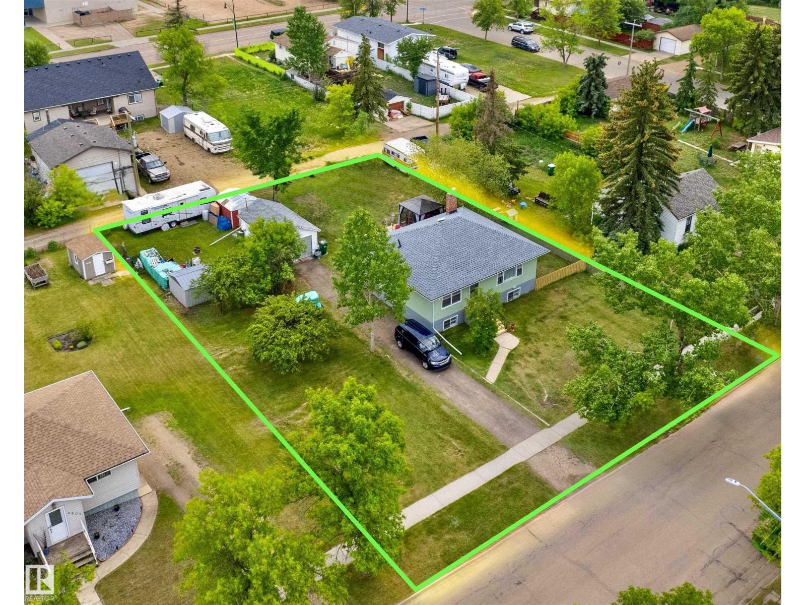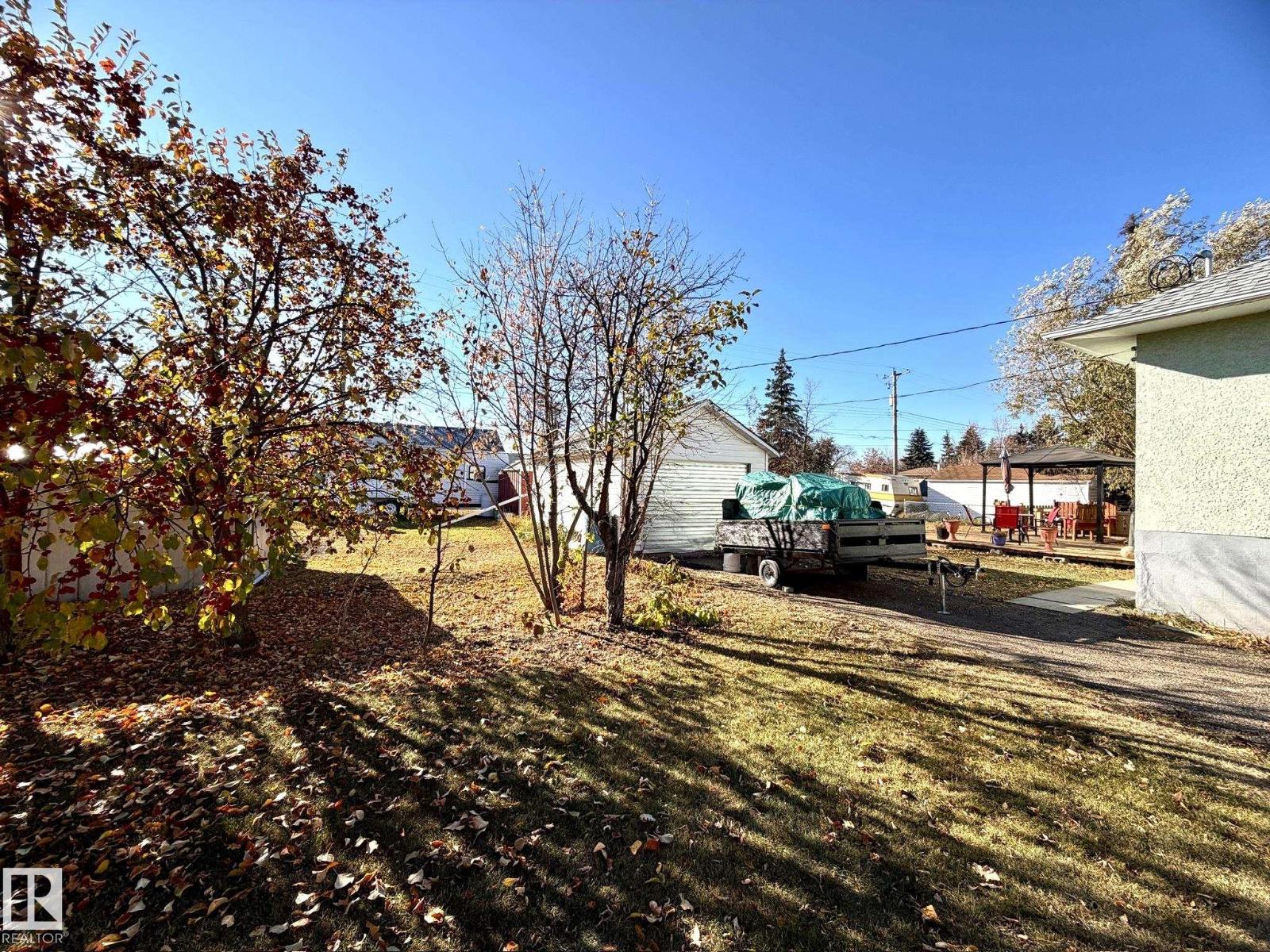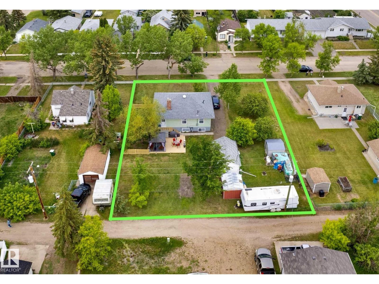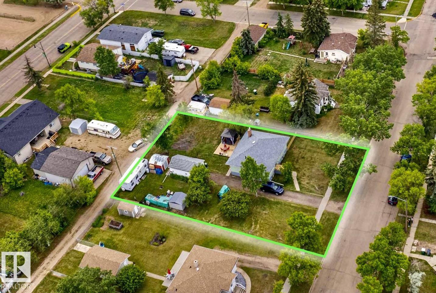 Welcome to this bright & character-filled raised bungalow in Lamont! Set on a MASSIVE TRIPLE LOT, this property offers incredible space & endless possibilities — create your dream garden, expand the ultimate dog run, or unwind on the spacious back patio. A large driveway & convenient back lane access make parking & RV storage easy. Inside, you’ll find beautiful hardwood floors, an inviting eat-in kitchen, a generous dining area & a sun-filled living room that feels warm & welcoming. The main floor features 3 bedrooms, a 4pc bath, a large linen closet & plenty of storage. Enjoy peace of mind with updates including newer appliances, roof, hot water tank, deck & an upgraded electrical panel with potential for 200-amp service. The fully finished basement adds fantastic flexibility with a large rec room, 2 additional bedrooms & a 3-piece bath. Located just 15 minutes from Elk Island National Park & close to schools, parks, hospital & amenities, this home offers small-town charm with an easy city commute. (id:63190)