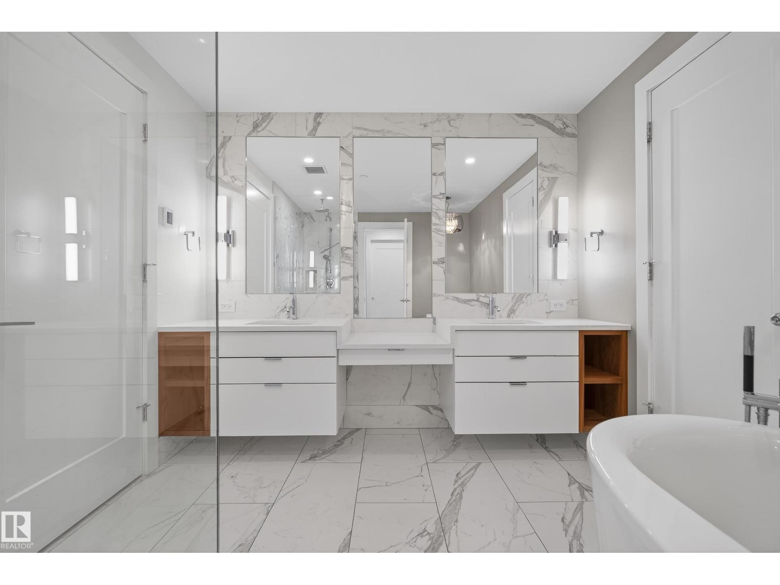 Minutes from everything Edmonton has to offer and still peacefully removed from it all, this is West Block Glenora. Only 60 owners call the prestigious 100 West Block Tower home making this “the” building of the 3.5 acre mixed use development. Through the lobby overseen by a professional conceirge and up to the 5th floor, unit 504 offers a unique floorplan with 2 bdrms, 2.5 baths and the most in suite storage of all the standard floorplans. Both bedrooms offer an ensuite w/ WIC, perfect for those who don’t compromise on space. Quiet everyday luxuries include heated floors, automated blinds, dual heating systems, dropped ceilings for maximum in suite privacy, and Carrara marble. The amenities continue to elevate the experience with an overnight guest suite, expansive fitness centre, indoor/outdoor lounge and a rooftop dog run for four legged family members. Take advantage of the buzzing urban plaza below with some of Edmontons best restaurants, coffee shops and retail/commercial all just steps away! (id:63190)
