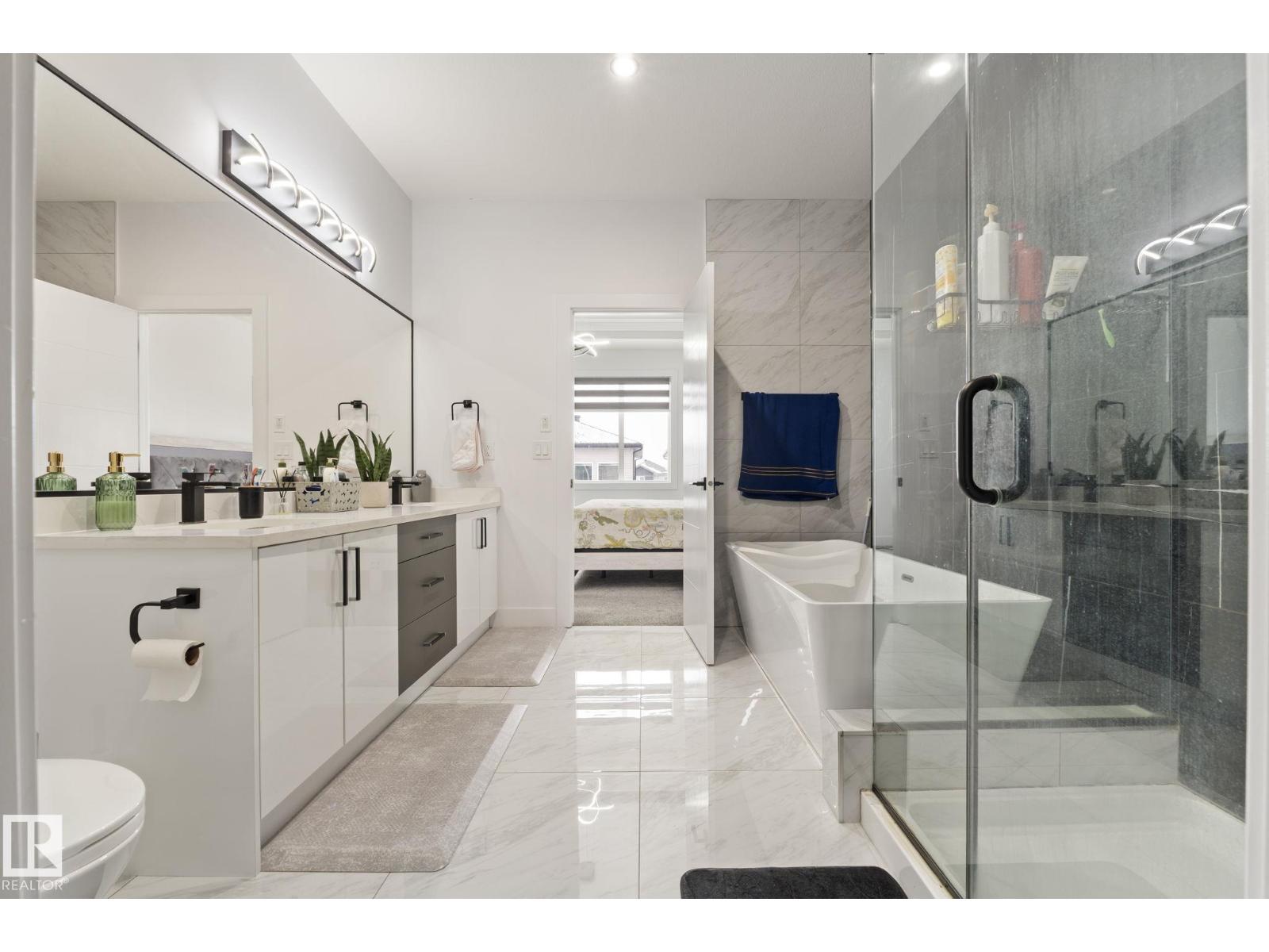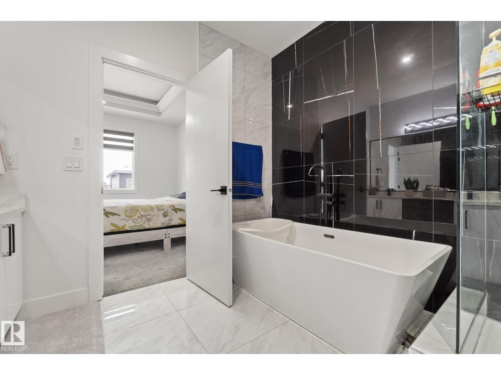 Why buy new when you can skip the wait and own this immaculate Keswick 2-storey, move-in ready and featuring a BRAND NEW 2-BEDROOM LEGAL BASEMENT SUITE with PRIVATE ENTRANCE, SEPARATE LAUNDRY and CENTRAL A/C? Offering 5 BEDROOMS and 4 FULL BATHS, it’s ideal for extended family or rental income. The bright OPEN-TO-ABOVE living room with soaring 18-FT CEILINGS and large windows creates a bold first impression. The main floor includes a DEN and FULL BATH, plus a modern kitchen with QUARTZ COUNTERS, HIGH-GLOSS CABINETRY, and a WALK-THROUGH PANTRY leading to the DOUBLE ATTACHED GARAGE. Upstairs you’ll find 3 spacious bedrooms, including a primary retreat with a SPA-INSPIRED ENSUITE, a BONUS ROOM, and upper laundry. The fully landscaped, EAST-FACING FENCED YARD and finished window coverings are already complete. Walking distance to schools and minutes to Keswick amenities, this home offers style, flexibility, and standout value in southwest Edmonton. (id:63190)