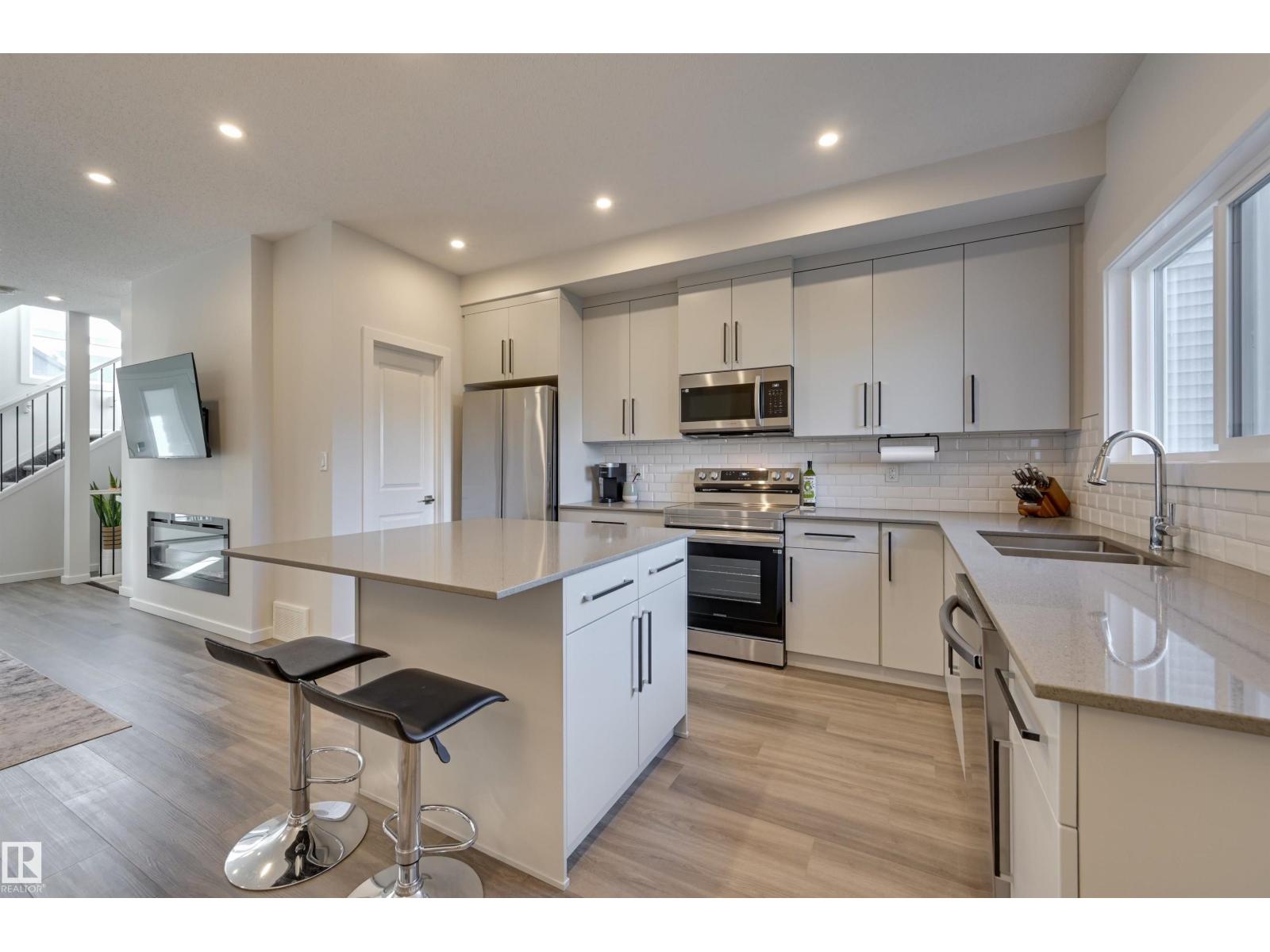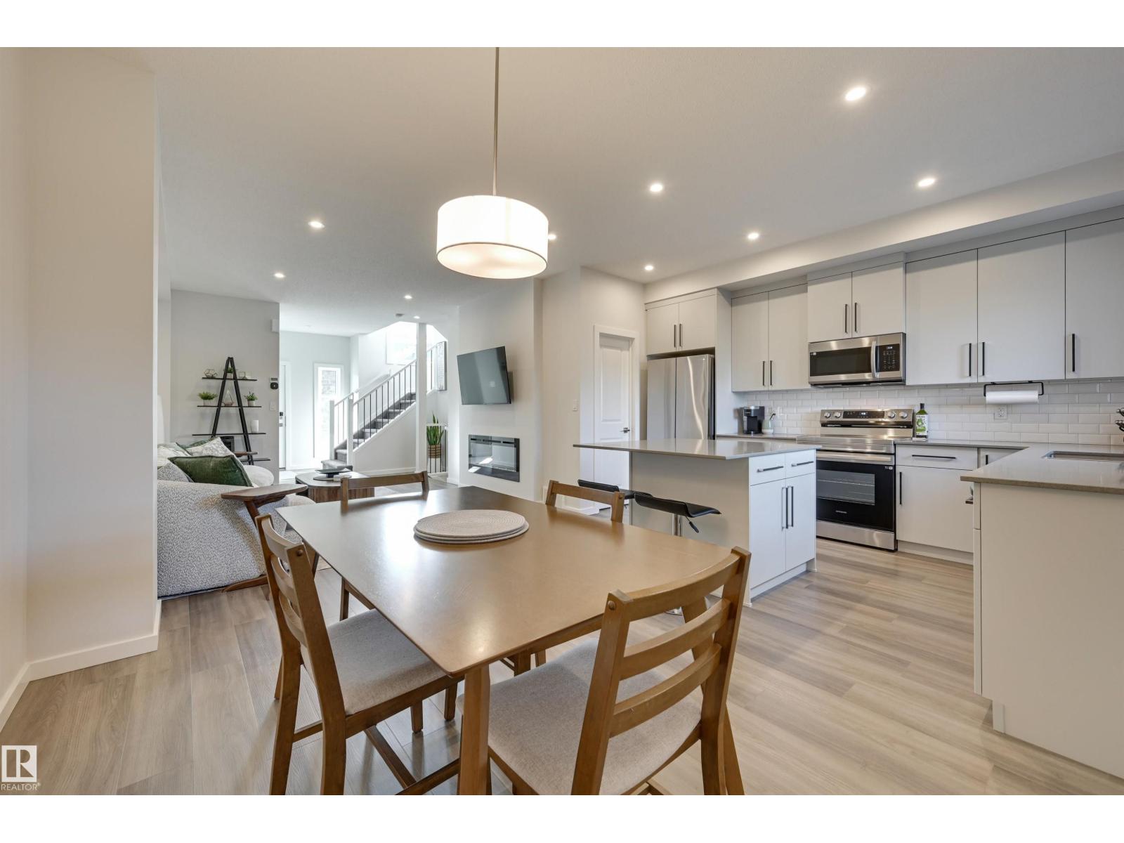 Built by Bedrock Homes in the new Sherwood Park community of Cambrian, this charming detached two-story home offers 3 bedrooms, 2.5 bathrooms, and a double detached garage. Designed for modern living, it features a bright 9' main floor with an open-concept layout. The modern kitchen includes a window above the sink, walk-in pantry, quartz countertops, and a full stainless steel appliance package with a French door fridge, range, microwave, and dishwasher. A spacious mudroom provides excellent storage. Upstairs, you’ll find three bedrooms and a central bonus room, with the primary suite offering dual sinks and a tiled shower. Full main bathroom and upstairs laundry complete the level. Energy-efficient features and luxury vinyl plank flooring add to the home’s appeal. Conveniently located with quick access to Highway 16, Anthony Henday, and Emerald Hills Shopping Centre! (id:63190)