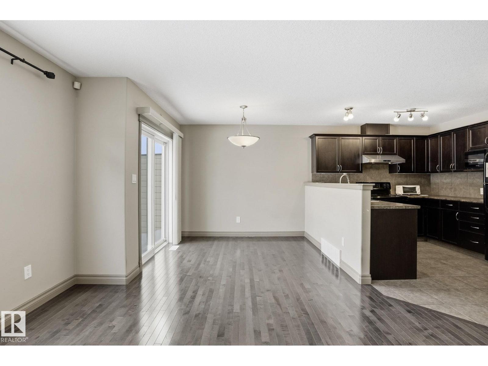 Affordable 3 Bed Townhouse – Hollick-Kenyon. This property offers a functional layout with open main-floor living space and convenient access to nearby amenities. The main level features a spacious living and dining area with large windows allowing natural light, along with a kitchen offering ample cabinetry and counter space. Patio doors provide access to a private deck and small backyard area, suitable for outdoor seating or seasonal use. The upper level includes three bedrooms and two full bathrooms, including a primary bedroom with ensuite. The unfinished basement provides potential for future development to suit additional living space needs. Located close to shopping centres, schools, parks, public transit, and major commuter routes, this property offers practical access to everyday amenities within the established neighbourhood of Hollick-Kenyon. An opportunity to own a townhome in Northeast Edmonton. (id:63190)