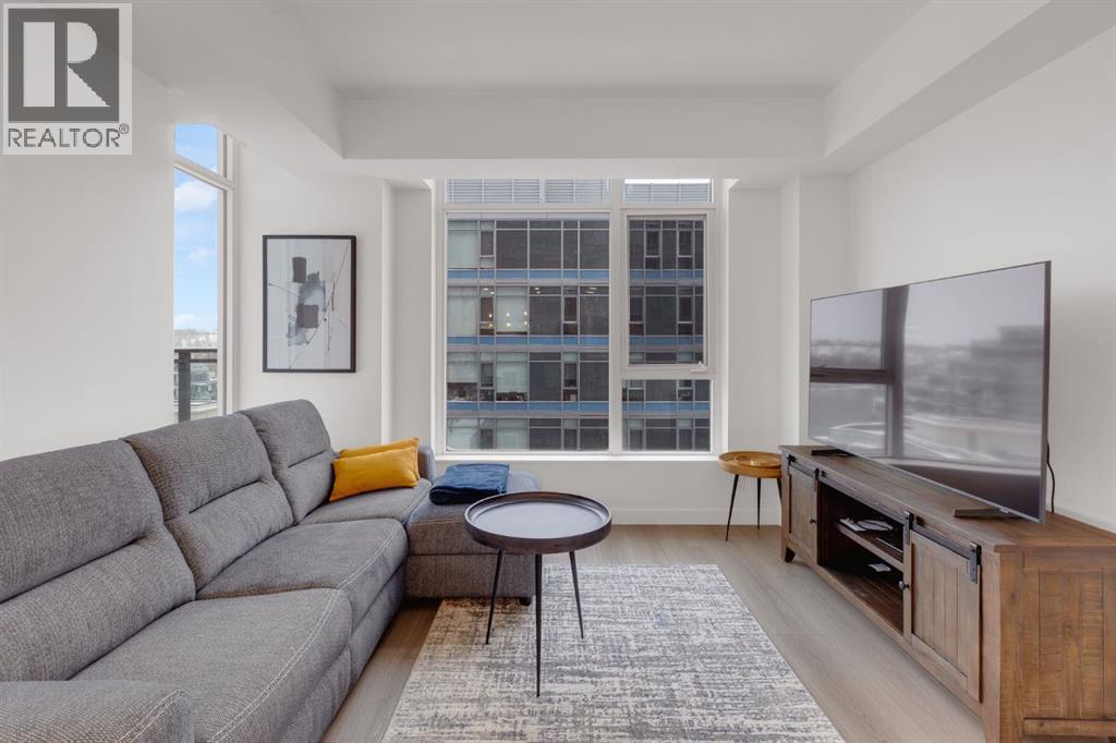URBAN BACKYARD Unit 803 offers a lifestyle rarely found in high-rise living: an expansive 458 sq. ft. private terrace that effectively increases living space by over 50%. This “backyard” in the heart of Eau Claire is equipped with both water and gas hookups— convenient for entertaining and urban gardening.THE RESIDENCE This northwest corner suite is presented in pristine condition with partial views of the Bow River Valley. The thoughtful floor plan features bedrooms at opposite ends of the unit for maximum privacy—ideal for guests or a quiet home office. The kitchen features a premium appliance package, including Miele, Fulgor, and Blomberg, accented by quartz counters. Strategic upgrades include integrated LED lighting and a smart lock.THIS BUILDING’S ADVANTAGE Located in Parkside 2B, this unit offers an exceptional level of convenience. Only steps from the Bow River pathways, it balances tranquillity with downtown living. Parkside 2B is the only building in the development where the premier amenities—concierge, gym, yoga/spin studio, hot tub, steam room, and party room—are accessible just an elevator ride away. A guest suite is available for visitors, while a heated underground parking stall, oversized storage locker, car wash bay, and bicycle storage room complete this executive-level offering. (id:63190)