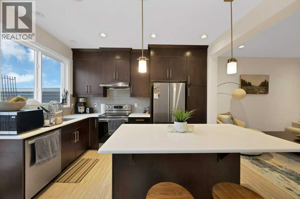 Welcome to this beautifully maintained semi-detached home with an attached single front garage, ideally located in the desirable community of Kings Heights. This thoughtfully designed property offers 3 spacious bedrooms upstairs, including a generous primary suite with a 3-piece ensuite, along with a versatile bonus room perfect for a home office or family lounge. The fully developed basement adds additional living space with a fourth bedroom, ideal for guests or extended family. The main floor features a bright open-concept layout with durable LVP flooring, a modern L-shaped kitchen complete with quartz countertops and stainless steel appliances, and seamless flow into the dining and living areas—perfect for entertaining. Upstairs is finished with cozy carpeting, while outside you’ll enjoy a full-length deck, fully fenced and landscaped yard ready for summer gatherings. Conveniently located close to parks, ponds, schools, and shopping, this home offers the perfect blend of comfort, style, and everyday convenience. (id:63190)
