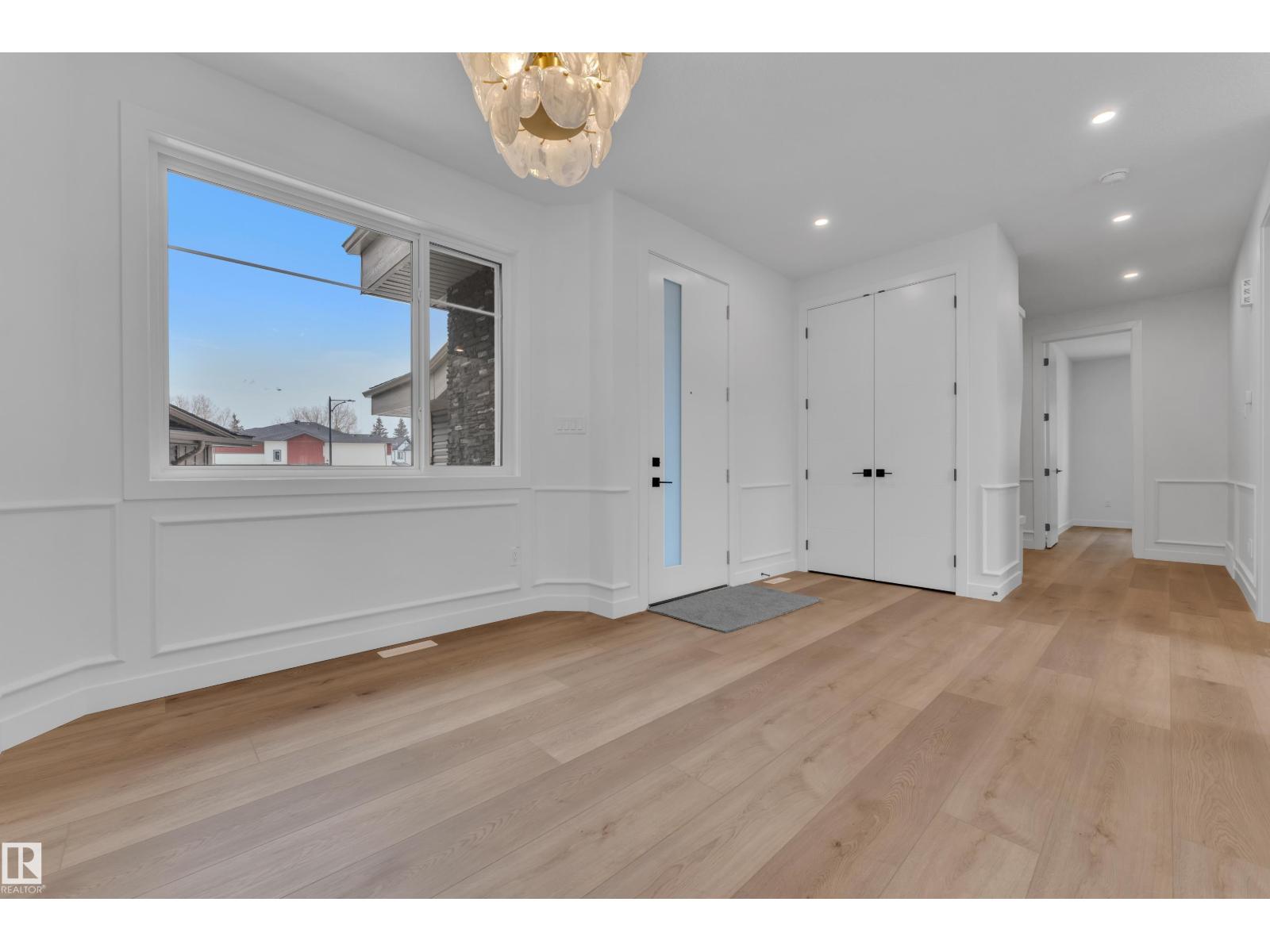 Welcome to this stunning 2,450 sq. ft. triple car garage home with an impressive open-to-above design and double living areas. The main floor features a full bedroom and bath, ideal for guests or extended family, plus a side entrance to the basement for future potential. Upstairs offers a spacious bonus room and a primary suite with vaulted ceilings, along with laundry with sink. Enjoy a beautifully finished kitchen with dual-tone cabinets, quartz countertops, waterfall island, built-in bar with wine cooler space, and a stone-finished electric fireplace, complemented by elegant feature walls throughout. (id:63190)