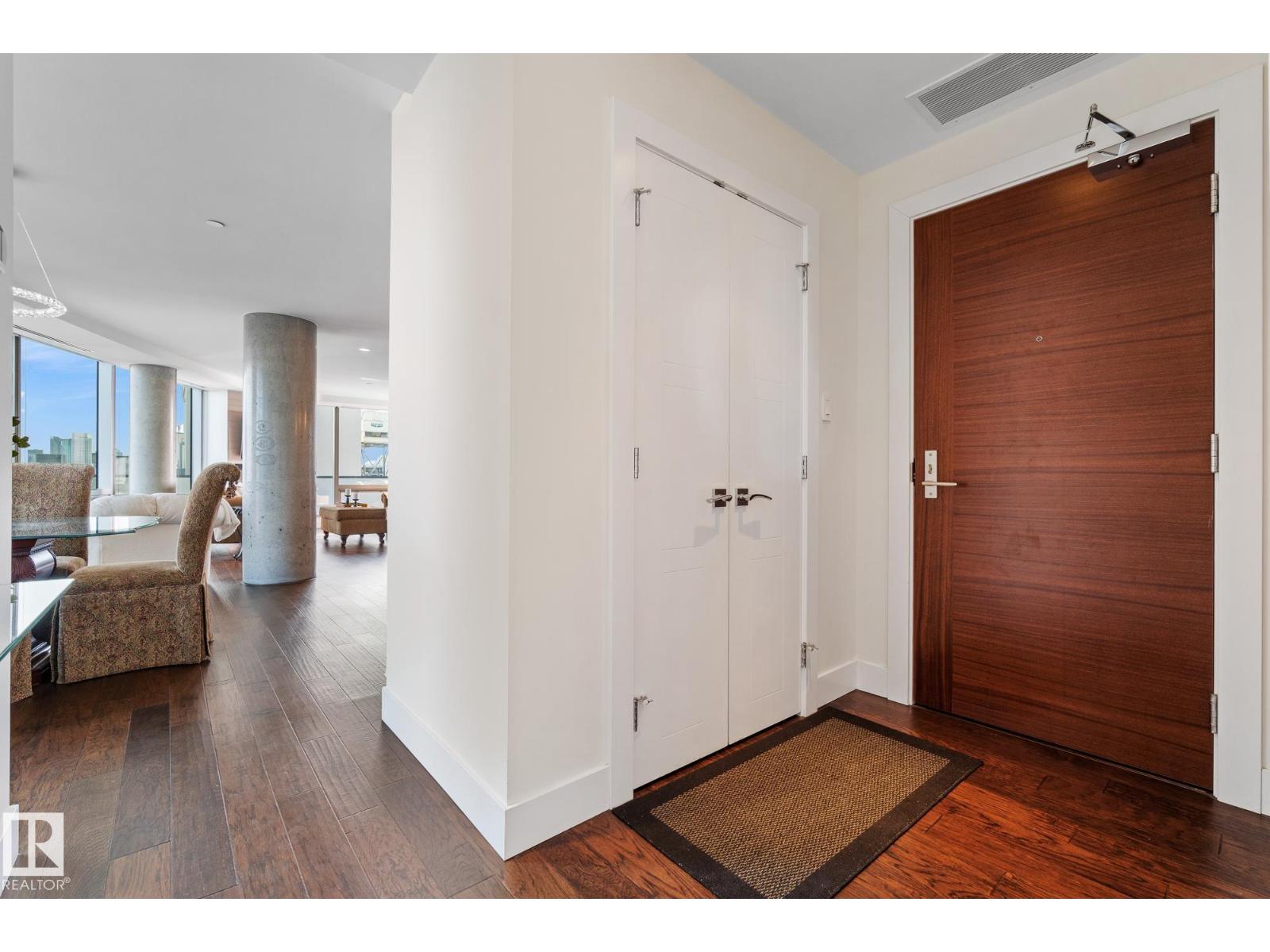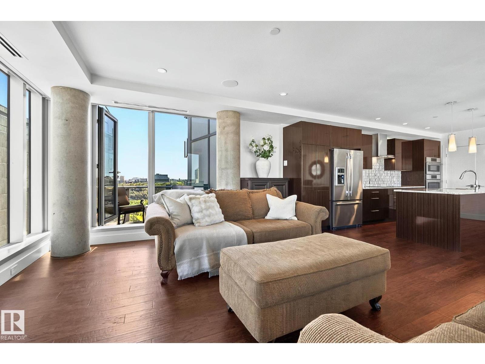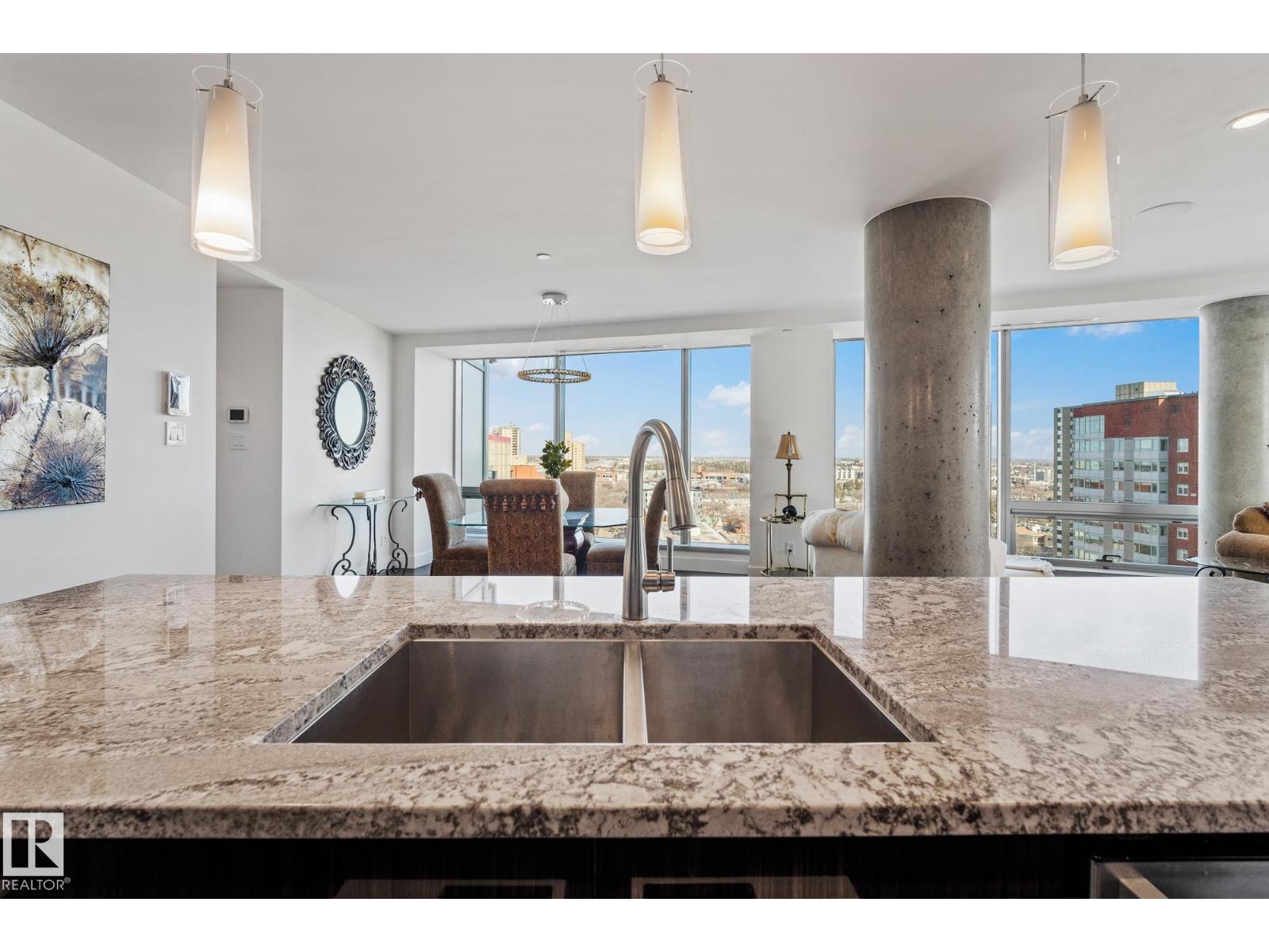The Pearl with breathtaking views in the heart of Edmonton’s River Valley & Downtown. This Luxury open-concept 12th-floor condo has 2 bedrooms & 2 bathrooms, with U/G parking & storage cage (LEGAL & LABELED UNIT #278 on p5). The bright, spacious living room has beautiful views and steps out to your SE BALCONY WITH BREATHTAKING RIVER VALLEY VIEWS. Upgrades include engineered hardwood, granite counters, A/C, blinds, extra kitchen cabinetry, a Master ensuite with a steam shower, B/I closet organizers, and a balcony with city views. 2nd bedroom also has built-in closet organizers. First-class 24-hour CONCIERGE and amenities include the U/G visitor parking, car wash, fitness facility, and social room with an outdoor patio. Outside your door: Safeway, River Valley walking paths, Victoria Golf Coursea and restaurants. Walk to Rogers Place, MacEwan University and U of A. (id:63190)