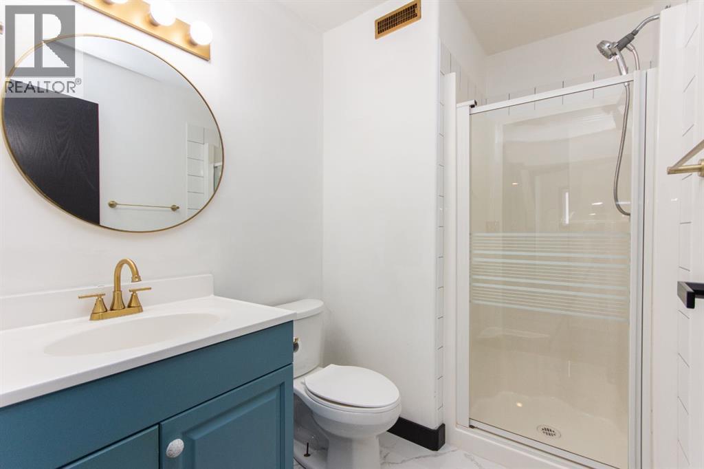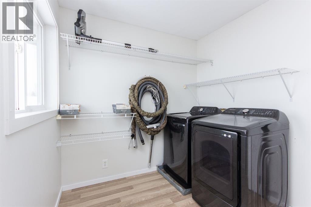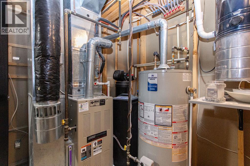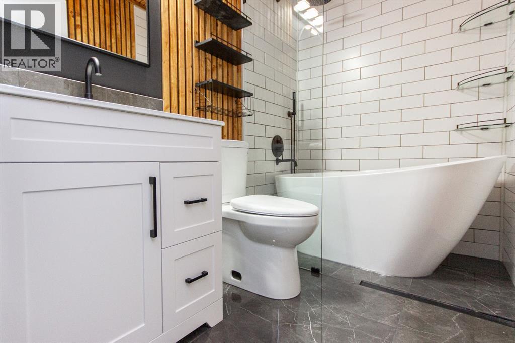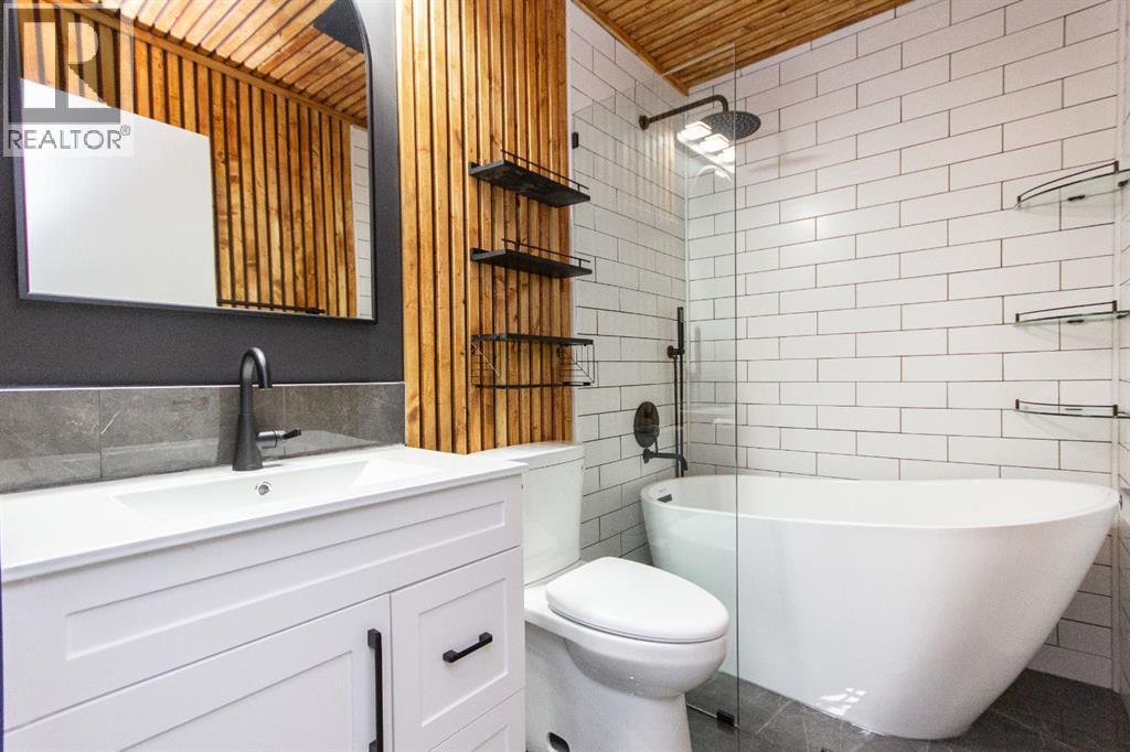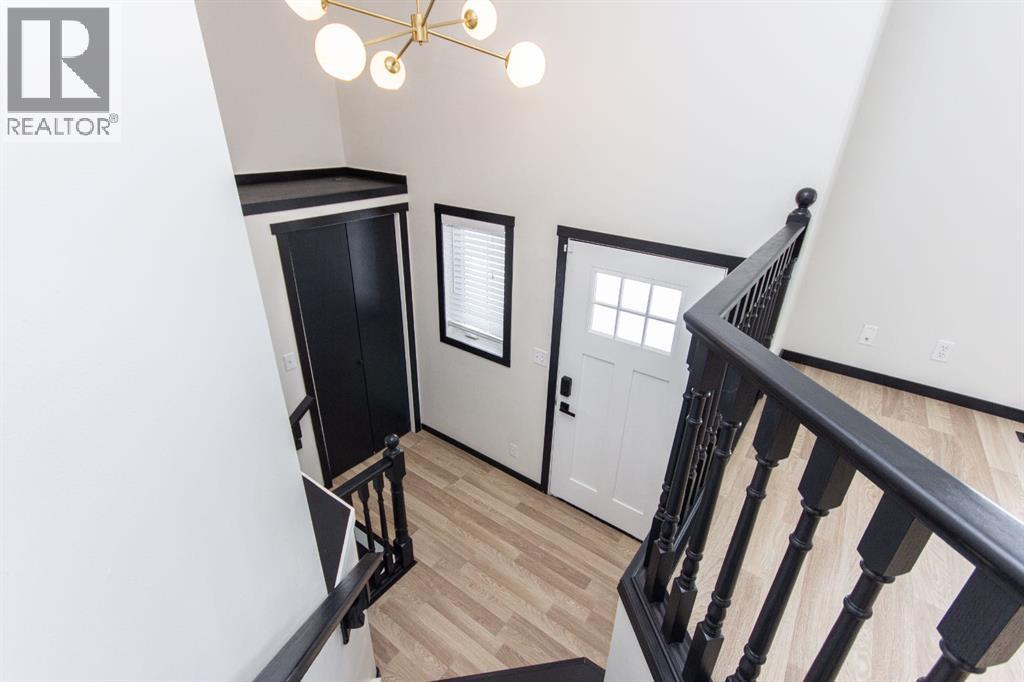 Welcome to this beautifully updated five bedroom, two bathroom bilevel nestled on a quiet close in the charming town of Penhold. From the moment you step inside, you’ll notice the care that has gone into this home, featuring new vinyl flooring on the main level, fresh paint throughout, and updated light fixtures.As you head upstairs, the space opens into a bright and inviting living room. Just off the living room, the kitchen is sure to impress with stunning green cabinetry, newer stainless steel appliances, and a breakfast bar perfect for casual dining. A dedicated dining area completes this wonderful space for entertaining.Down the hall you’ll find two bedrooms, including a versatile room ideal for a guest bedroom or home office, and a generous master bedroom overlooking the yard, bathed in natural light. The crown jewel of this floor is the stunning renovated bathroom, complete with a spa-like soaker tub, beautiful tile floors, and a new vanity.The main floor also features a large laundry room and mudroom leading out to the backyard, where a covered deck with a built-in bench awaits. Tucked beneath the deck is a fenced storage area, perfect for bikes and outdoor toys.The large heated double garage offers ample parking and two ceiling-mounted storage areas to keep everything organized.Downstairs, the basement provides a spacious TV room, three additional bedrooms, and a three-piece bathroom, offering plenty of room for the whole family.Additional updates include a newer hot water tank, A/C and shingles replaced around 2020, giving you peace of mind for years to come. This home is truly move-in ready. (id:63190)