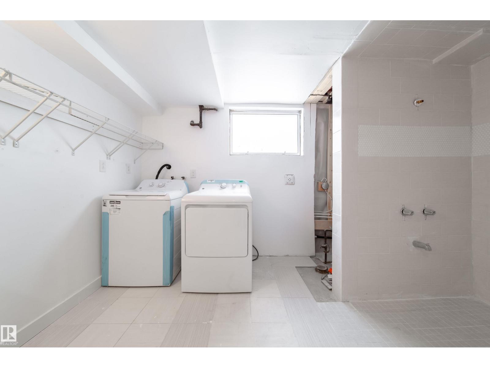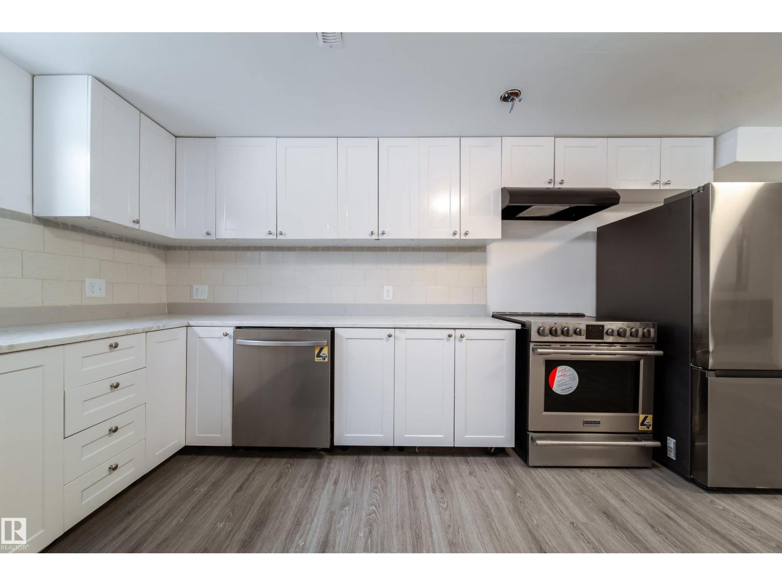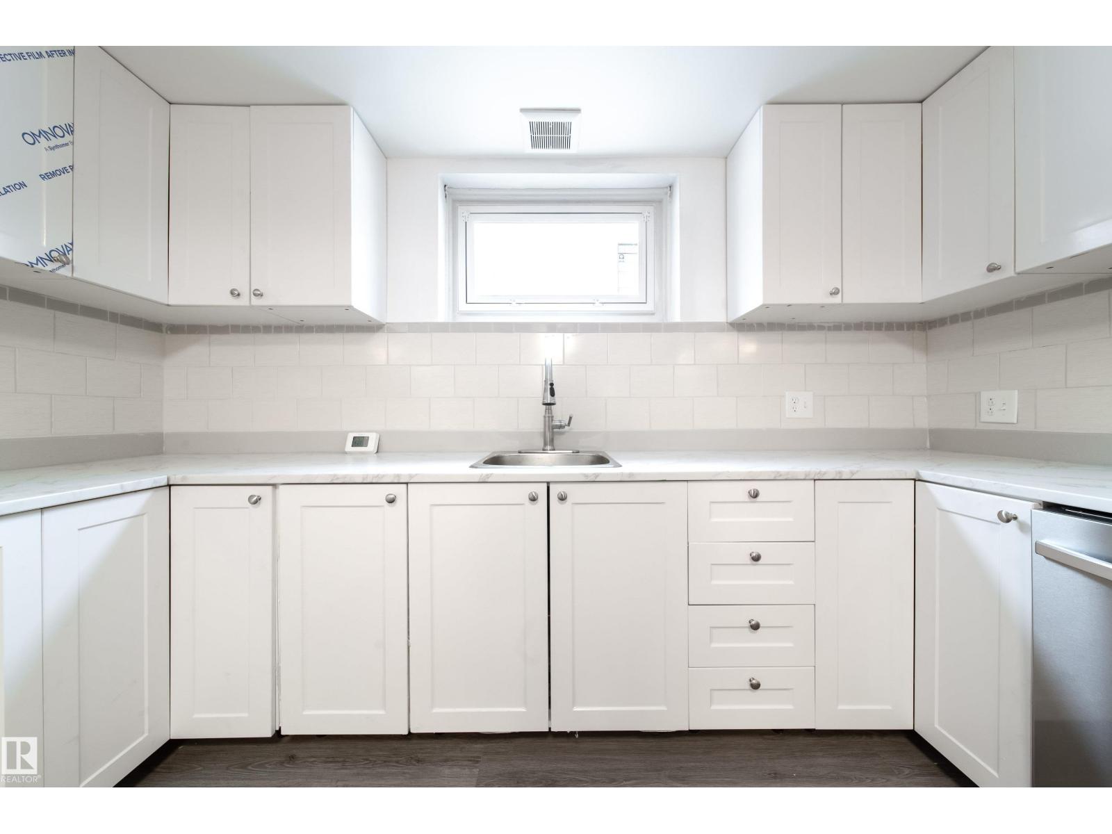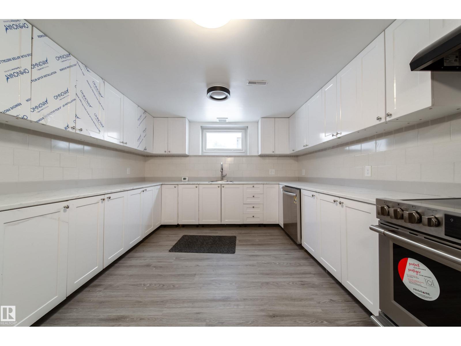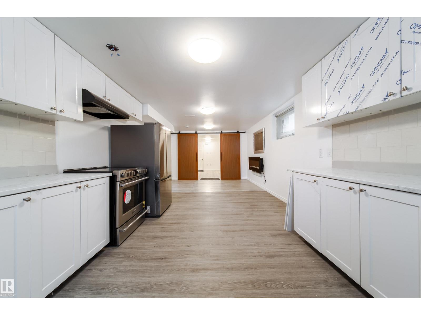 Updated bungalow on a large 459 sq m lot in Parkdale with back lane access and a separate side entrance to the fully finished basement. The main floor features an open-concept layout with a kitchen island, white cabinetry, stainless steel appliances, tile backsplash, and vented hood fan. Vinyl plank in the kitchen and entry, laminate throughout the living and bedroom areas. Three bedrooms on the main plus a 4-piece bathroom with stacked laundry. The basement offers a second full kitchen with stainless appliances, two oversized bedrooms, a 4-piece bathroom with walk-in tile shower, barn doors, and electric fireplace. Two sets of laundry, two fridges, two stoves, two dishwashers. Detached single garage with insulated walls, new garage door and opener, plus a large gravel pad for extra parking and RV storage off the back lane. Newer high-efficiency furnace. Close to schools, shopping, transit, and the Yellowhead. (id:63190)
