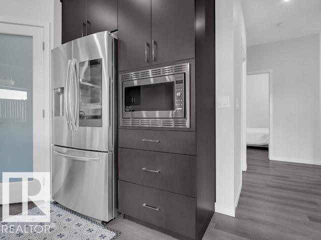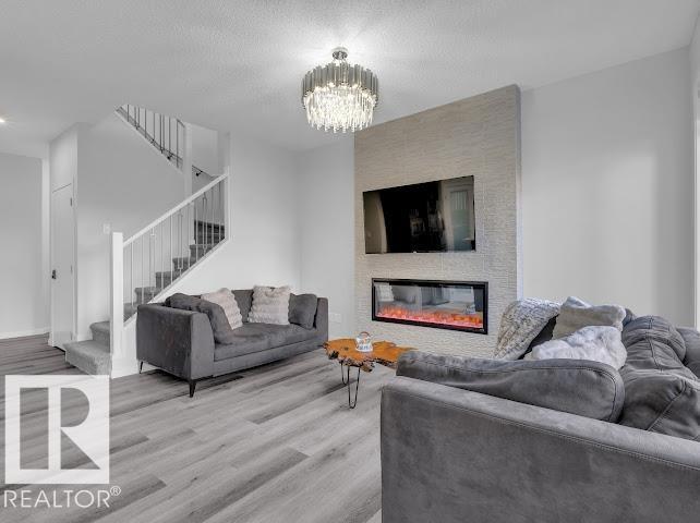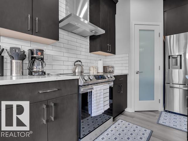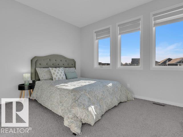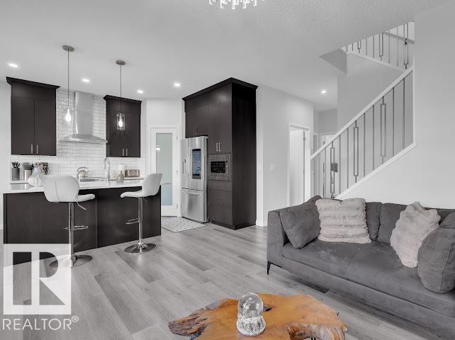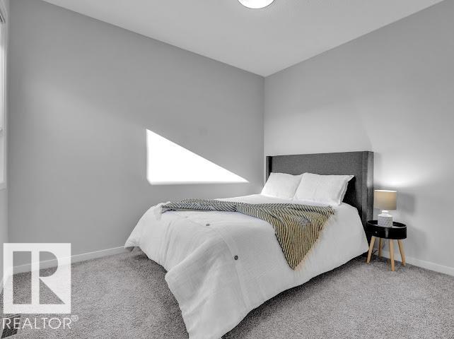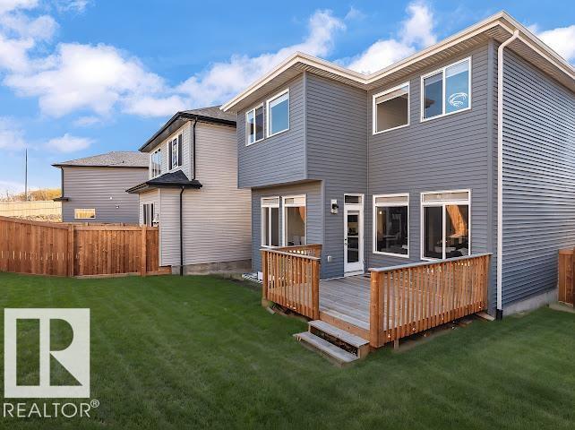 Built in 2023 by Morrison Homes, now part of the award-winning Cantiro Homes Group, this pristine single-family detached home with front-attached double garage shows like new. Featuring 9-ft ceilings and a bright open-concept layout, the main floor offers an elegant electric fireplace and wood staircase with iron spindles. The modern kitchen includes maple cabinetry, quartz countertops, stainless steel appliances, chimney hood fan, built-in microwave, and smart fridge. Blinds throughout. Total 4 bedrooms, including a main-floor bedroom with full bath. Upstairs offers 3 spacious bedrooms with walk-in closets and a large bonus room. Quartz and maple finishes in all baths. Fully landscaped with deck and fencing. Oversized driveway fits 4 SUVs plus double garage. Prime location near 50 Street, transit, schools, parks, and shopping. Furniture negotiable. (id:63190)