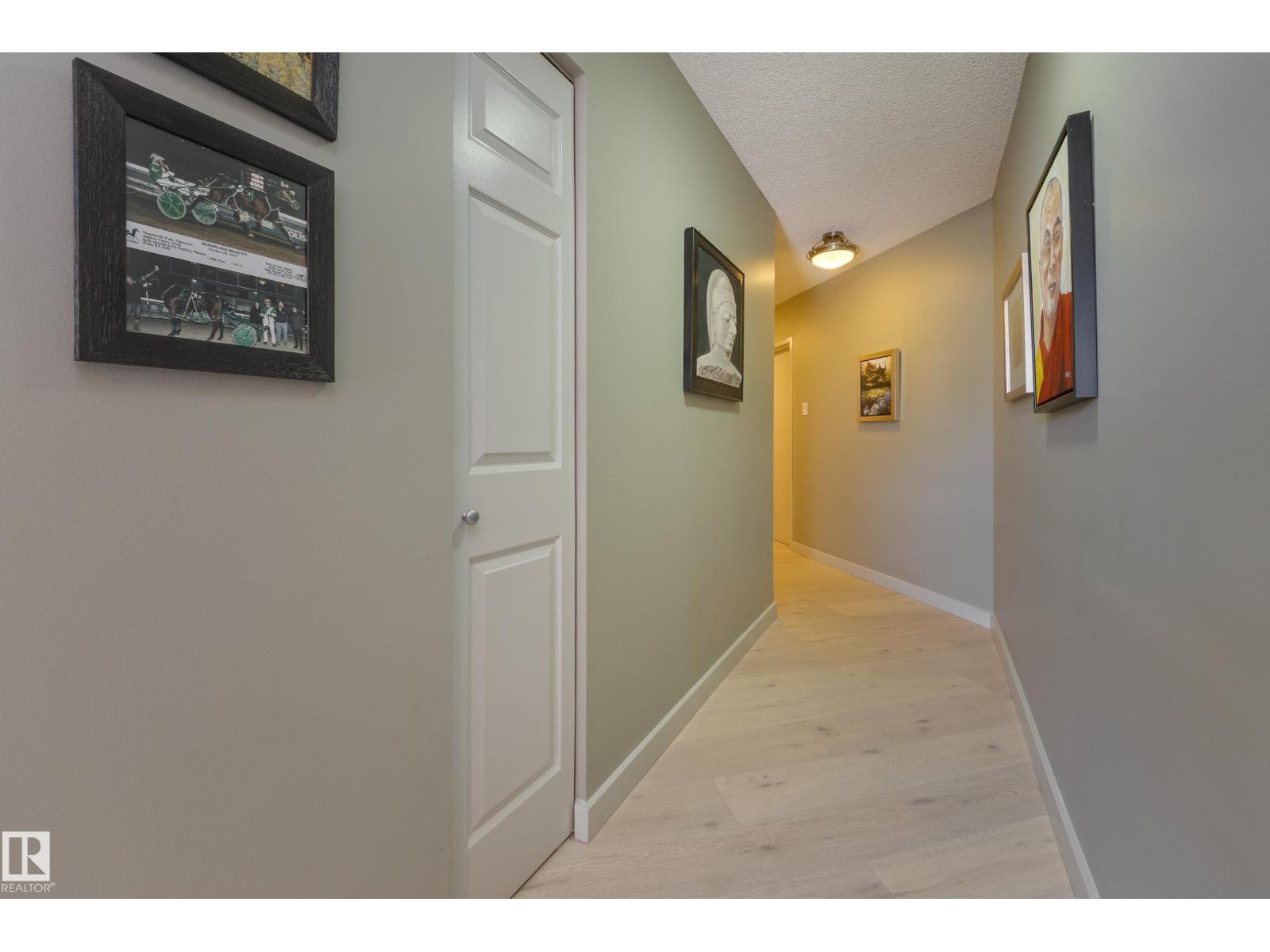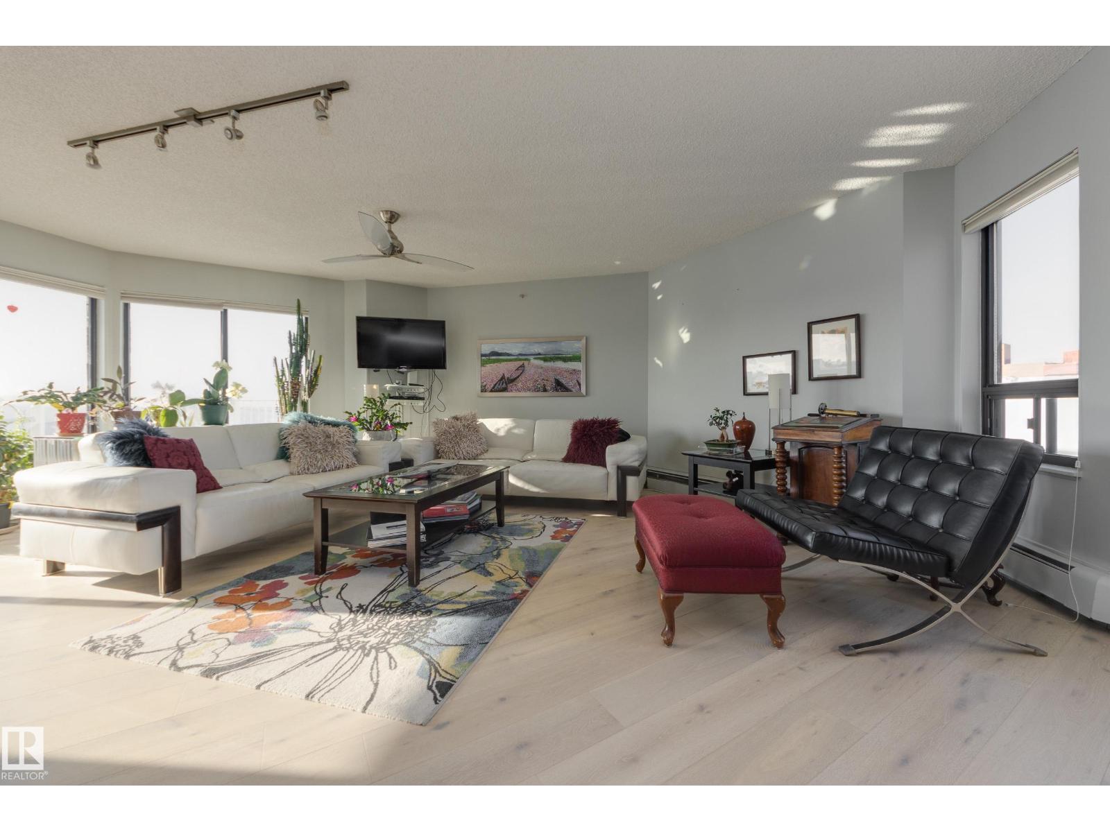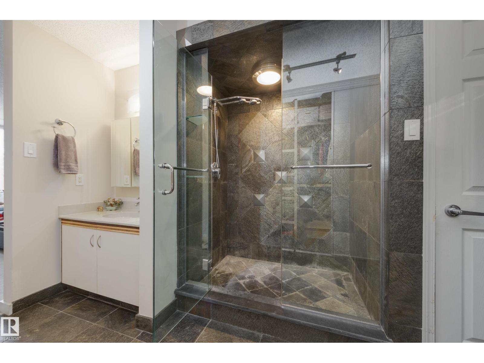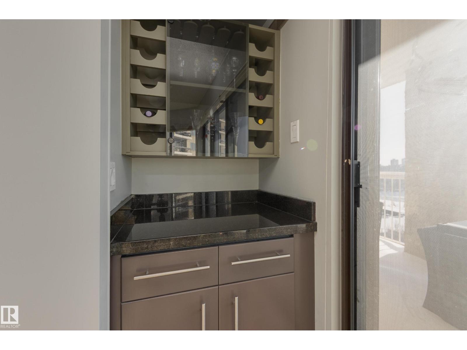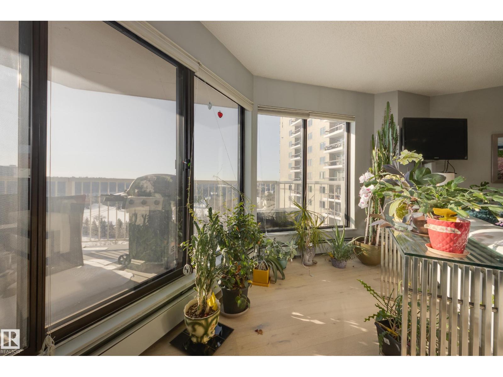 Spectacular RIVER VALLEY and GOLF COURSE views, paired with true UNIQUENESS put this 2 bed, 2 bath condo on the MOST WANTED LIST! Grandin House stands apart with only 10 units and a maximum of 2 suites per floor. The kitchen, open to the living and dining areas features ample hickory and grey lacquer cabinets, granite countertops, newer s/s appliances, ceramic cooktop, built-in oven and microwave, perfect for the chef in the family. New vinyl plank flooring runs throughout, adding a fresh, modern touch. Entertain or simply sit in the spacious living room with stunning year-round views from the balcony or cozy up to the wood-burning fireplace on snowy winter evenings. Down the hall, the primary retreat features a walk-through closet, shower, and vanity that leads into the bedroom with an additional 2pc ensuite. A second bedroom and partially upgraded 4pc bath with jetted tub complete this amazing unit. Can't forget the underground parking, building updates and a new rooftop patio. Just steps to the LRT! (id:63190)