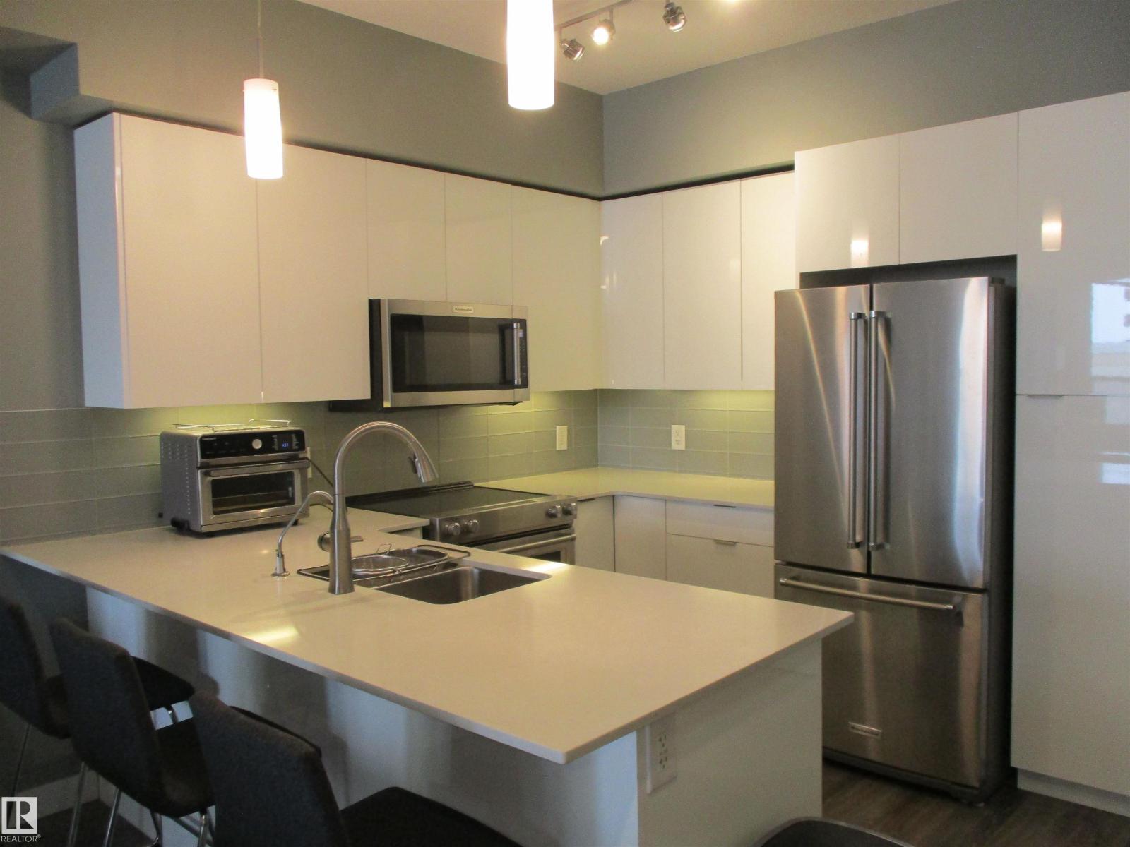 HONEY STOP THE CAR! Nestled off 99 Street & Saskatchewan Dr. - treat yourself to an OPULENT LUXURIOUS LIFESTYLE in the Strathcona community. This TOP FLOOR 2016 Build unit is steps to our RIVER VALLEY and Whyte Avenue, 9' Ceilings with DESIGNER Colors Quartz counter tops through out, IN-SUITE AIR CONDITIONING, CUSTOM CALIFORNIA CLOSETS THROUGHOUT. As well custom made matching closet off the fully equipped kitchen for extra pantry. This fully equipped Chef dream kitchen features ample counter and cupboard space as well Stainless steel appliances, Built in dishwasher, Water filtration system, Massive balcony to enjoy the summer months ahead + BBQ gas line. IN-SUITE WASHER/DRYER. Jack 'n Jill full bath w/tile surround as access to the primary room. Sophisticated Walk Thru closet is off the large bedroom that easily fits a KING SIZED BED, Titled UNDERGROUND HEATED PARKING stall. Pets allowed with Board approval, Stunning open concept unit awaits your arrival-Welcome to your new home to be or investment. (id:63190)
