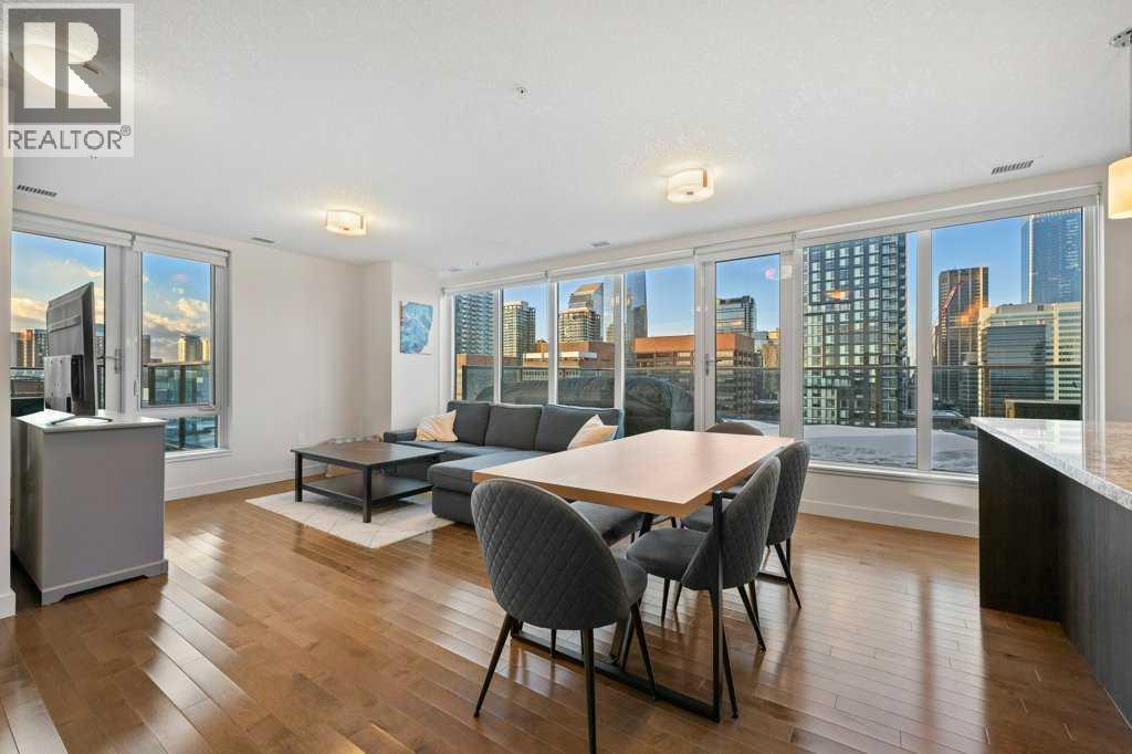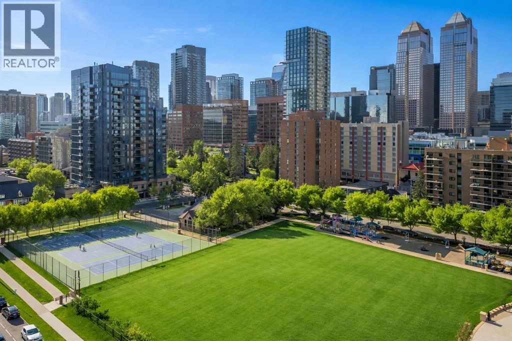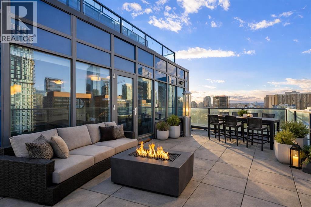 Your front-row seats to the Calgary skyline. A Penthouse feel - without the Penthouse price. Enjoy 2 bedrooms + 2 bathrooms + 2 terraces while overlooking 1 incredible view. From the moment you walk in, the energy is undeniable. Expansive windows flood the open-concept space with natural light while the city becomes your everyday backdrop. The kitchen delivers both style and function: granite counters, stainless steel appliances, gas range, rich espresso cabinetry, pantry storage and a central island designed for gathering. The living room? Equally suited for movie nights or simply watching the lights of downtown come alive - you may find the skyline steals the show. Once you step outside, everything changes. Nearly 500 sqft of outdoor space unfolds across two oversized terraces - a true rarity in urban living. One is perfectly positioned off the primary suite for quiet morning coffee. The other becomes your summer headquarters - entertaining under the glow of Calgary’s most iconic buildings with friends, laughter and evenings that stretch into the night. The best part about the view? Protected. With Central Memorial Park below, this isn’t just beautiful, it secures long-term value. Back inside, the generous primary retreat features a walk-in closet and spa-inspired 5-piece ensuite, while the second bedroom and adjacent full bath create ideal flexibility for guests or those who work from home. The lifestyle perks continue with an underground parking stall, two storage lockers, onsite concierge, fitness facility, guest suite, community garden + shared terrace, visitor parking with EV charging and loading dock convenience. All positioned in one of Calgary’s most walkable locations - steps to restaurants, cocktail bars, pubs, downtown offices, C-Train access, Stampede grounds and the future arena district. This isn't just a condo - it's a perspective upgrade. Live differently. Live above the city. (id:63190)
