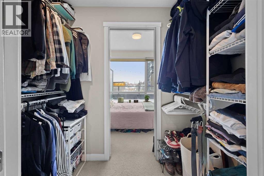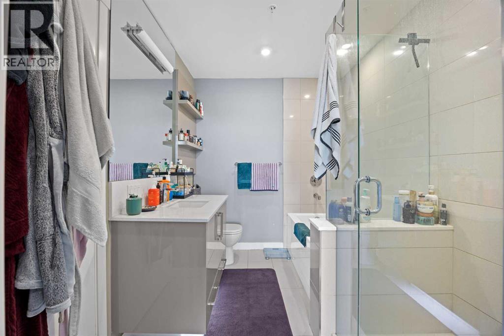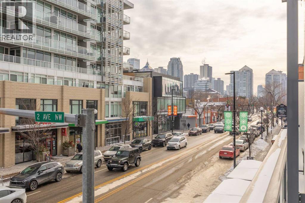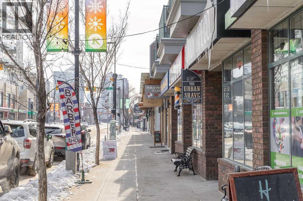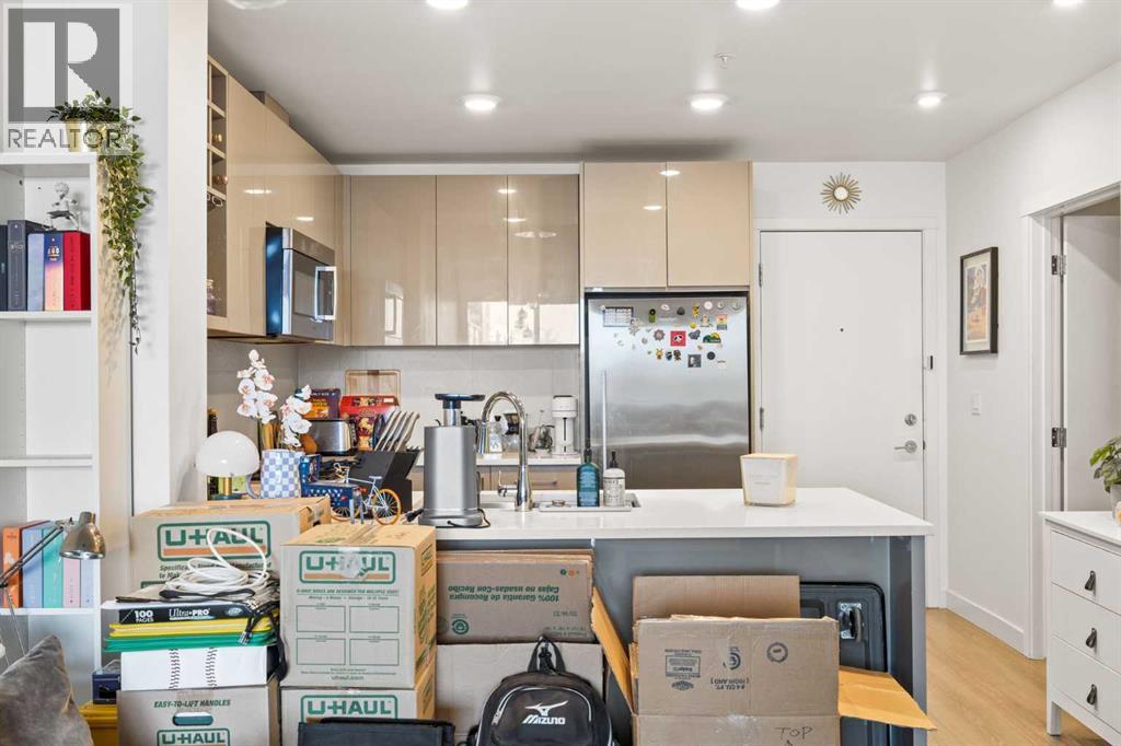 Welcome to urban living at its finest in The Kensington, ideally located in the vibrant community of Hillhurst. This beautifully appointed 1-bedroom, 1-bathroom unit showcases modern finishes and an open-concept layout designed for both comfort and functionality. The stunning U-shaped kitchen features high-gloss cabinetry, excellent counter space, a built-in wine rack, and premium stainless steel Bosch appliances, including a gas stove, perfect for those who love to cook and entertain. The kitchen seamlessly opens to the bright living/dining area, offering flexibility for adding a home office setup or a sunny reading nook. Step outside to your spacious private south facing balcony, complete with a convenient BBQ gas line, ideal for entertaining or relaxing evenings at home. The generous primary bedroom offers a large walk-through closet with thoughtfully designed shelving for maximum organization and direct access to the elegant 4-piece bathroom. Enjoy luxury touches including a deep soaker tub, glass surround stand up shower, large vanity with ample storage, built-in shelving, and a cheater door providing convenient access from the main living space. Additional highlights include a dedicated laundry room near the entrance with side by side washer and dryer with extra storage space and an additional front closet area. Central air conditioning ensures year round comfort and this unit also comes with one TITLED underground parking stall and an assigned storage locker, an added bonus that is priceless with condo living. Additionally the building also offers a residents car wash and bike storage! Residents will love the unbeatable location with retail amenities right on the main floor, including Orange Theory Fitness and a café, plus just a 5-minute walk to Sunnyside LRT station. Enjoy quick access to the Bow River pathways, downtown core, and the countless shops and restaurants that make Kensington one of Calgary’s most sought-after neighbourhoods. This is a rare oppor tunity to own a sophisticated home that perfectly blends luxury, convenience, and that unbeatable inner city lifestyle. (id:63190)
