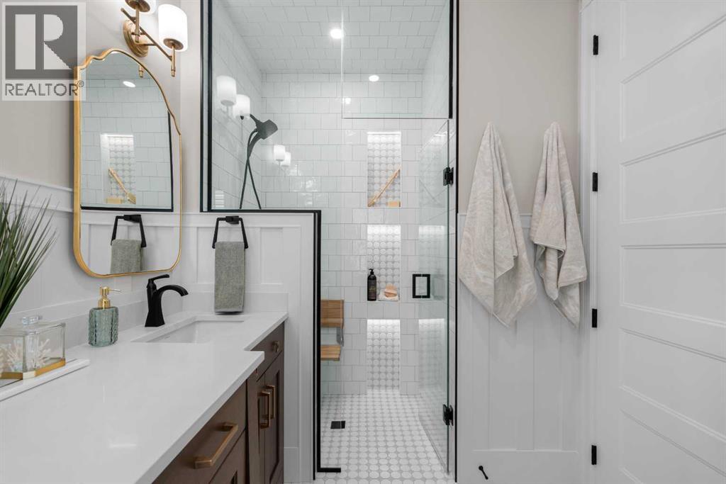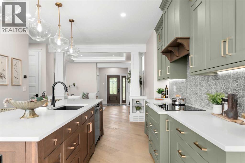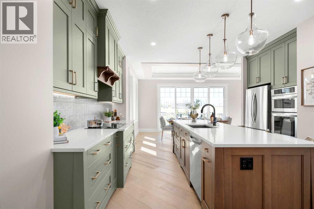 Welcome to The Hawktail, an EnergyStar® certified home designed for comfortable main floor living while offering flexibility for families and guests. Presented in show home condition and fully finished, this property is move-in ready with show home furniture negotiable, creating a seamless turnkey opportunity. Built for superior durability and efficiency, the home features an ICF foundation and graphite-infused ICE Panels above grade, delivering exceptional insulation, structural strength, and energy performance. The result is an airtight, quiet, and consistently comfortable home in every season. The thoughtfully designed main floor includes a spacious primary bedroom with convenient laundry just steps away. The ensuite is built for comfort and accessibility, complete with in-floor heating and a curbless shower. Bright open-concept living areas feature large windows and high ceilings, creating an inviting space ideal for everyday living and entertaining. The fully developed basement offers three additional bedrooms, a full bathroom, a flex room, and mechanical area, providing outstanding versatility for family living, guests, hobbies, or a home office. Additional efficiency upgrades include a heat pump laundry pair, heat pump hot water tank, and electric vehicle readiness to help reduce utility costs.The attached garage is equally impressive, featuring heated epoxy flooring, a built-in mudroom space, and no stairs for easy access into the home. Located on a quiet street with ample parking in the desirable Sixty West community of Sylvan Lake, the home faces north toward a walking trail with no future homes planned across the street. The rear of the property overlooks a community gazebo and water feature, offering a peaceful setting. Residents enjoy more than four kilometers of interconnected walking trails, nearby parks, and convenient amenities. (id:63190)