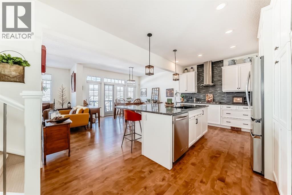 Immerse yourself in nature with this stunning Jayman built property backing directly onto the Bow River, offering unobstructed views and direct access to the scenic pathway system. From the moment you step into the bright, sun filled foyer, you’ll appreciate the thoughtful design and exceptional attention to detail throughout. Pride of ownership shows as soon as you walk through the front door. The chef inspired kitchen features granite countertops, an oversized island perfect for entertaining, built in oven and microwave, gas stove with hood fan, high end stainless steel appliances and all new hardware on the kicthen cupboards and drawers. The open concept kitchen seamlessly flows into the dining area, which opens onto a raised vinyl wrapped deck ideal for summer BBQs and evening drinks overlooking the river. The spacious living room invites you to unwind beside the cozy gas fireplace adorned with a 200 year old barn wood mantle, barn wood panels and stacked stone surround. While upstairs you’ll find three generously sized bedrooms, a full guest bath with closet, and a beautiful primary retreat with gorgeous views complete with a large walk in closet and a luxurious ensuite featuring double vanities, a glass walk in shower, and a deep soaker tub where you can relax while enjoying peaceful river views. Conveniently the spacious upper floor laundry adds everyday ease with views of the nature reserve to the south of the home. The upper level also has a spacious walk in linen closet. The fully finished walkout basement expands your living space with a stylish sitting area with updated vinyl plank flooring (2022), 4 piece bathroom with updated luxury vinyl plank flooring, wet bar, built-in wine rack, custom cabinetry, and a high end wine fridge. The family room/game room opens onto a private patio and green space. With a fully finished double attached garage with epoxy flooring, additional storage, and truly one-of-a-kind riverfront views, this exceptional home offers t he perfect blend of luxury, comfort, and lifestyle! All updates include: hardwood flooring refinished in 2025, luxury vinyl flooring in basement, upper level & bathrooms completed in 2022, the fridge, washer & dryer were all replace in 2022, all new paint throughout the home was also completed in 2022. The furnace and HWT are original and are serviced annually. Book a showing today at this beautiful river front property! (id:63190)