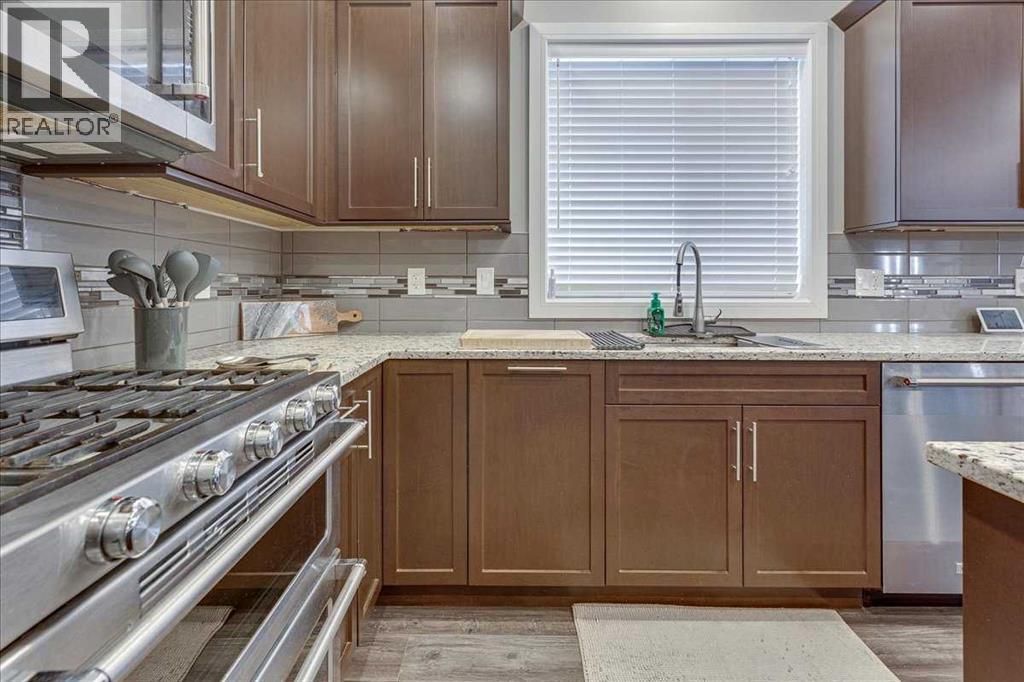 EXECUTIVE CARRIAGE HOME! Beautifully appointed 2 Storey home with double attached, and double detached garage with legal suite above! This fully finished home (2,144 s.f.) with 22x24 attached garage, offers 5 bedrooms & 3.5 bathrooms, and offers plenty to catch your eye! Vaulted Ceilings, beautifully appointed kitchen with quartz counter tops, large island, full tile backsplash, matching Kitchen-Aid appliances including a double wide refrigerator, & gas stove. This house also features Central Air, large windows, vaulted ceilings, and flexible laundry options (currently upstairs right outside the primary bedroom). The Primary Bedroom comes with a stylish 5 piece ensuite with dual sinks, walk-in shower & walk-in closet. The fully finished legal suite (652 s.f.) above the 20'x27' detached garage has 1 bedroom, 4 piece bathroom, kitchen, living room and stackable laundry in the bathroom. (id:63190)