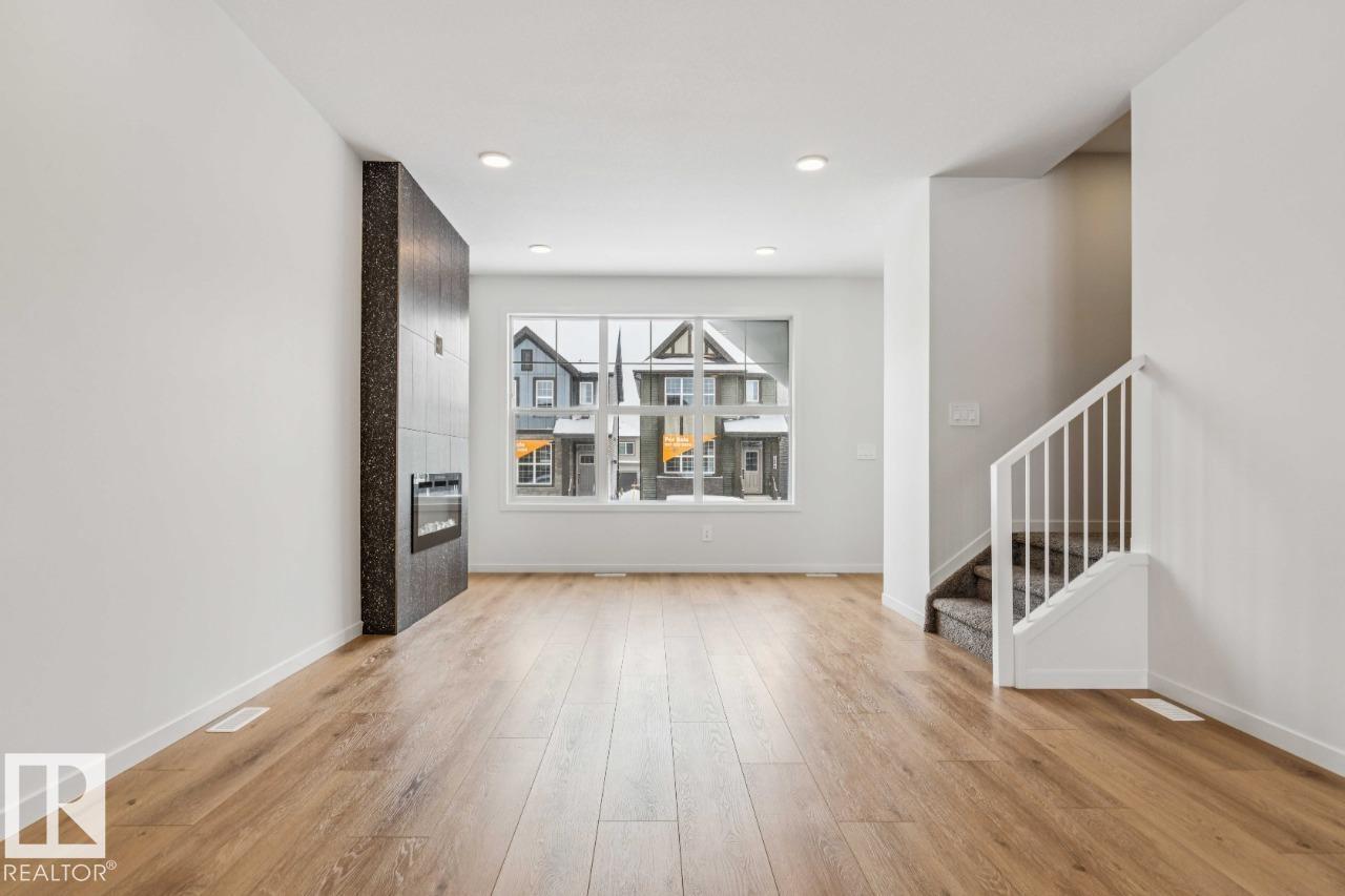 IMMEDIATE POSSESSION AVAILABLE! Welcome to the Metro Shift by Cantiro Homes! This beautifully designed rear-laned single-family home offers the perfect blend of space, functionality, and future flexibility. The open-concept main floor seamlessly connects the kitchen, dining, and living areas — ideal for everyday living and entertaining. A cozy tiled fireplace and iron spindle railing add stylish, modern touches throughout. Built with future potential in mind, this home features a SIDE ENTRY, 9’ basement foundation, two basement windows, and rough-ins for a future basement development (drains only), providing excellent long-term versatility. Situated in the sought-after community of Rosenthal in West Edmonton, residents enjoy access to walking trails, parks, playgrounds, water features, and abundant greenspace; creating the perfect balance of nature and convenience. Features include: 9’ basement, rough-ins for future development (drains only), tiled fireplace, and iron spindle railing. (id:63190)