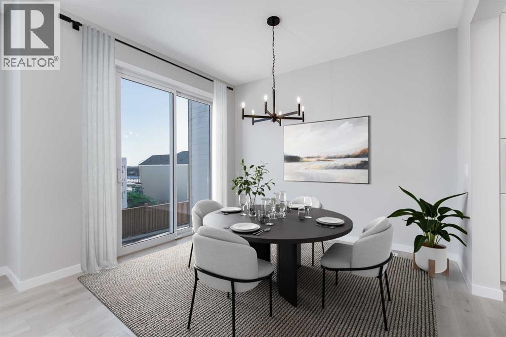 Open concept living room, dining room and kitchen space is the heart of the home. This photo is the same layout as 533 but this is a different colour pallet