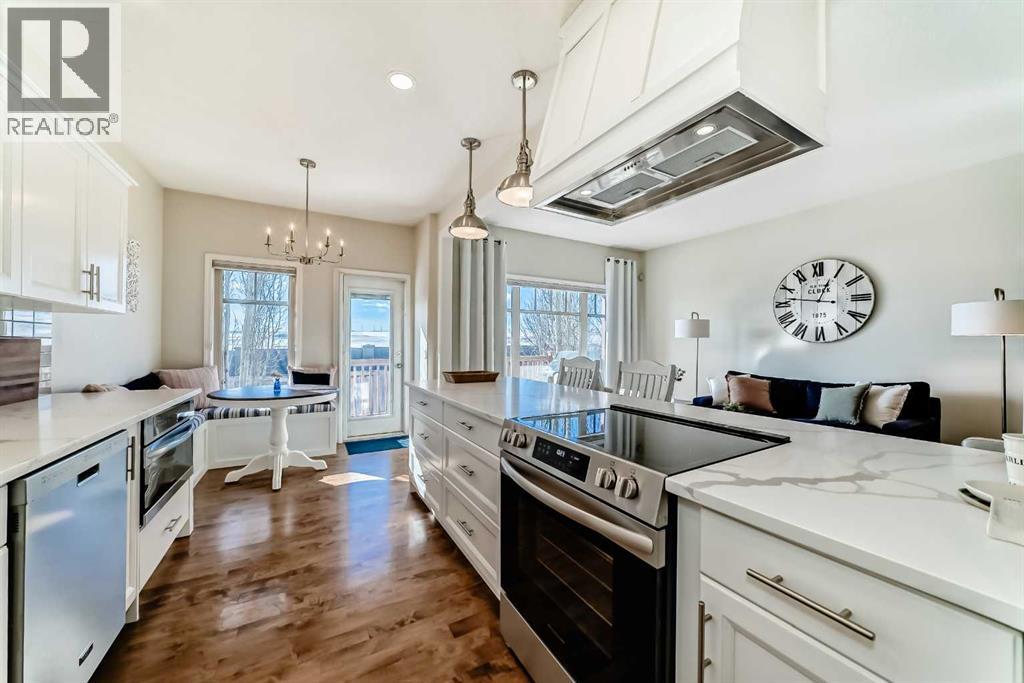 Welcome to Bridle Estates—one of Calgary’s premier 55+ adult communities. From the moment you arrive, you'll be drawn in by the home’s charming curb appeal, featuring a covered front porch and a double attached garage. Inside, a wide foyer opens into a bright, open-concept layout highlighted by a striking three-sided fireplace and large south-facing windows that flood the space with natural light. The main level showcases rich refinished hardwood floors and a thoughtfully designed floor plan that includes a formal dining room, a dedicated home office, and a spacious living room. The fully modernized kitchen is equipped with stainless steel appliances, ample cabinetry, and generous quartz countertop space perfect for everyday cooking and entertaining. A cozy breakfast nook leads to the large deck overlooking a sunny south-facing backyard. Also on the main floor is a spacious primary bedroom with a walk-in closet and 4-piece ensuite, a convenient laundry room, and a 2-piece powder room. The fully finished walkout basement has brand new carpet and offers even more living space with two large bedrooms, an in-floor heated luxurious 5-piece bathroom with jetted tub, and a bright family room with a second gas fireplace. Step outside to a private lower patio, an ideal retreat for relaxation. Additional features include ample storage, underground irrigation, and approximately 2,350 sq. ft. of developed living space. Bridle Estates is a quiet, well-maintained community offering green spaces, a clubhouse, and walking paths. A low HOA fee ($180/month) covers landscaping and snow removal, ensuring a truly maintenance-free lifestyle. Conveniently located near transit, shopping, dining, and just minutes from Spruce Meadows with easy access to Stoney Trail. Don't miss your opportunity to enjoy vibrant, carefree living in a beautifully appointed home. (id:63190)
