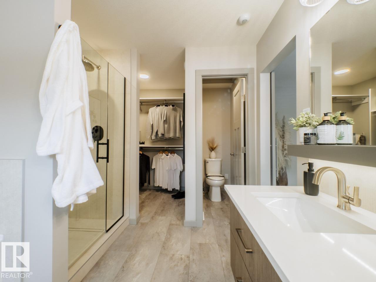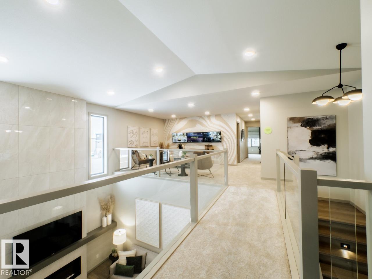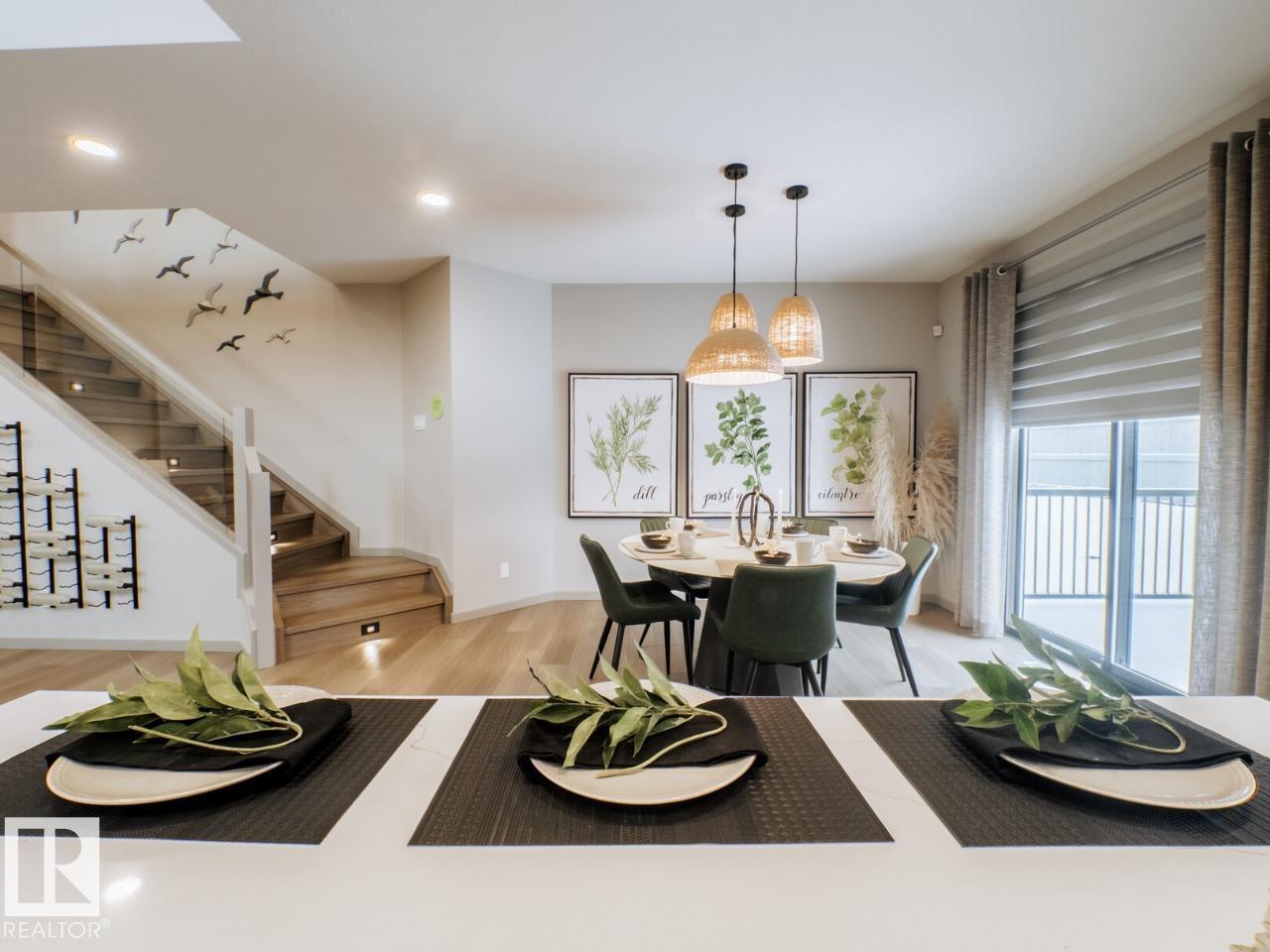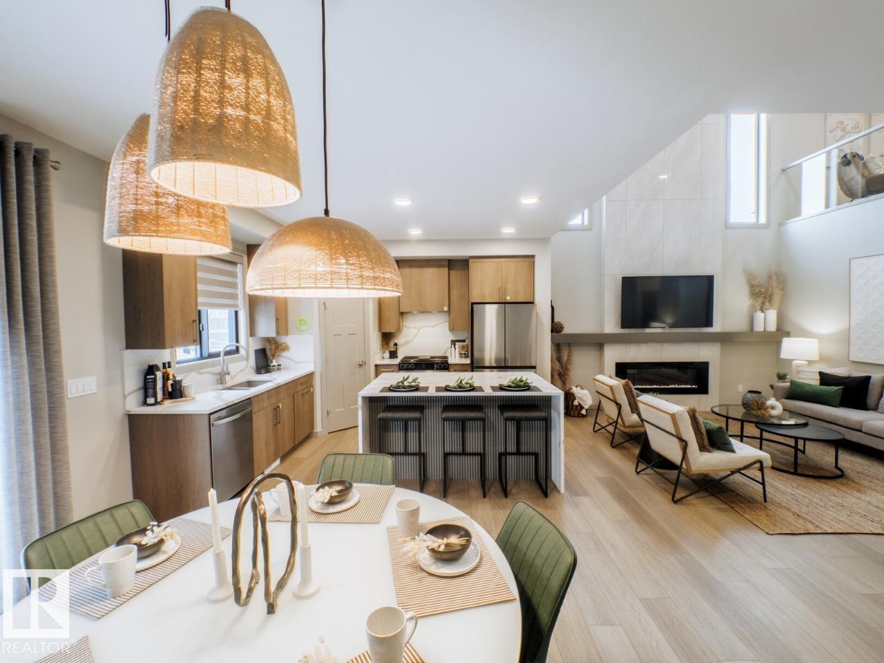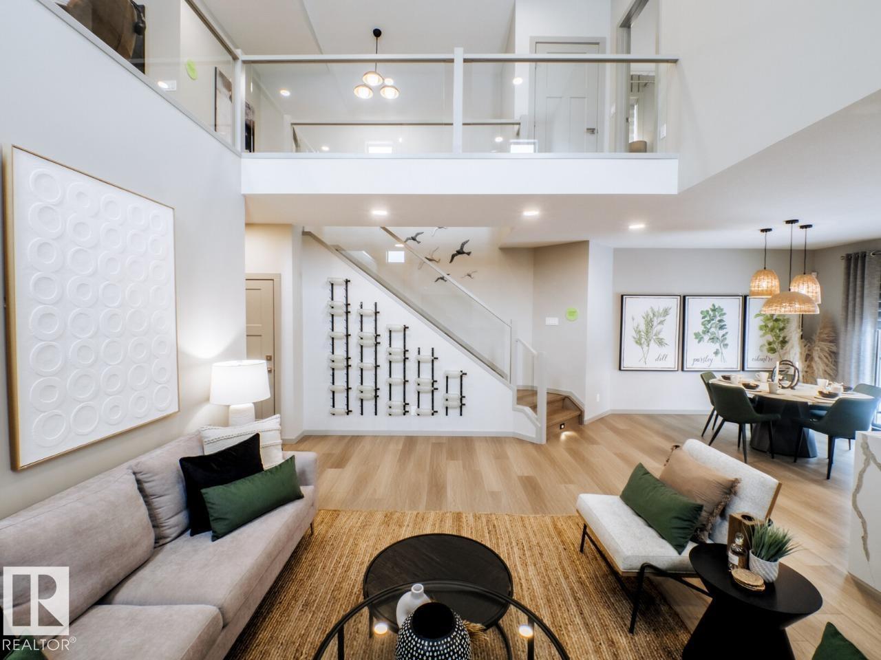 The Kiera model invites you into a charming foyer area leading to a flex room, half bathroom, and mudroom that is right off the oversized double car garage. An L-shaped custom kitchen with waterfall island at the rear of the home overlooks the spacious open to above great room and oversized dining area, perfect for hosting your family and friends. As you reach the second floor, you'll discover a bridge leading over the great room towards the bonus room. The upstairs also features two secondary bedrooms, a full bathroom, laundry space and large primary bedroom with fully upgraded ensuite and walk-in closet. The ensuite includes a floating lit vanity, custom tile shower with 10ml glass and deep soaker tub. This home comes with a side entrance and a 9' foundation, perfect for future basement development. The Showhome boasts custom designer blinds and drapes throughout. This traditional full-sized property has been fully landscaped. (id:63190)