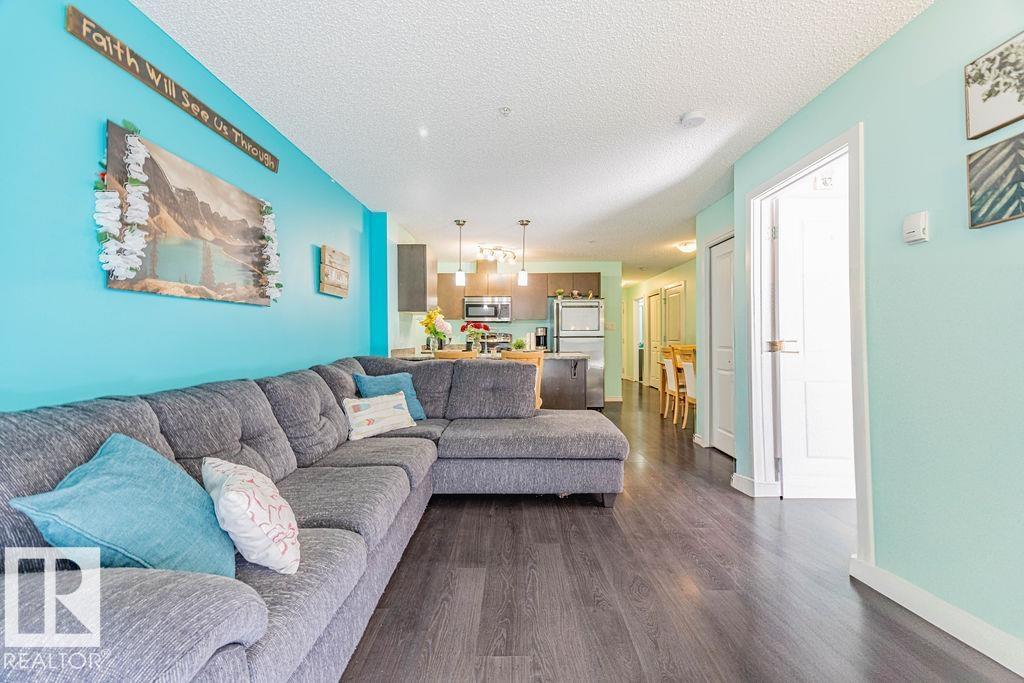Private, corner main-floor unit in the heart of Windermere—ideal for first-time buyers, downsizers, or investors. Offering over 700 sq. ft. of well-designed living space, this condo is quietly situated at the back of the complex, providing one of the most desirable and private locations available. The functional layout includes a versatile bedroom/den—perfect for a home office or guest room—a full 3-piece bath, and convenient in-suite laundry. The kitchen is thoughtfully designed with a peninsula island and open sightlines into the bright living area, where sliding patio doors lead to your private outdoor space. The primary bedroom features a walk-through closet and a 4-piece ensuite for added comfort. A titled surface parking stall is included. Located just steps to schools, shopping, and everyday amenities, this is an exceptional opportunity to own in one of Southwest Edmonton’s most sought-after communities. (id:63190)