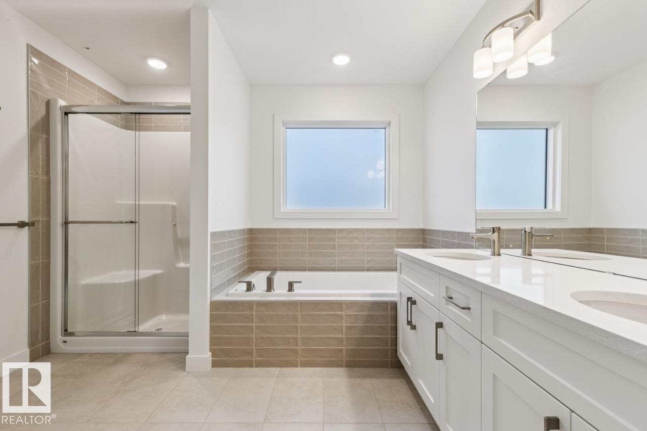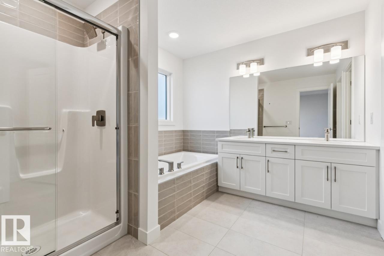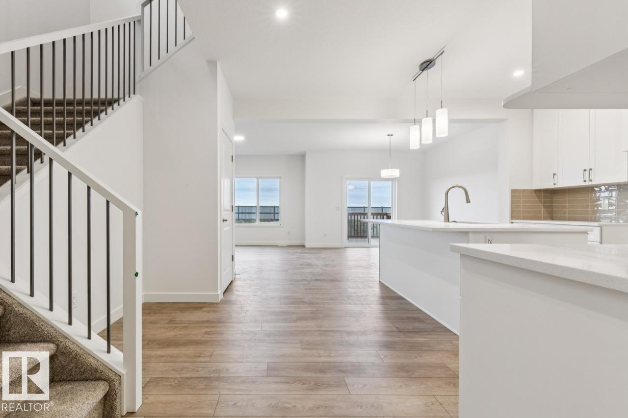 The bright, open-concept main floor showcases a centralized kitchen and spacious nook—perfect for entertaining and everyday family gatherings. A dramatic open-to-above stairwell creates a stunning first impression and adds architectural elegance throughout the home. Upstairs, you’ll find a beautiful vaulted front sunken bonus room, offering a unique and inviting space for relaxing or family time. The luxurious primary bedroom features a walk-in closet and spa-inspired ensuite, complete with a separate shower and a relaxing drop-in tub—your own private retreat at the end of the day. Photos are representative. (id:63190)