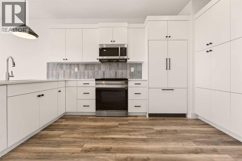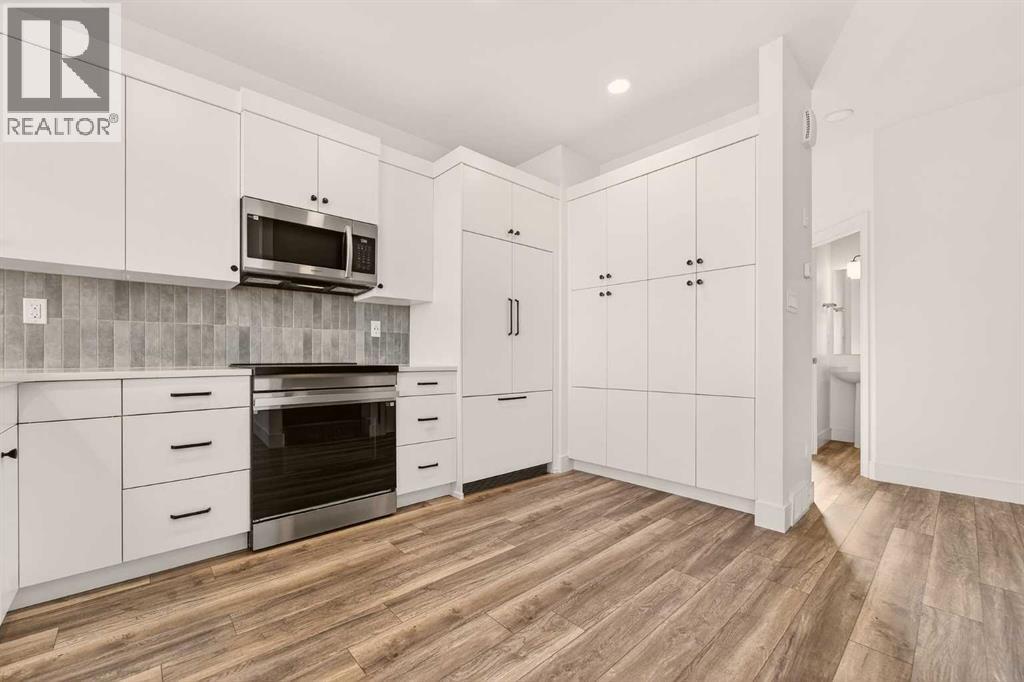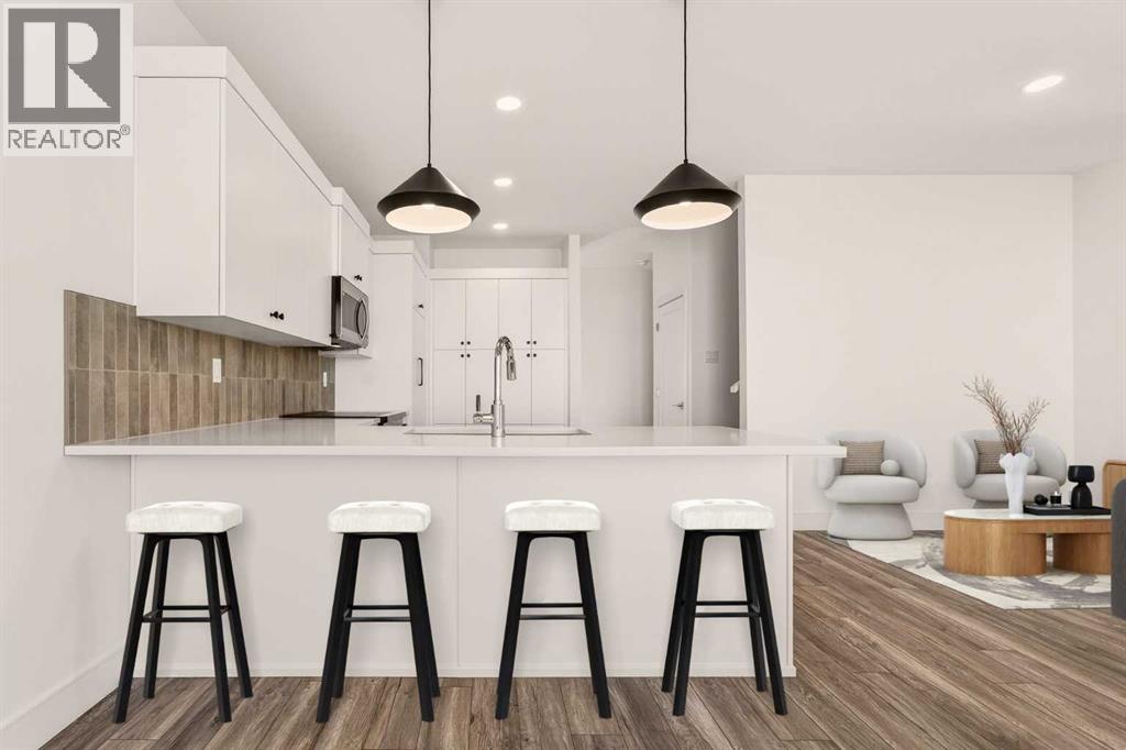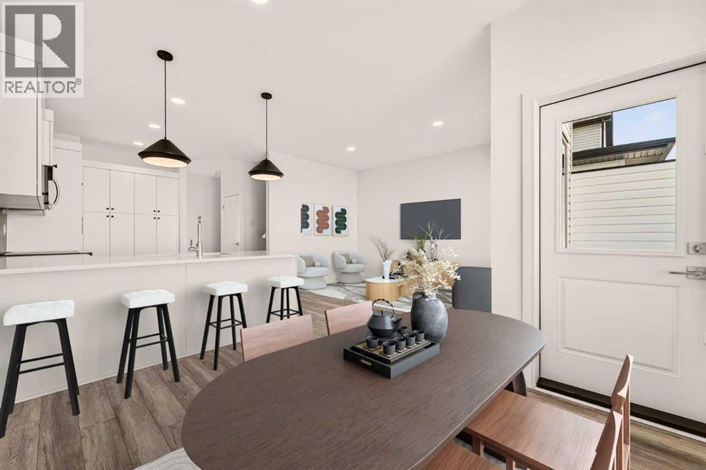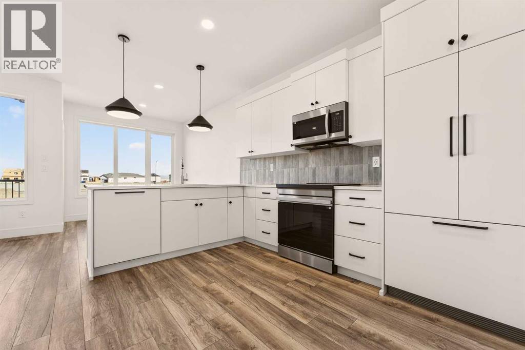 Welcome to the Pockton half duplex by Stranville Living Master Builder, a brand new home offering modern design, smart use of space, and no condo fees. This thoughtfully built property includes an attached single garage with a sizeable front driveway, plus the added convenience of a rear parking pad—something you rarely get with a home of this size.The main floor is bright and open, anchored by an impressively large kitchen that truly sets this home apart. Finished with quartz countertops, abundant cabinetry, and generous counter space, the kitchen is both stylish and highly functional. High-end appliances elevate the space, including a sleek induction cooktop, panelled Fisher & Paykel fridge, panelled dishwasher, and a built-in oven and microwave. A spacious built-in pantry keeps everything organized, while the peninsula with bar seating creates the perfect spot for casual meals or entertaining.Just beyond the kitchen is the open dining area, seamlessly connected to the main floor living room for an easy, flowing layout. From the dining room, step out onto the already-installed back deck, which leads into your private backyard and rear parking pad—ideal for everyday convenience or hosting friends and family.Upstairs, the second level features three spacious bedrooms, including a well-appointed primary suite complete with dual vanities, a walk-in shower, and a walk-in closet. The additional bedrooms are generously sized, making this home a great fit for families, guests, or a dedicated home office setup.This is a clean, modern half duplex that delivers premium finishes, practical parking, and ownership simplicity—all without condo fees.. GST is included in the price as well as a 10 year new home warranty.. Photos are virtually staged. (id:63190)