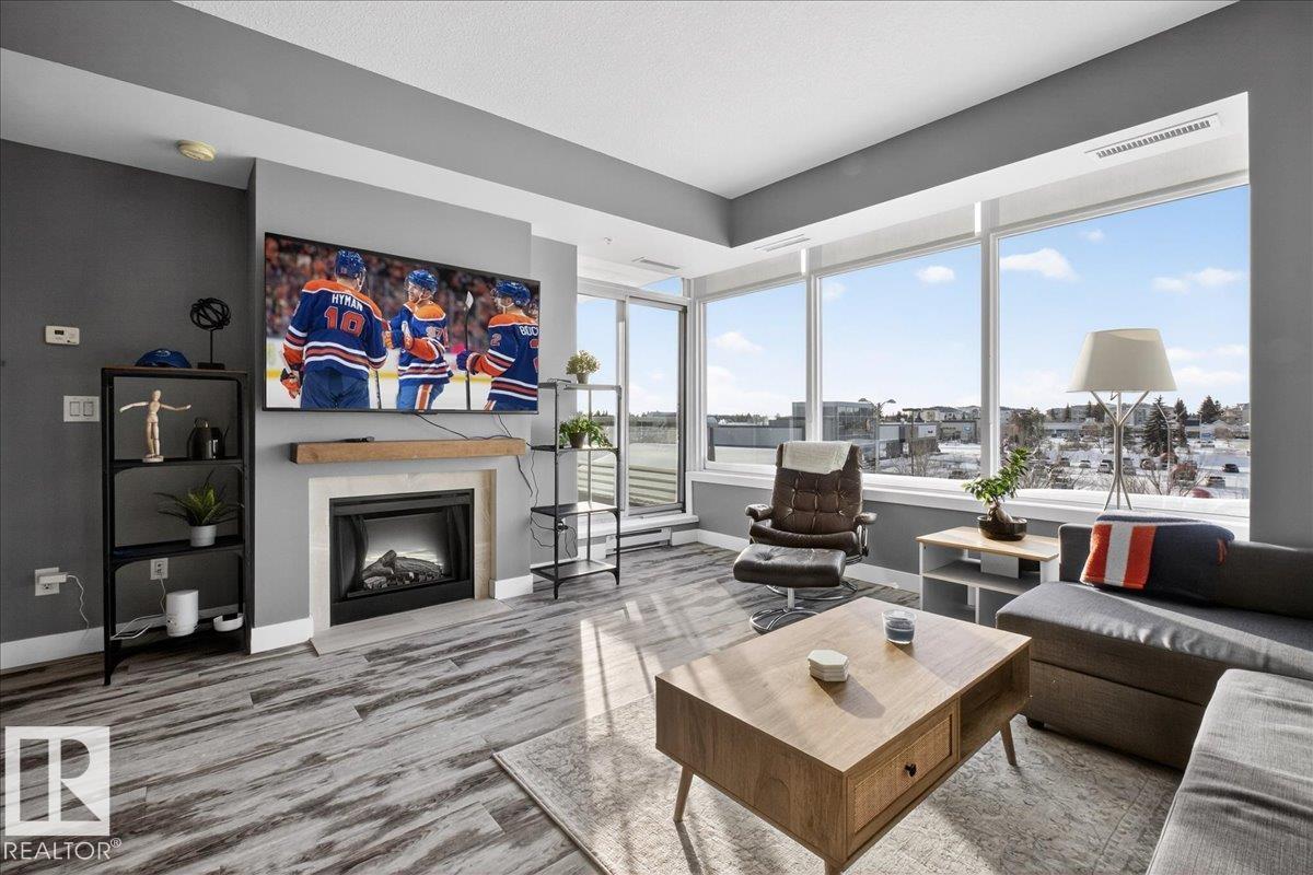 Welcome to effortless urban living in this bright SOUTH-facing 1 bedroom condo—perfect for first-time buyers, downsizers, or parents investing for a student. Built with concrete construction, this building offers exceptional sound attenuation and peace of mind. Enjoy year-round comfort with a heat pump system providing both HEAT and A/C—ALL utilities are included in the condo fees for simplified budgeting. The unobstructed exposure floods the space with natural light through stunning floor-to-ceiling windows. Inside, you’ll find a modern aesthetic featuring granite countertops, laminate flooring, and an open-concept layout designed for functionality and flow. Step onto your private balcony complete with natural gas line—ideal for summer BBQs. This unit also includes a heated underground parking stall and a titled storage locker for added convenience. Located within walking distance to the LRT and everyday amenities, this is low-maintenance living in a prime location. Exceptional Value - do not wait! (id:63190)