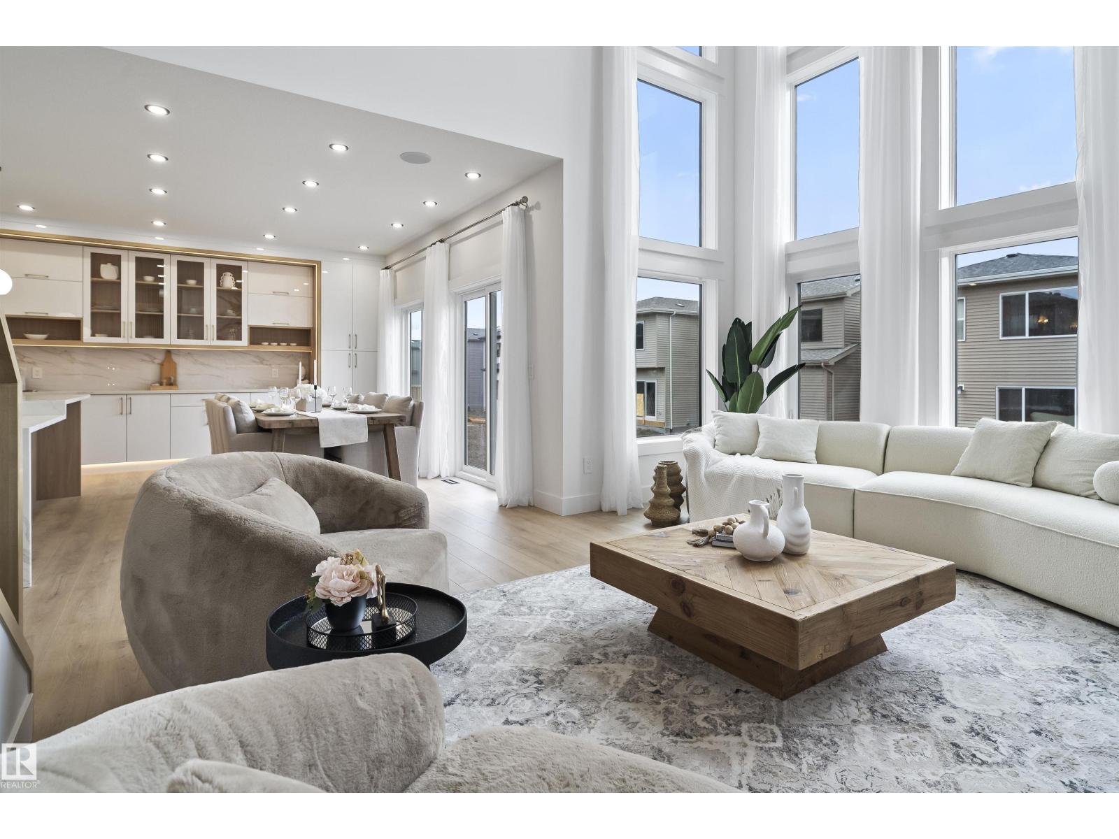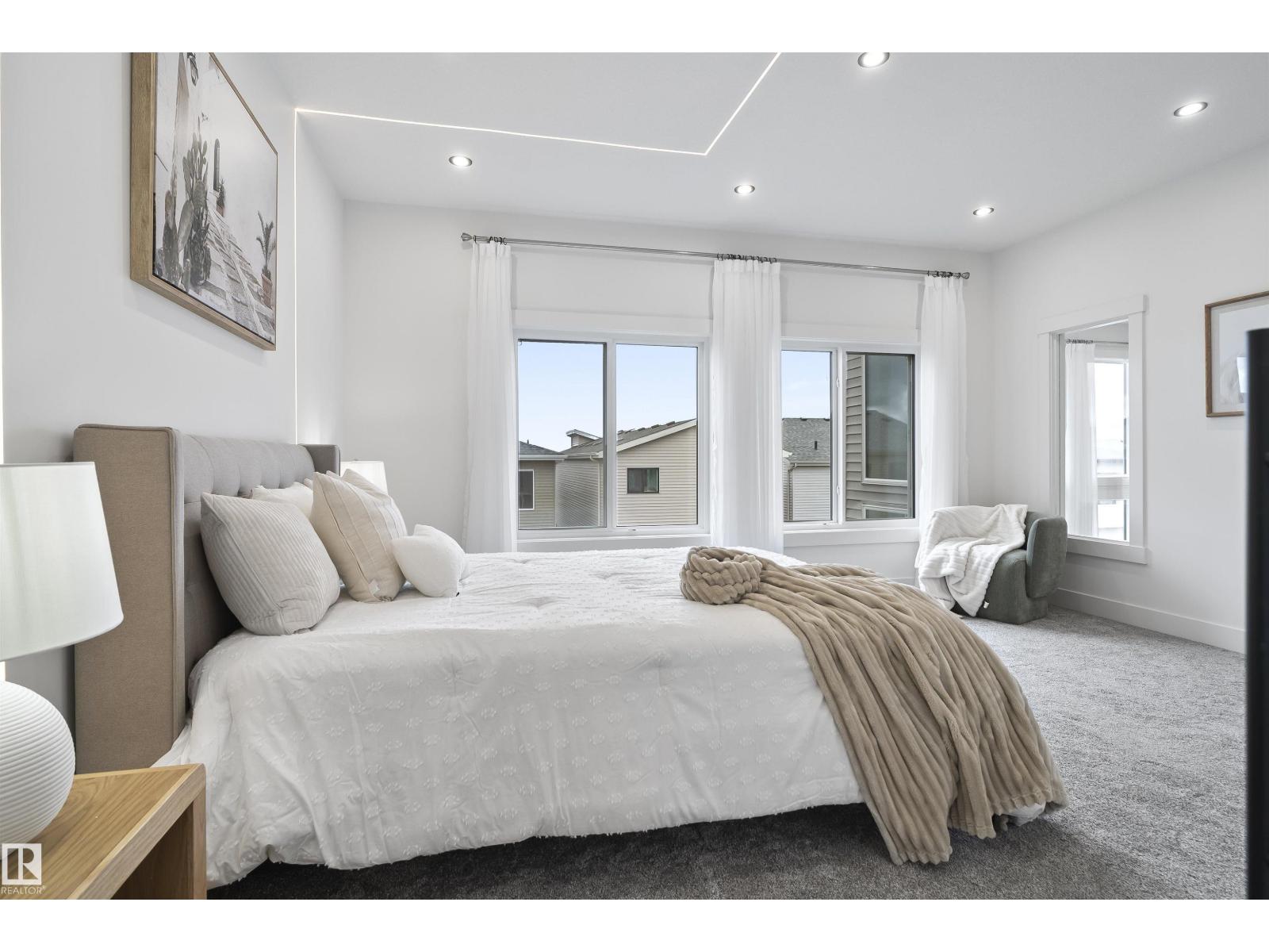 PARK BACKING Custom built home by Singh Builders in the community of Goodridge Corners. A distinctive layout with triple car garage backing to no neighbors. This home features 5 beds, 4 full baths, a bonus room & a spice kitchen. Highlighting this home's excellent characteristics, you walk into unique foyer which lead you to a mudroom then to a full bed & a beautifully designed full bath. A GREAT ROOM with floor to ceiling windows, warm & welcoming area that perfectly captures the open to below concept with up to ceiling feature wall. A spacious dining area with a view of the extended kitchen. The walkthrough SPICE KITCHEN that every home needs. A thoughtfully designed 2nd floor offers 4 bedrooms, a Jack & Jill bathroom, a common bath, laundry and a bonus room. A side entrance with a potential for further basement suite. Close to major amenities. With quick access to Anthony Henday Drive, this home combines peaceful living with unbeatable accessibility. Definitely a must see. Photos are representative. (id:63190)