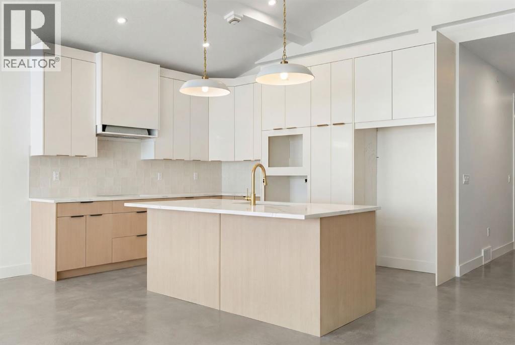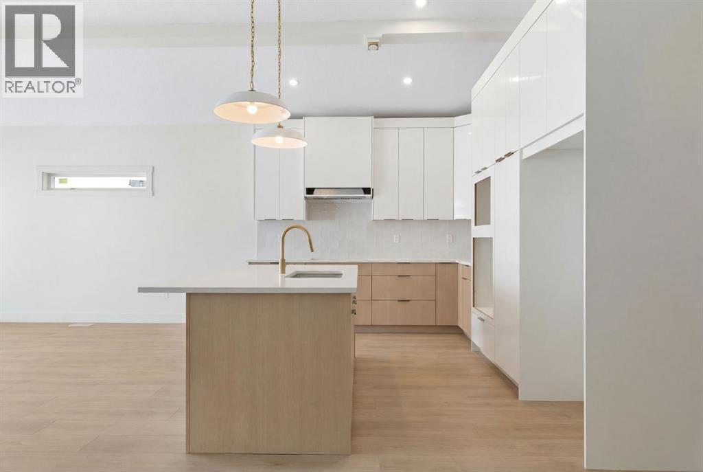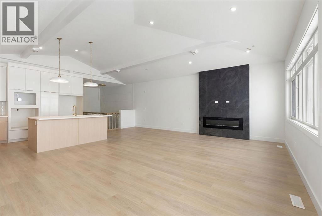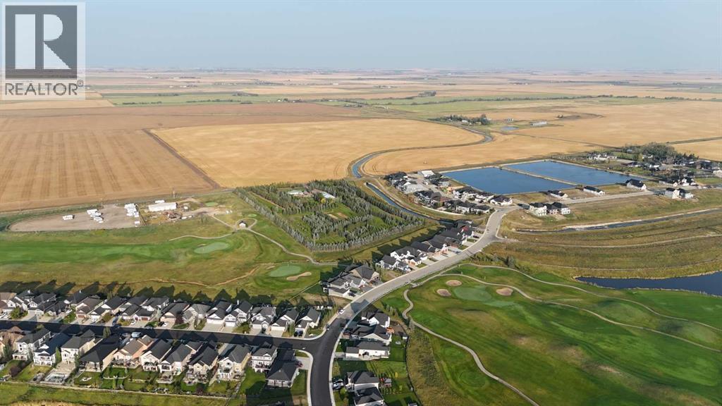 ELIGIBLE FOR FIRST HOME BUYERS GST REBATE. Brand New Fully Finished Bungalow | Pond & Mountain Views | Quiet Cul-de-Sac | Lakes of Muirfield Welcome to 24 St. Andrews Close - an exceptional brand new semi-detached bungalow perfectly positioned on a quiet cul-de-sac in the sought-after golf course community of Lakes of Muirfield. Backing onto open space with no neighbours behind, this home offers stunning pond and mountain views along with 3,258 sq ft of beautifully finished living space. The main floor spans 1,662 sq ft above grade and showcases soaring vaulted ceilings and an open-concept design filled with natural light. The chef-inspired kitchen features quartz countertops, an oversized island with seating, stainless steel appliances, modern cabinetry, and statement pendant lighting. The kitchen flows seamlessly into the dining area and spacious living room, highlighted by a dramatic floor-to-ceiling tile fireplace feature wall. Expansive rear windows frame peaceful water views and open skies, creating a truly serene backdrop. The primary suite is a private retreat complete with a walk-in closet and a luxurious 5-piece ensuite with dual vanities, a deep soaker tub, and separate shower. A second bedroom, full 4-piece bath, mudroom, and convenient main-floor laundry complete this thoughtfully designed level. The fully finished basement offers incredible additional living space with a massive recreation room and stylish wet bar—perfect for entertaining or relaxing. Two additional bedrooms, a full bathroom, ample storage, and a second laundry area add flexibility and function, ideal for guests or multi-generational living. Enjoy the freedom of no water restrictions in this premier golf community - a significant advantage over Calgary, Chestermere, and Strathmore. Low-maintenance living in this quiet, established golf course community just 20 minutes from Calgary and Strathmore. With pond views, mountain views, no neighbours behind, and a premium cul-de-sac location, this home offers the perfect blend of privacy, comfort, and modern design. (id:63190)