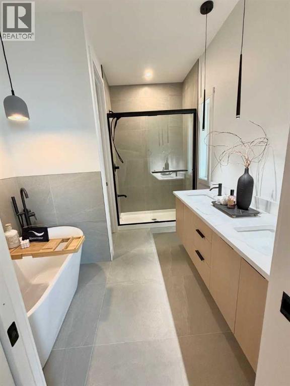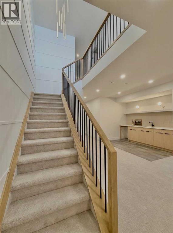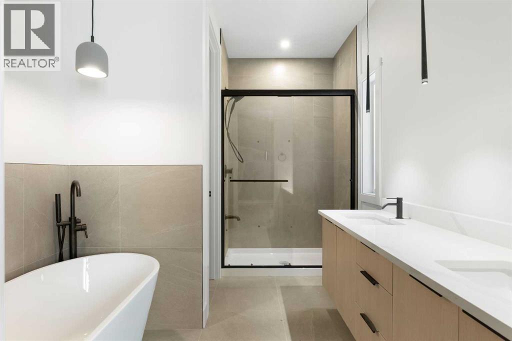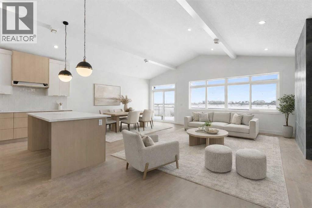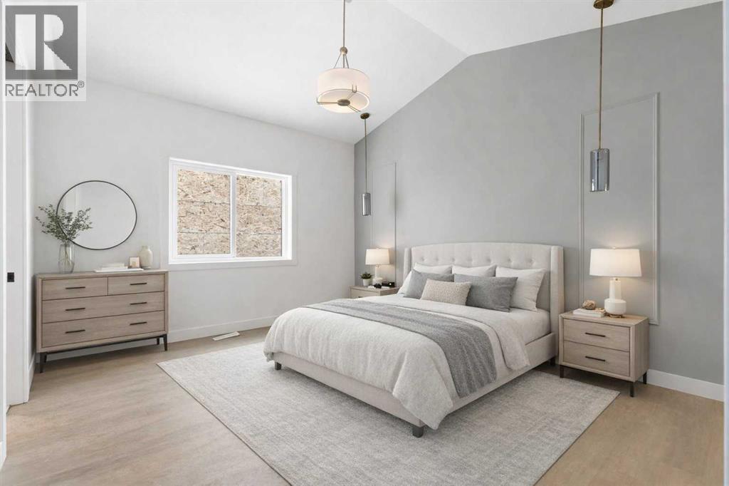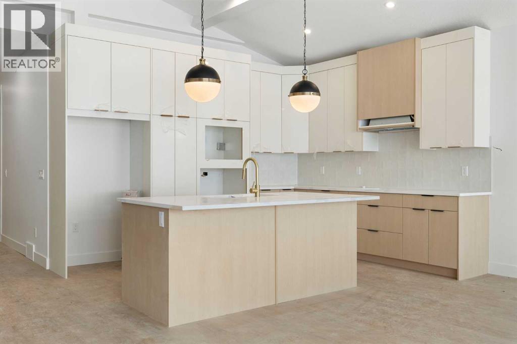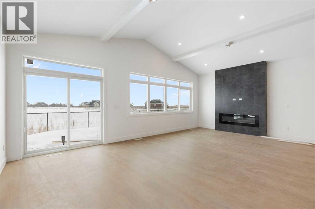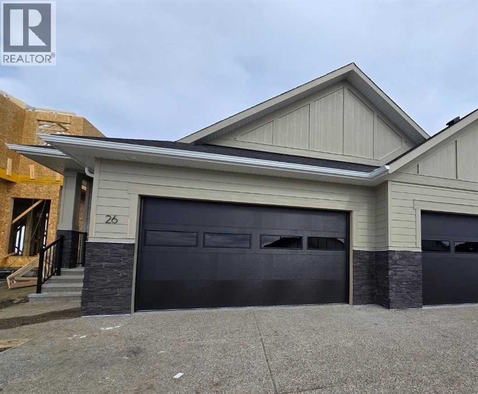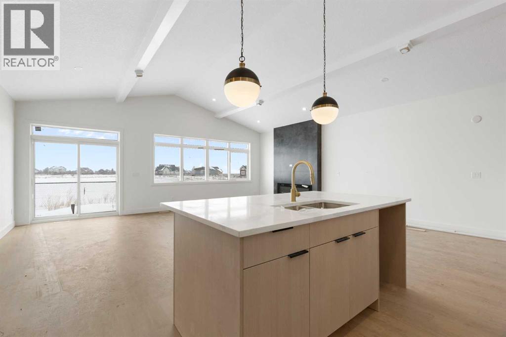 ELIGIBLE FOR FIRST HOME BUYERS GST REBATE. Brand New Fully Finished Bungalow | Pond & Mountain Views | Quiet Cul-de-Sac | Lakes of Muirfield Welcome to 26 St. Andrews Close - an exceptional brand new semi-detached bungalow perfectly positioned on a quiet cul-de-sac in the sought-after golf course community of Lakes of Muirfield. Backing onto open space with no neighbours behind, this home offers stunning pond and mountain views along with 3,258 sq ft of beautifully finished living space. The main floor spans 1,662 sq ft above grade and showcases soaring vaulted ceilings and an open-concept design filled with natural light. The chef-inspired kitchen features quartz countertops, an oversized island with seating, stainless steel appliances, modern cabinetry, and statement pendant lighting. The kitchen flows seamlessly into the dining area and spacious living room, highlighted by a dramatic floor-to-ceiling tile fireplace feature wall. Expansive rear windows frame peaceful water views and open skies, creating a truly serene backdrop. The primary suite is a private retreat complete with a walk-in closet and a luxurious 5-piece ensuite with dual vanities, a deep soaker tub, and separate shower. A second bedroom, full 4-piece bath, mudroom, and convenient main-floor laundry complete this thoughtfully designed level. The fully finished basement offers incredible additional living space with a massive recreation room and stylish wet bar—perfect for entertaining or relaxing. Two additional bedrooms, a full bathroom, ample storage, and a second laundry area add flexibility and function, ideal for guests or multi-generational living. Enjoy the freedom of no water restrictions in this premier golf community - a significant advantage over Calgary, Chestermere, and Strathmore. Low-maintenance living in this quiet, established golf course community just 20 minutes from Calgary and Strathmore. With pond views, mountain views, no neighbours behind, and a premium cul-de-sac location , this home offers the perfect blend of privacy, comfort, and modern design. (id:63190)