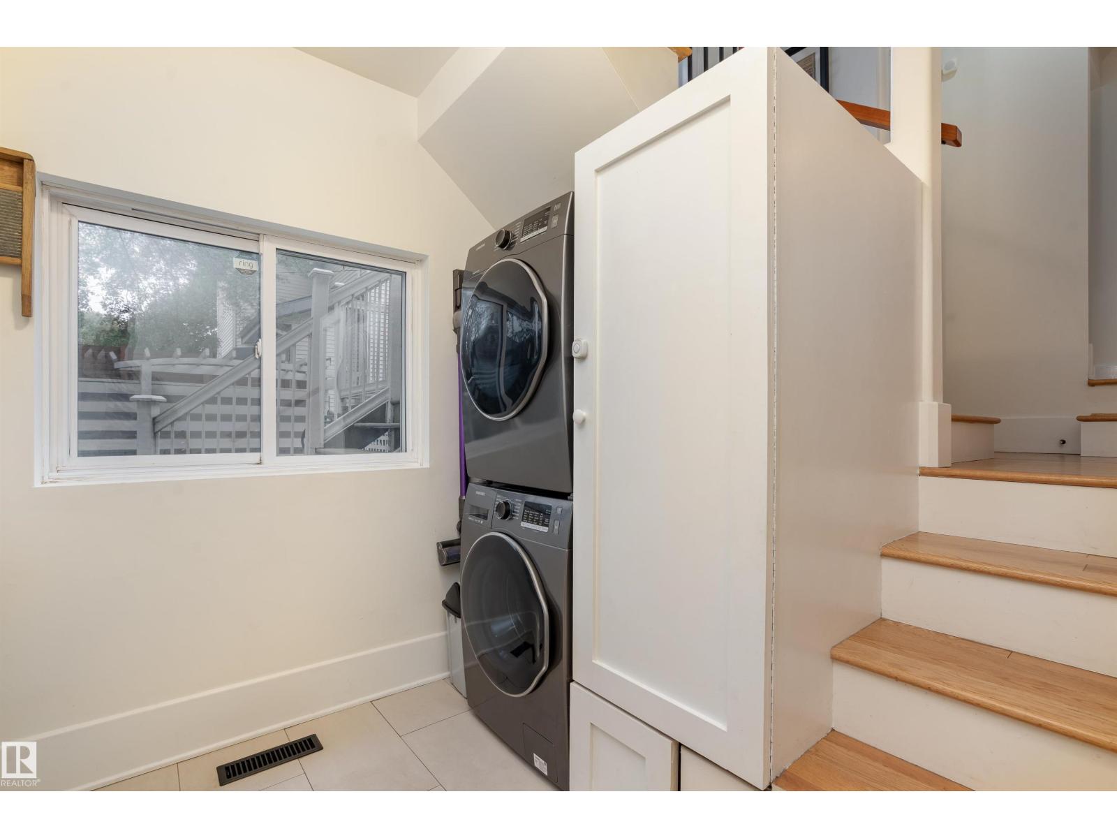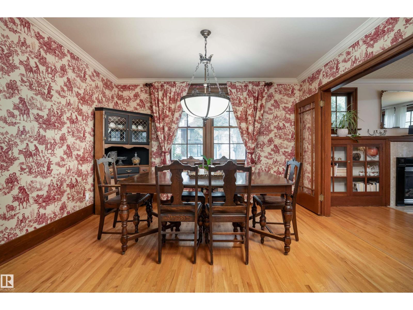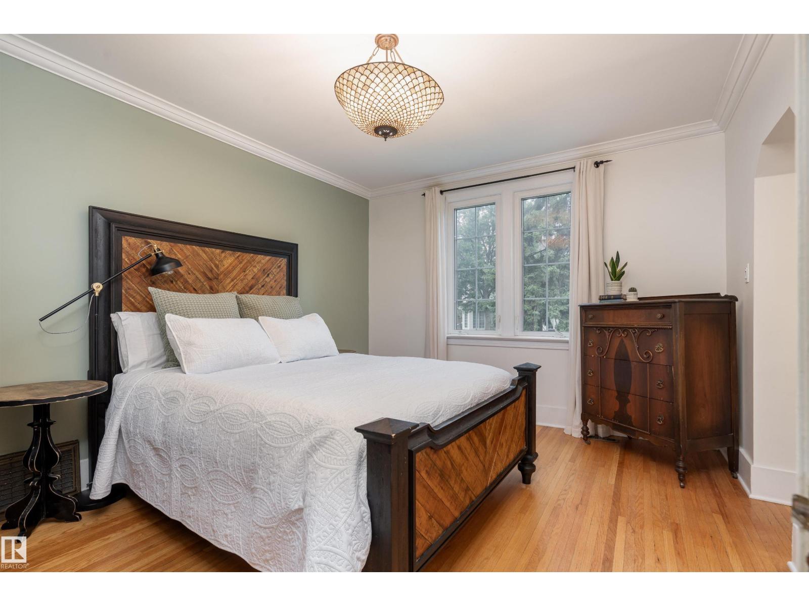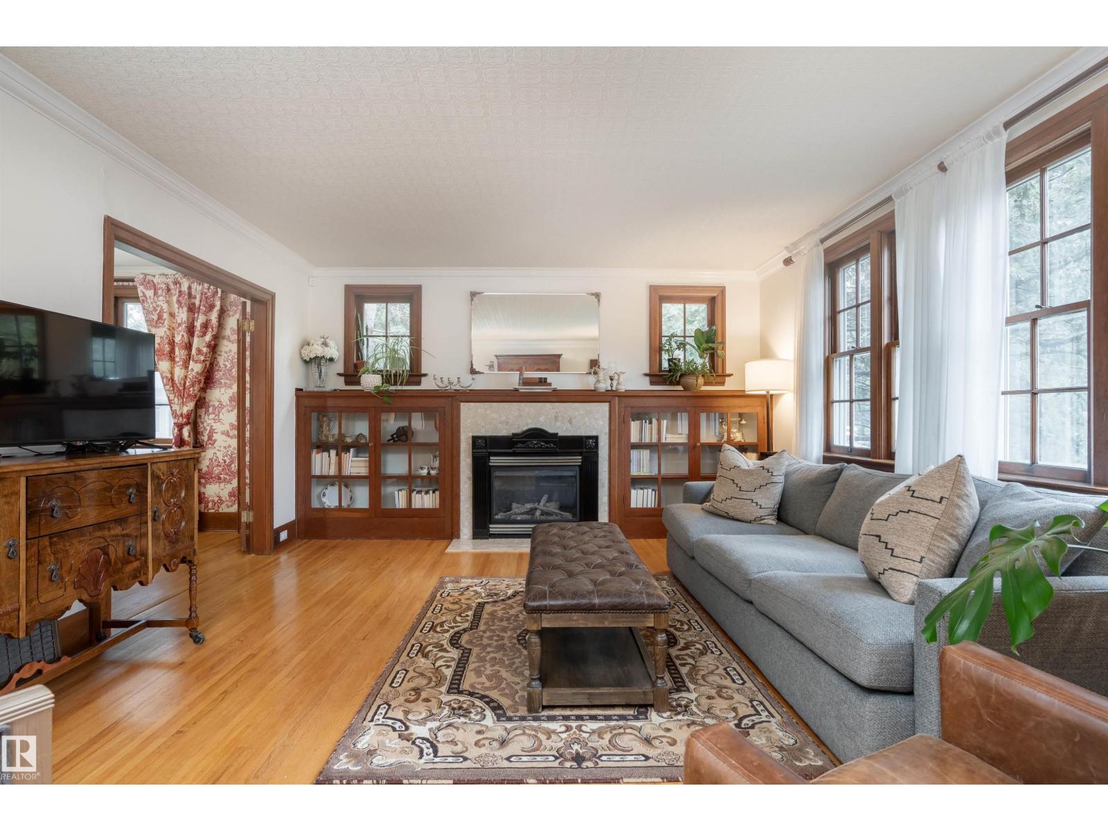 Discover this spectacular home in Rossdale on a double lot, only steps to the River Valley with striking views of the Alberta Legislature from your front street. The main floor features a spacious open-concept kitchen with gas stove, granite counter tops and SS Appliances. The formal dining room is one of a kind w/ custom curtains that will make for a conversation piece at dinner! The cozy front living room sets the mood with a gas fire place & original built-in craftsman cabinets. The main floor primary bedroom includes a renovated 5-piece ensuite w/ a tiled shower & clawfoot tub to maintain the homes old-school charm. Upstairs, an open loft is perfect for a morning coffee, or cuddling with the family for a movie. Two generously sized bedrooms each offer built-in window nooks for reading/extra storage. The fully finished basement has 2 bedroom in-law suite with massive windows, and it's own private entrance and private patio. Major updates: plumbing, electrical, shingles, triple pane windows, and more! (id:63190)