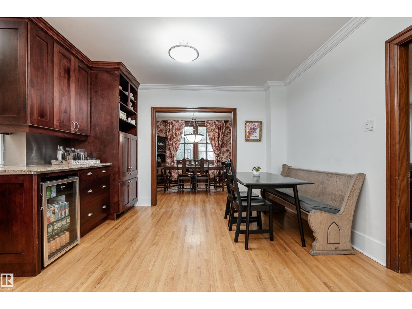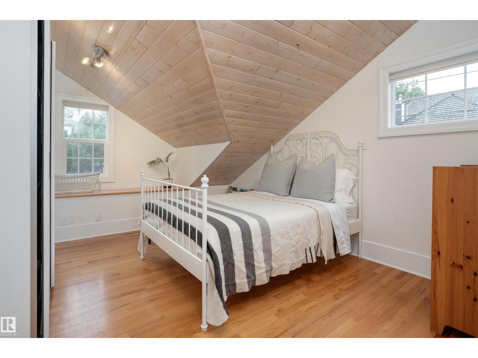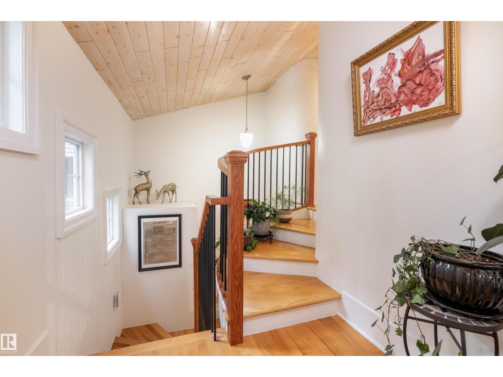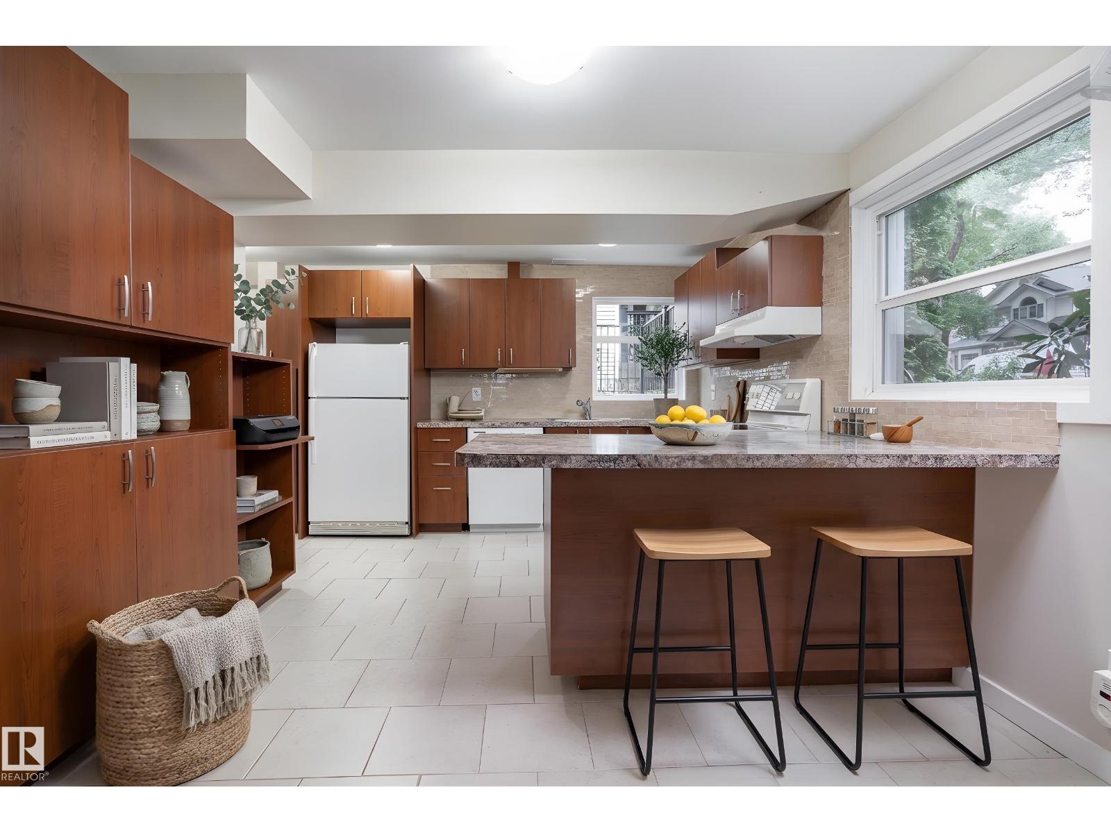 Discover this spectacular home in Rossdale on a double lot, only steps to the River Valley with striking views of the Alberta Legislature from your front street. The main floor features a spacious open-concept kitchen with gas stove, granite counter tops and SS Appliances. The formal dining room is one of a kind w/ custom curtains that will make for a conversation piece at dinner! The cozy front living room sets the mood with a gas fire place & original built-in craftsman cabinets. The main floor primary bedroom includes a renovated 5-piece ensuite w/ a tiled shower & clawfoot tub to maintain the homes old-school charm. Upstairs, an open loft is perfect for a morning coffee, or cuddling with the family for a movie. Two generously sized bedrooms each offer built-in window nooks for reading/extra storage. The fully finished basement has 2 bedroom in-law suite with massive windows, and it's own private entrance and private patio. Major updates: plumbing, electrical, shingles, triple pane windows, and more! (id:63190)