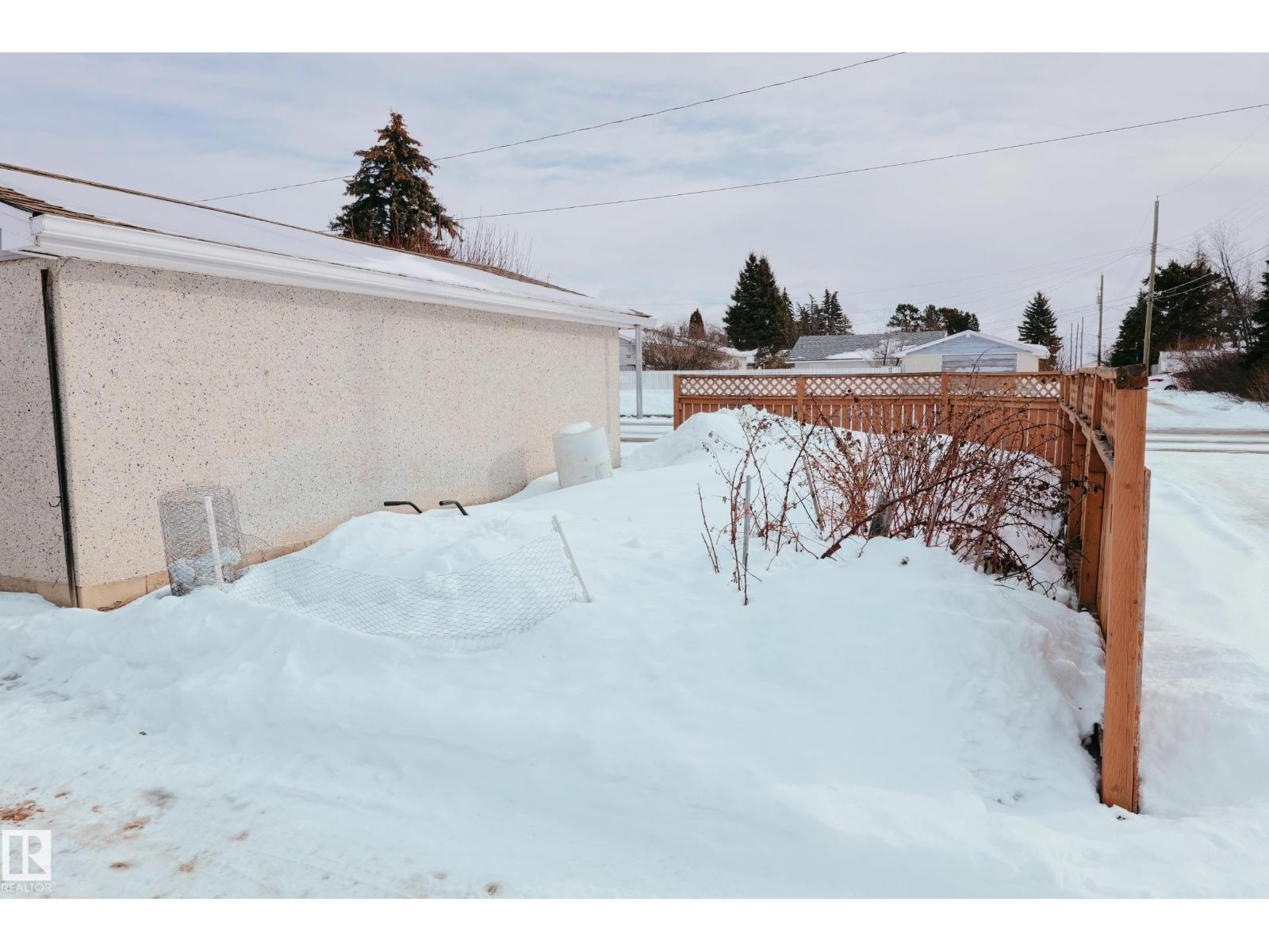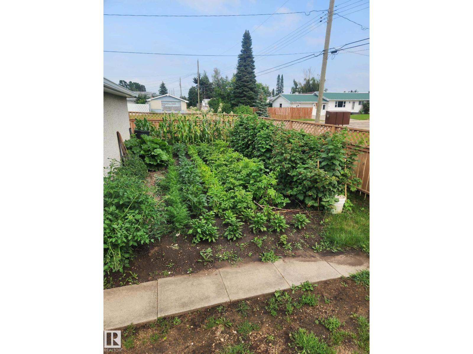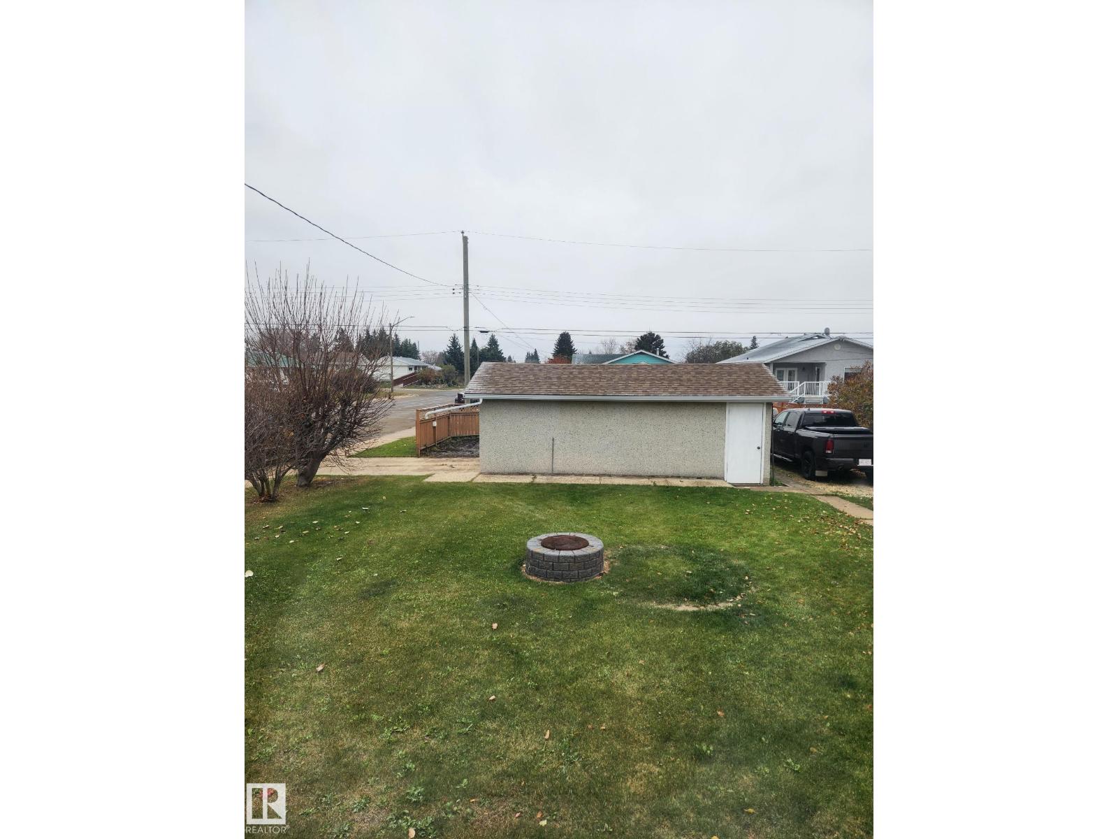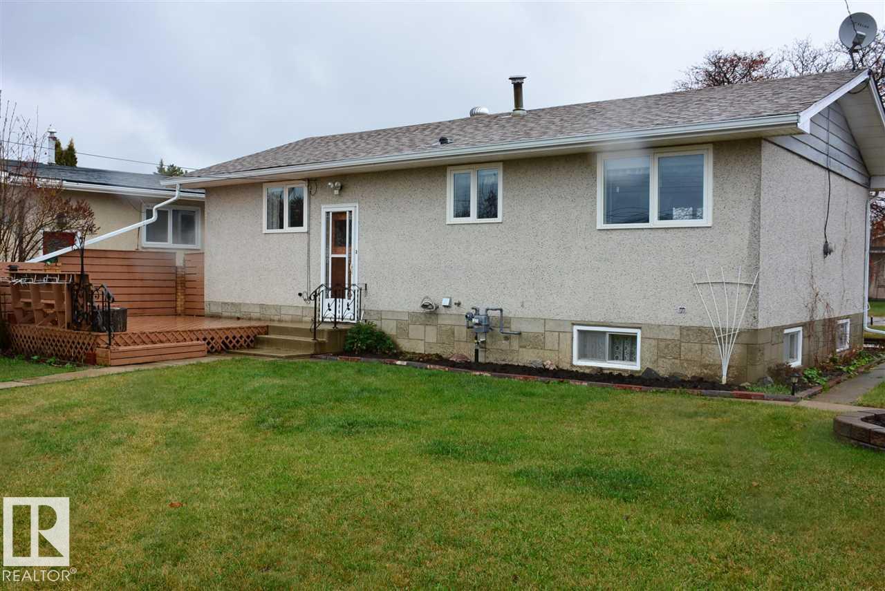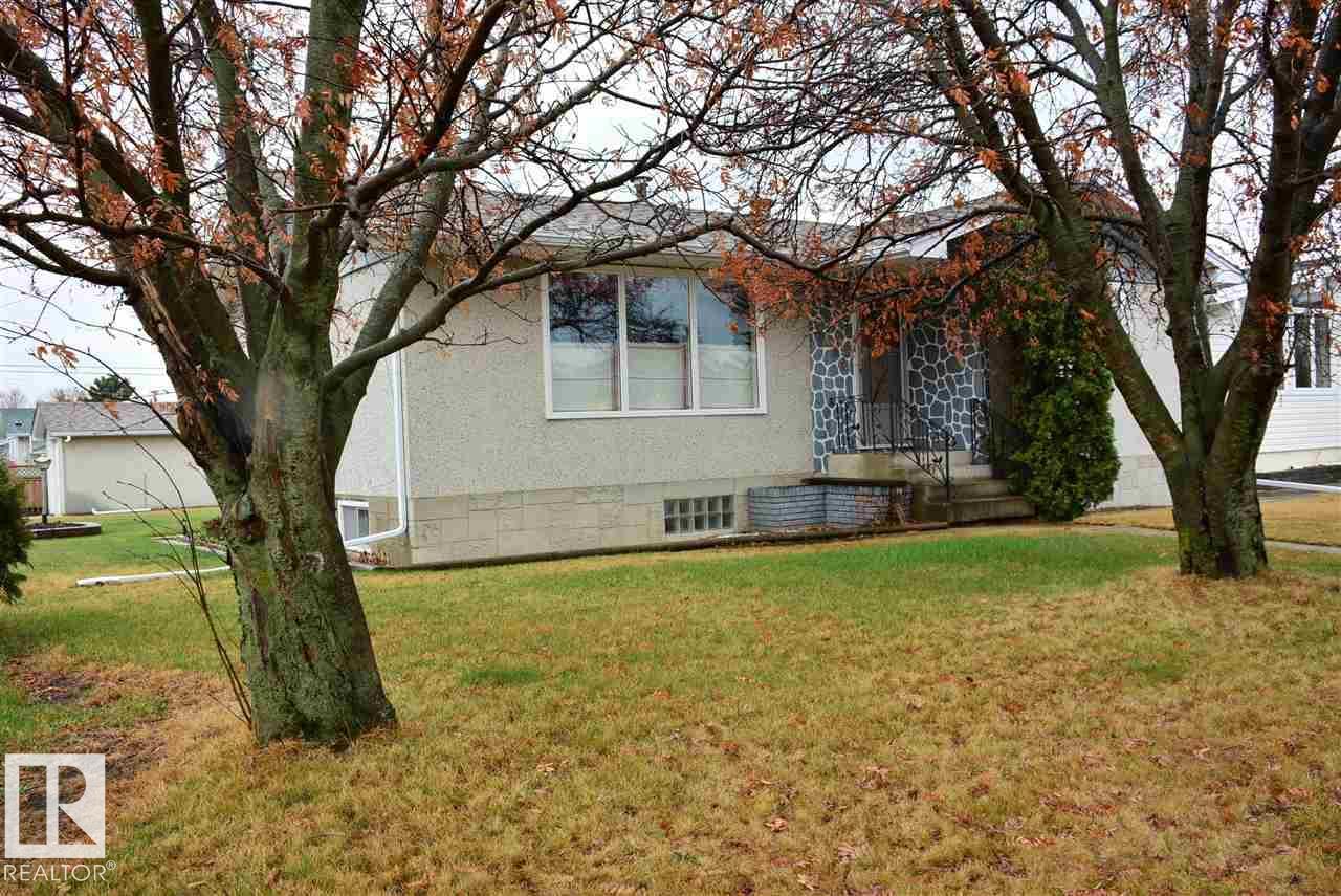 Gorgeously unique corner lot Bungalow located only a half block from the Sports & Rodeo grounds in the high & dry North East side of Barrhead. Well cared for inside & out w/ inviting open concept entrance which provides amazing open feel & great light throughout the main floor. Plentiful kitchen cabinetry featuring an upgraded look. Good dining room table space w/ open flow to the original hardwood floor covered main living room. 2 main floor bedrooms w/ options for 2 additional downstairs along w/ excellent storage. Stylish 4 pc bathroom along w/ spacious 3 pc shower bathroom down. Dedicated laundry area w/ space for freezer & side pantry. Beautiful yard features a central firepit area as well as upgraded flower bed displays plus decorative rock accenting. South sun catching garden space. Detached garage/ workshop. Extra on street & off street parking includes additional rear gravel pad not pictured. Add your own personal touches to make your own. Ready & awaiting you. (id:63190)