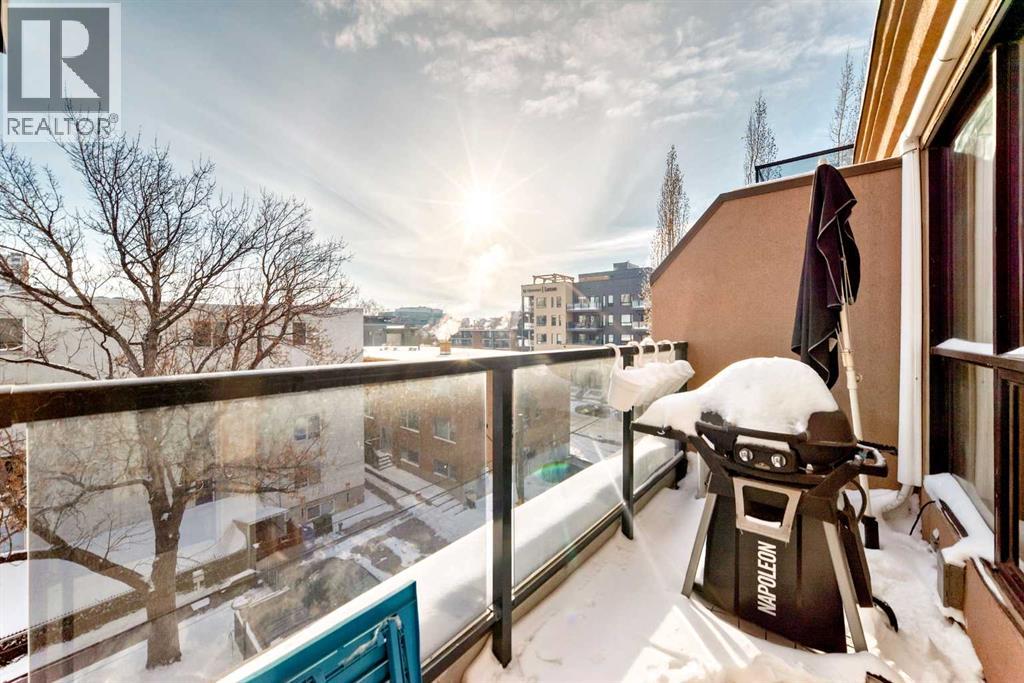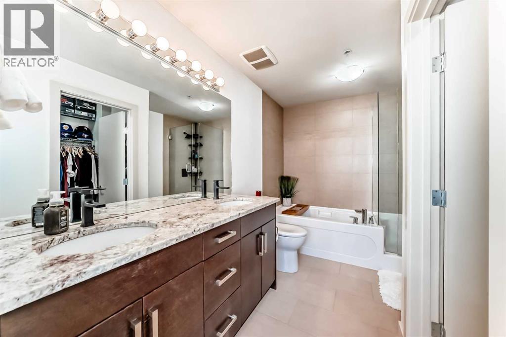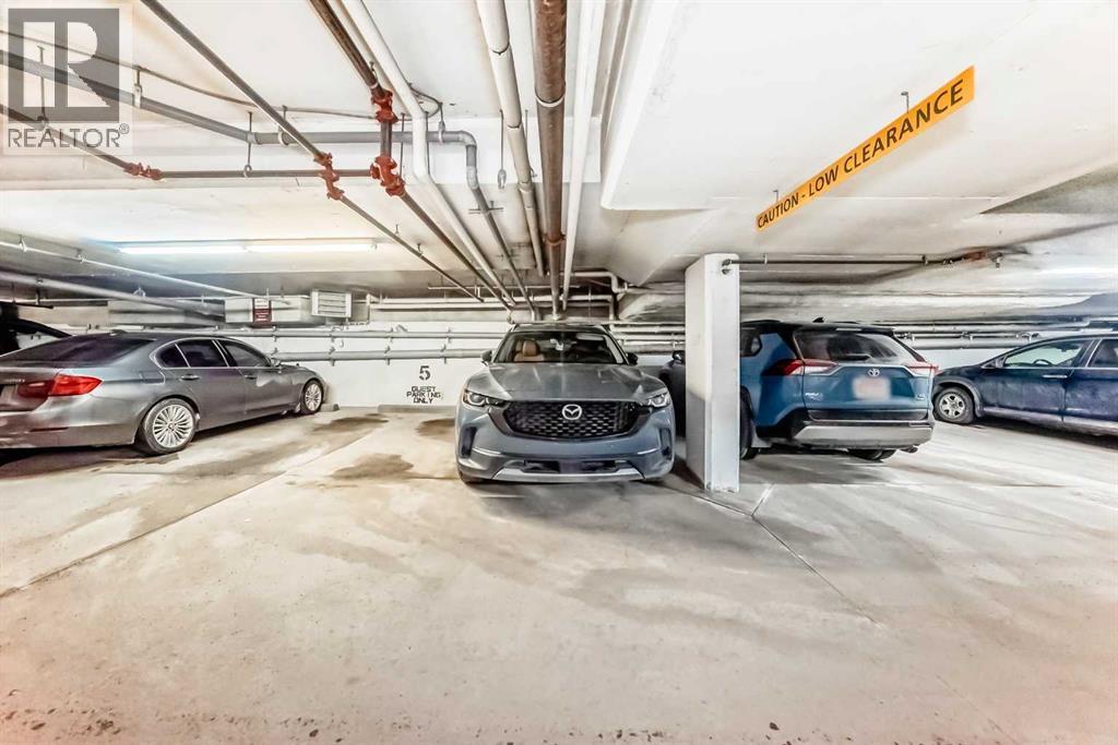 Stunning One Bedroom Condo at TWEED! This boutique executive residence building is a concrete and steel constructed complex on a quaint tree-lined street in Cliff Bungalow, boasting a brick/stucco exterior, two elevators and professionally designed common areas. The open concept interior of this unit impresses with stainless steel appliances, stylish granite countertops, a tiled backsplash and contemporary flat panel cabinetry. The bedroom is a serene space with large windows and a 5-piece ensuite. Additional elements include air conditioning, vinyl plank flooring, a 2-piece bathroom, a modern fireplace, in-suite laundry, and a beautiful window wall in the living room, a large balcony with a BBQ gas line. An incredibly convenient storage locker is included, separate from the suite on the 4th floor, an underground parking stall, a large balcony with a BBQ gas line. Cliff Bungalow is tucked between Mission and Lower Mount Royal; a mature neighbourhood, close to many desirable shops, trendy eateries, urban parks and a quick walk into Downtown. Book an appointment to view. (id:63190)