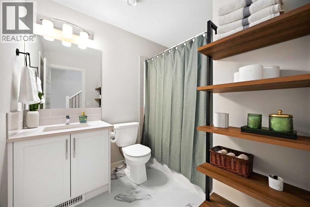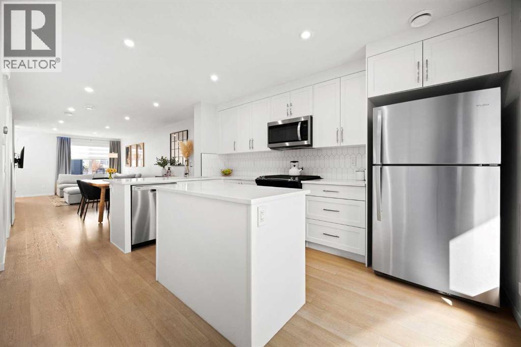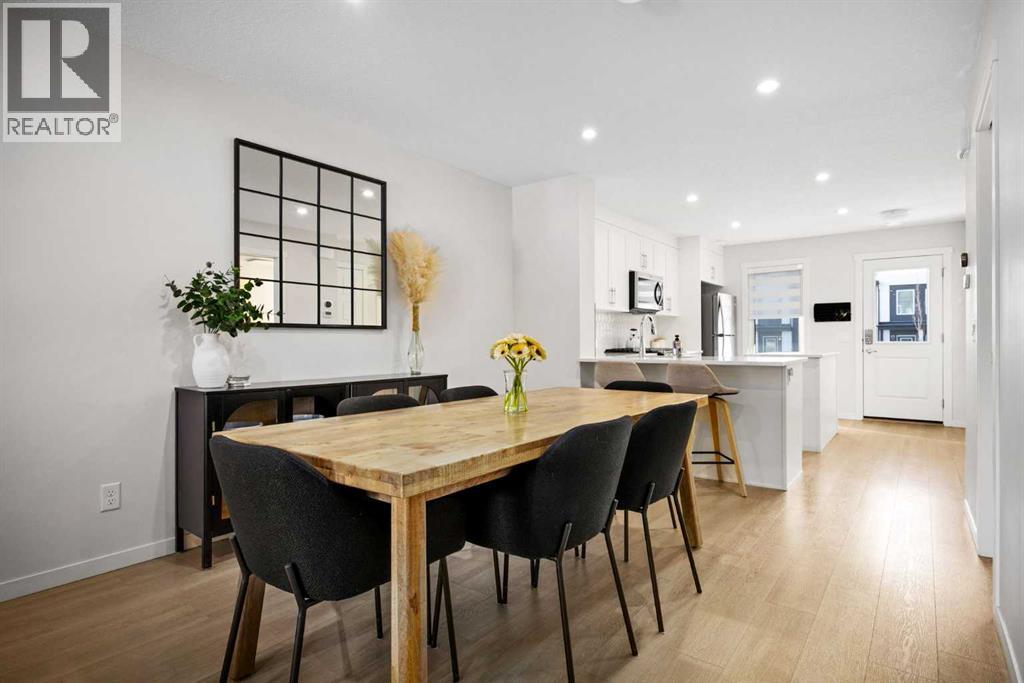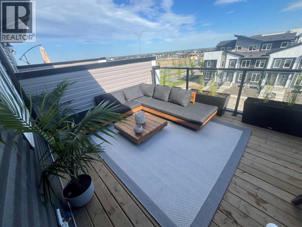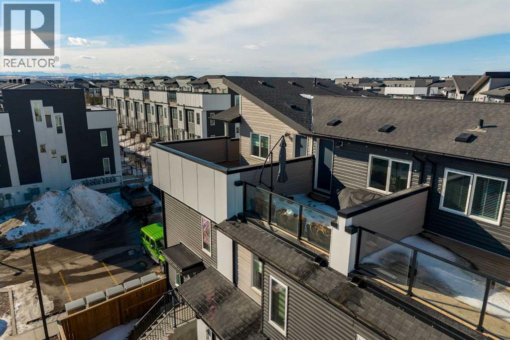 Welcome to this stunning 2023-built townhome in the vibrant community of Seton, offering modern design, thoughtful upgrades, and incredible rooftop views. As you step inside, you’re greeted by a bright open-concept main floor where the living, dining, and kitchen areas flow seamlessly together. Large windows flood the space with natural light, creating a warm and inviting atmosphere. The beautifully upgraded kitchen features stylish cabinetry, upgraded appliances, and a contemporary backsplash that ties the space together perfectly for both everyday living and entertaining. Knockdown ceilings and pot lights add to the fresh, modern feel, making this home truly feel brand new. From the main level, step outside to your fully fenced backyard complete with a shed—ideal for pets, kids, or BBQing on hot summer evenings.On the second level, you’ll find a spacious primary bedroom highlighted by a stunning feature wall and a private 3-piece ensuite. A generously sized second bedroom includes a convenient Murphy bed, creating flexibility for guests, a home office, or both. An additional 4-piece bathroom and laundry closet completes this level. The third floor offers an impressive and versatile family space that can function as a bonus room, media room, home gym, or entertaining lounge. Complete with a wet bar and mini fridge, it’s perfectly set up for hosting friends and family. Step out onto the incredible rooftop deck where you can soak up sun all day long while enjoying expansive views stretching to the mountains and beyond. Additional features include central air conditioning, high-end zebra blinds and curtains, upgraded carpet, luxury vinyl plank flooring throughout, low condo fees, and a fantastic location just steps from the HOA and its amenities.Living in Seton means enjoying one of Calgary’s most dynamic and amenity-rich communities. Residents have access to the impressive Brookfield Residential YMCA at Seton, one of the largest YMCA facilities in North America, as well as the nearby South Health Campus. The community offers a growing urban district filled with shops, restaurants, entertainment options including a VIP Cineplex theatre, grocery stores, cafés, parks, pathways, and convenient access to major roadways. Seton truly delivers the perfect blend of urban convenience and connected community living—and this exceptional townhome allows you to experience it all in style. (id:63190)