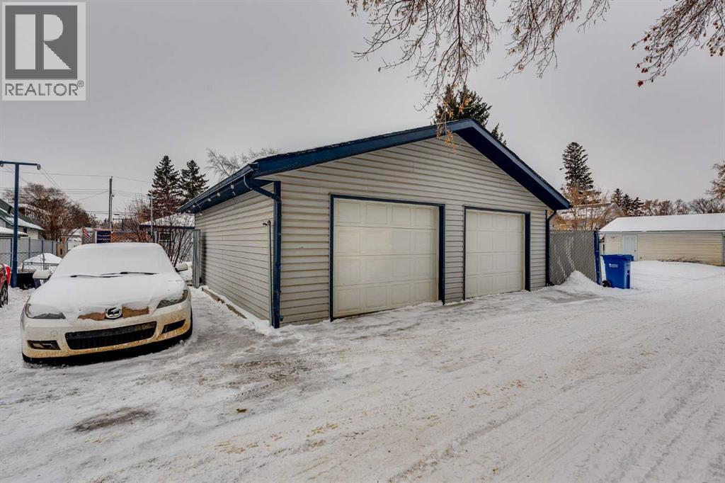 Welcome to this well-laid-out bungalow offering 1,184 sqft above grade with a functional layout and added flexibility downstairs. The main floor features a bright and spacious living room with large windows that fill the space with natural light. The adjoining kitchen offers ample cabinetry and room for dining, with convenient access to the deck — perfect for entertaining. The primary bedroom includes a walk-in closet, while a second bedroom and a versatile den provide options for a home office, nursery, or guest space. A well-appointed 4-piece bathroom completes the main level. Downstairs, the basement offers additional developed space including a recreation room, bedroom, 3-piece bathroom, kitchen area, and generous storage. The basement contains updated plumbing, new hot water tank and new furnace, on top of all newer vinyl windows through out. Situated on a large double lot, this property offers exceptional outdoor space and future potential. The oversized detached garage provides plenty of room for vehicles, storage, or workshop space — ideal for hobbyists or those needing extra parking. This home is a must see as it is conveniently located close to transit, schools, and shopping. This home combines space, flexibility, and location — making it a fantastic opportunity for homeowners and investors alike. (id:63190)