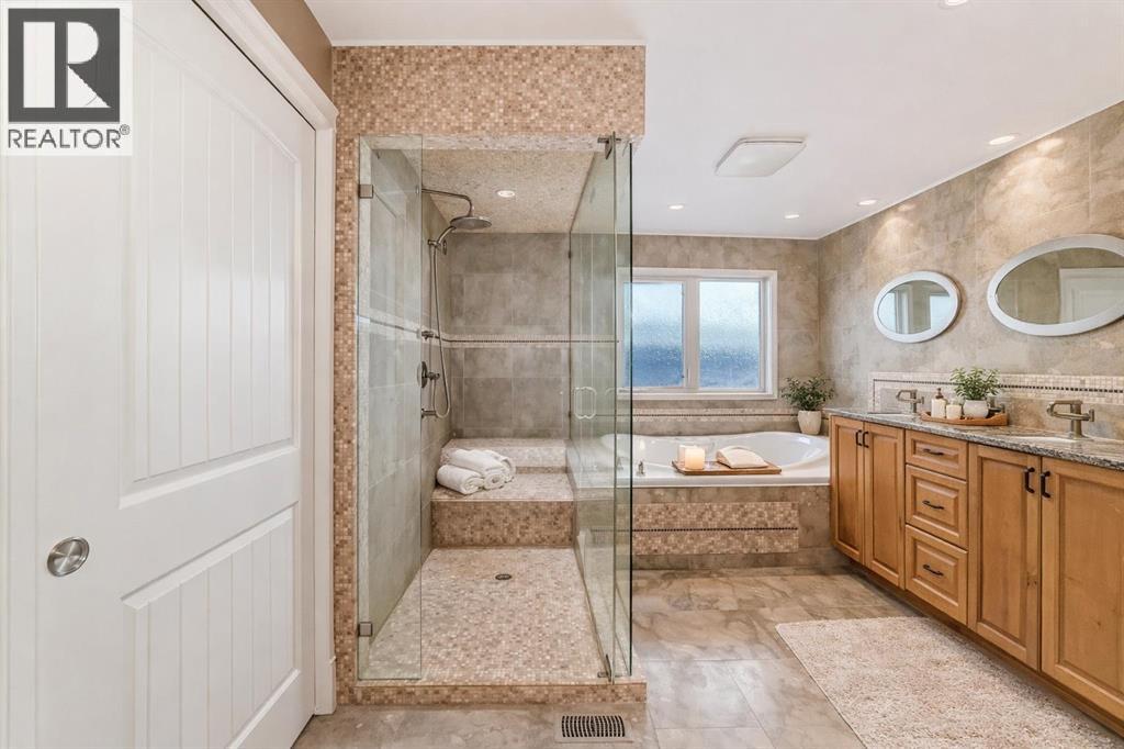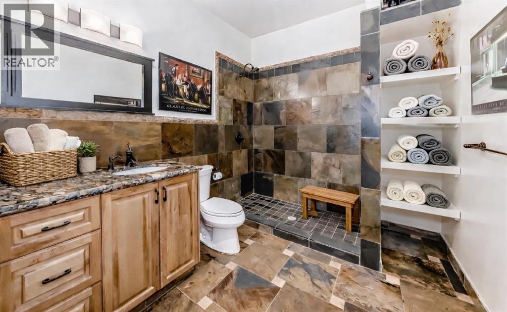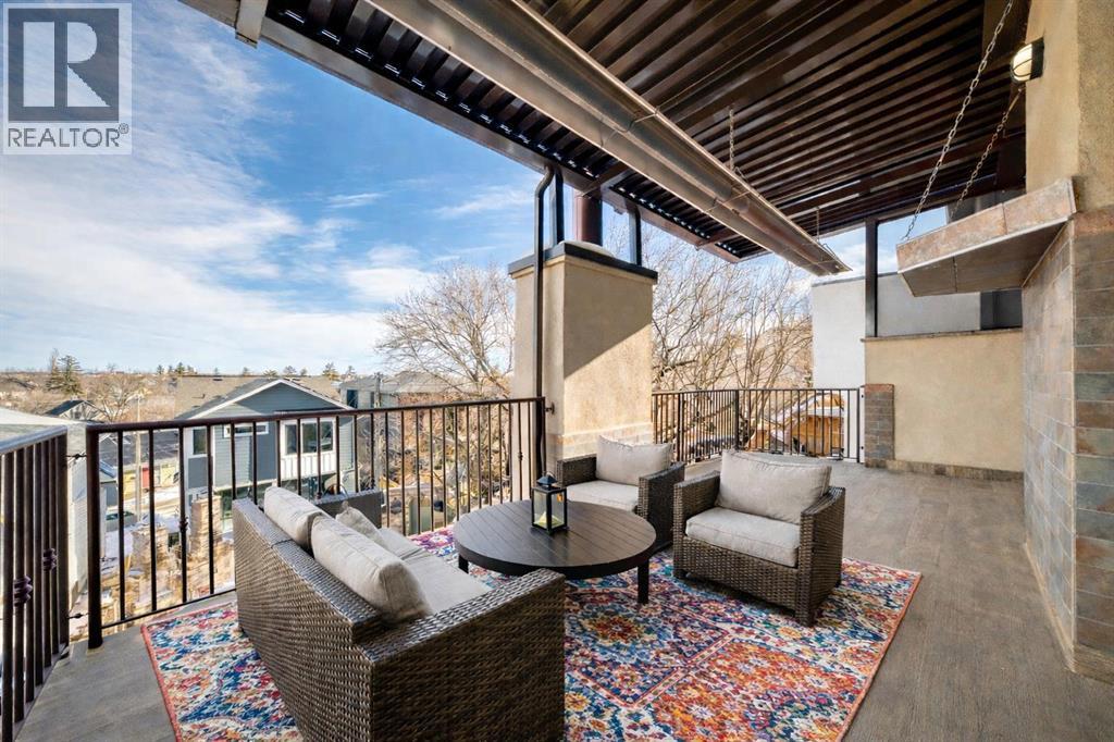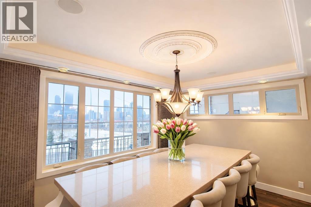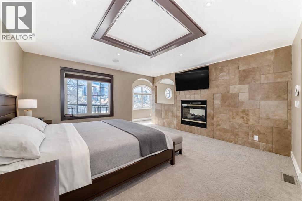 Step inside a home where everyday life feels extraordinary.Inspired by the romance and warmth of a Tuscan villa, this custom-built estate offers over 4,600 square feet of beautifully curated living space across four levels — each one designed for connection, retreat, and unforgettable moments. Nestled in vibrant Ramsay, you can stroll to river pathways, parks, the Stampede Grounds, or downtown Calgary, then return home to your own private sanctuary in the city.Arrival is an experience in itself. Cast iron stairs lead to a full-width porch and a charming alcove entrance, where a secure gated entry welcomes you with a sense of privacy and grace. Inside, the heart of the home unfolds. The chef’s kitchen — anchored by premium appliances, a generous island, built-in pantry, and sunlit breakfast nook — invites slow mornings and lively evenings. The dining area captures breathtaking city views, setting the stage for unforgettable dinners. Just a few steps down, the mezzanine living room glows with warmth from a wood-burning fireplace crowned by a striking bronze hood. Doors open to a heated deck with adjustable louvres — a seamless indoor-outdoor space designed for Calgary’s ever-changing seasons.The entire top floor is a retreat unlike any other. Your private primary sanctuary includes panoramic skyline views, a balcony for quiet mornings, a two-sided fireplace, cozy reading nook, dedicated office space, and a spa-inspired ensuite complete with steam shower and heated bench. It’s a space designed not just for rest, but for restoration.On the lower level, two private bedrooms with their own ensuites offer comfort and independence for family or guests. Downstairs, the fully developed walkout basement transforms entertaining into an art form — featuring a wet bar, gated wine cellar and tasting room, and a spacious recreation area that opens to a terraced courtyard.Outside, the villa-inspired stone garden becomes your personal escape. An elegant archway, wood-burning fir eplace, outdoor kitchen, and handcrafted pizza oven create the perfect backdrop for long summer evenings and intimate gatherings under the stars. A terrific place to host a garden party.With two laundry areas, two wood-burning fireplaces, a custom home gym, heated triple garage with mudroom access, in-floor heating, a powerful 9-ton A/C system, exterior double spiral staircase, smart security, built-in sound, and updated mechanical systems(boiler replaced in 2024)— every detail has been thoughtfully considered.This is more than a home.It is a lifestyle — rich in warmth, privacy, beauty, and unforgettable moments. Book your experience today. Some of the rooms have been virtually staged. (id:63190)