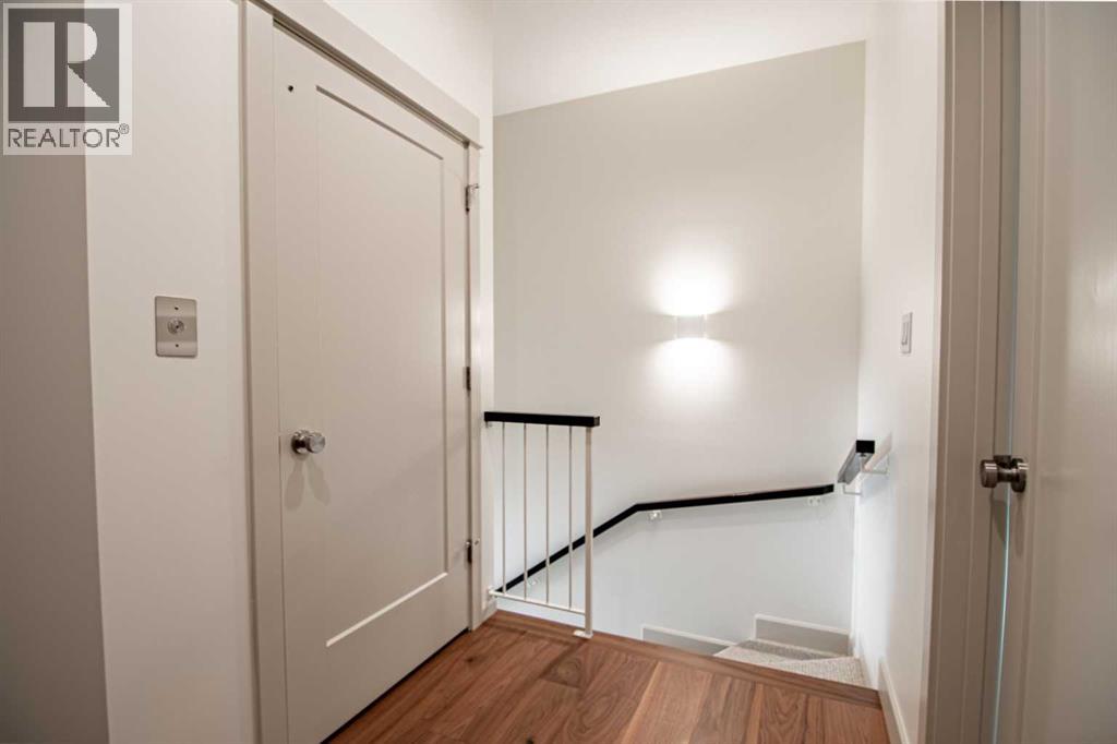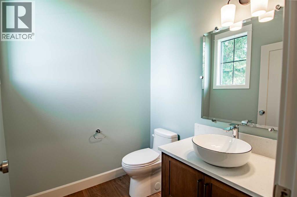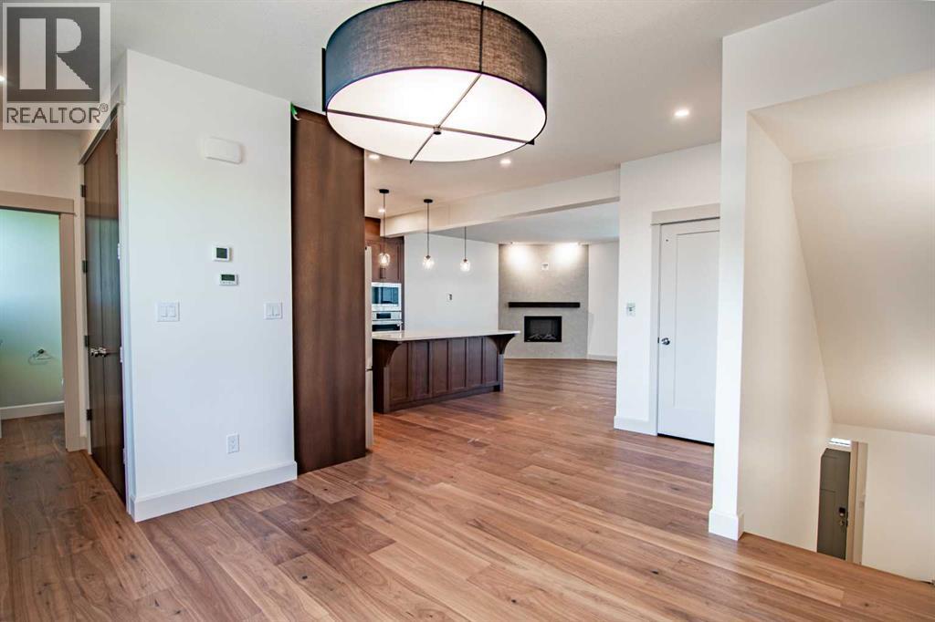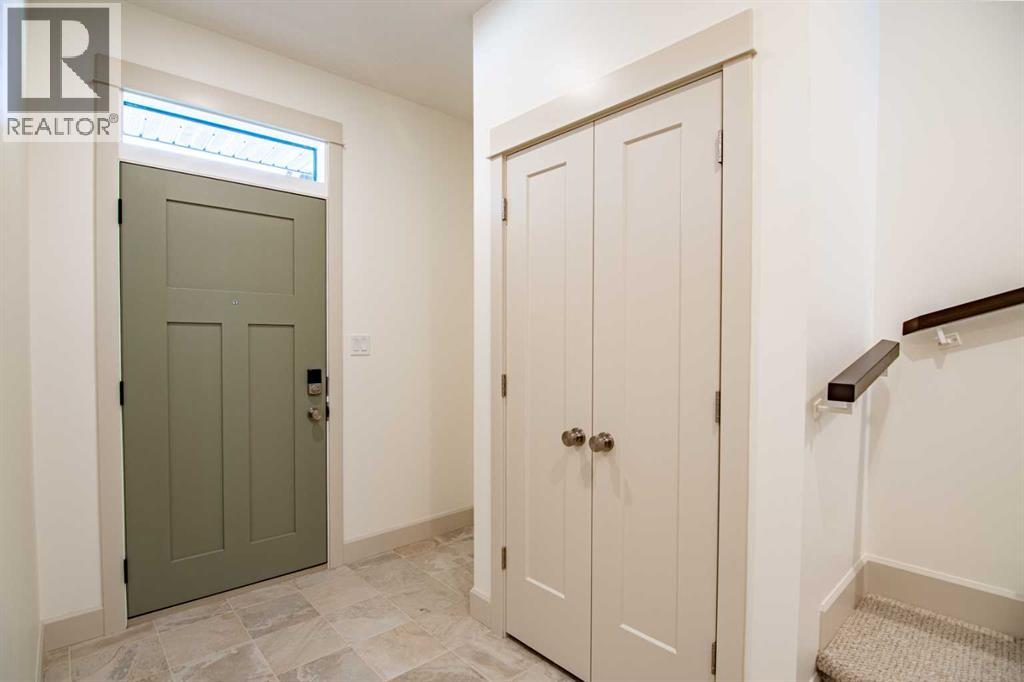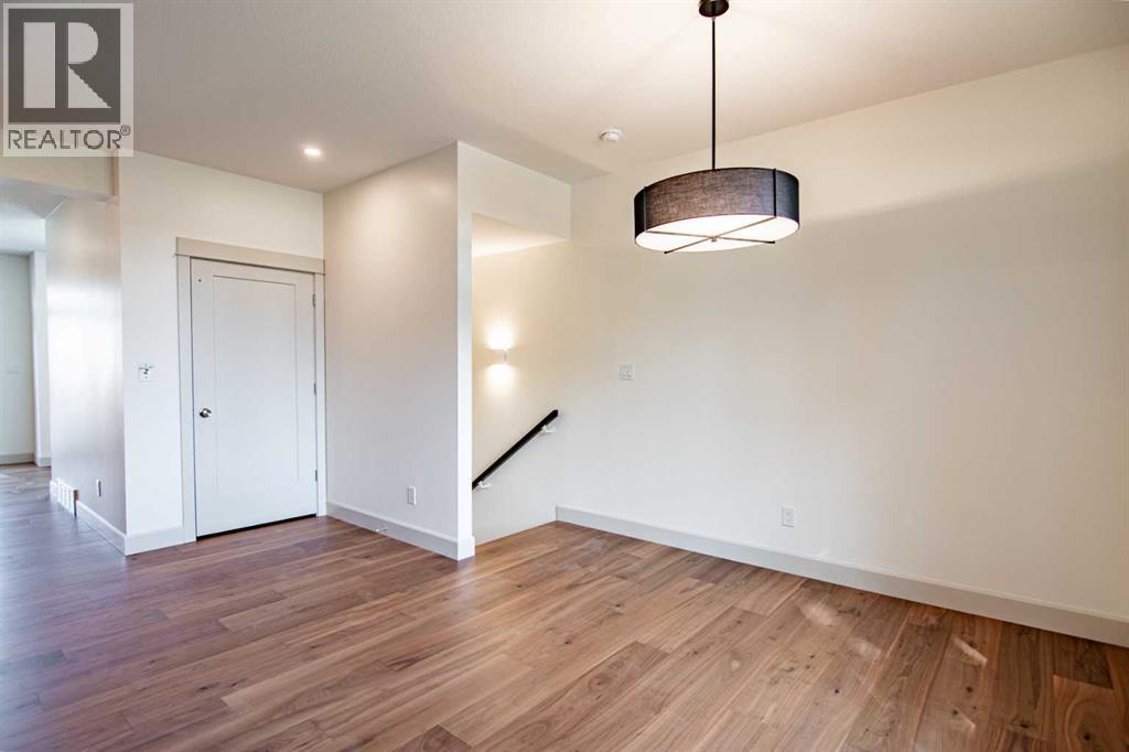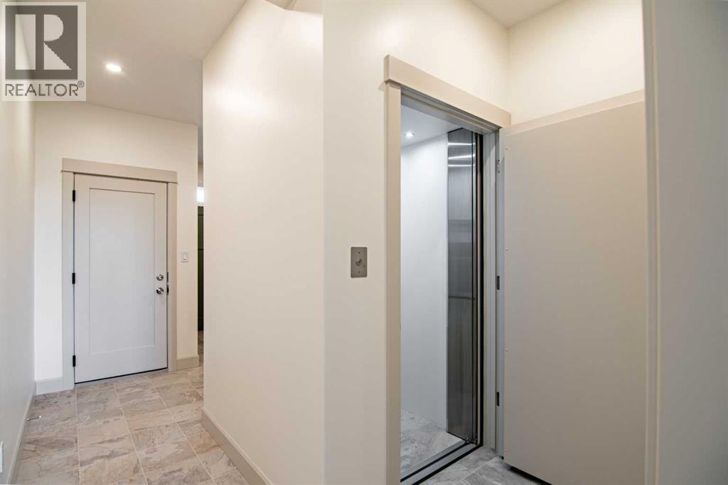 Welcome to Edgerton Place, where comfort meets convenience in the heart of Rocky Mountain House. Nestled in the stunning foothills of the Rocky Mountains this executive new build townhome offers a modern, low-maintenance lifestyle in a prime central location—just steps from brand-new pickleball courts and within walking distance to local shops, restaurants, and everyday amenities. The main level welcomes you with a spacious family room, ideal for hosting guests or enjoying quiet evenings, complete with a stylish three-piece bath. A wide hallway, adorned with rich cream-colored slate tile, leads to an open foyer that sets the tone for the rest of the home. Just off the foyer, the heated garage is ready for both comfort and function, equipped with 220-volt wiring for electric vehicles or workshop use. A separate utility room adds convenience, while the elevator provides effortless access to every level of the home, making it ideal for those seeking long-term accessibility. Up the beautifully crafted stairway, finished in deep-toned hardwood and lit by elegant gallery lighting, the second level opens to a bright and airy dining room perfect for entertaining. A discreet two-piece powder room and a walk-in pantry sit just off the dining area, adding both style and storage. The heart of the home is the expansive kitchen, where an oversized island invites gatherings and casual meals. Light quartz countertops pair perfectly with custom dark wood cabinetry, all accented by a cream-toned tile backsplash that adds warmth and texture. Adjacent to the kitchen, the living room is anchored by a sleek floor-to-ceiling fireplace that brings both visual impact and cozy ambiance. From here, step out onto your private balcony, finished with modern glass and aluminum railings — a low-maintenance space perfect for outdoor entertaining or quiet morning coffee. The third floor is dedicated to rest and retreat. The primary bedroom is a true sanctuary, featuring vaulted ceilings, abundant na tural light, a walk-in closet, and a luxurious four-piece ensuite bath with accessible shower. A spacious secondary bedroom also offers its own large closet and a private three-piece ensuite, providing comfort and privacy for family or guests. Conveniently located between the bedrooms, the laundry area ensures maximum efficiency without sacrificing space or design. From top to bottom, this home is a rare find — offering upscale finishes, smart functionality, and timeless design, all wrapped in an accessible, thoughtfully crafted layout. Whether you're looking for luxury, flexibility, or a forever home, this townhome delivers on every level. (id:63190)