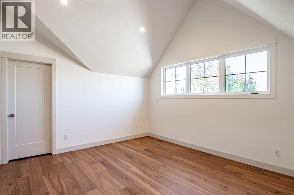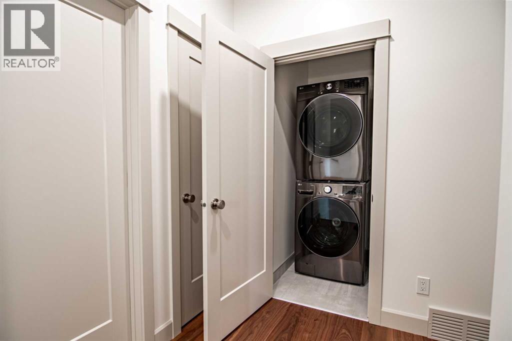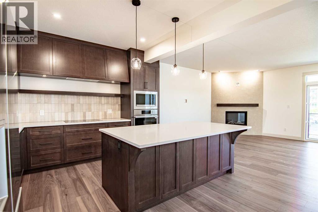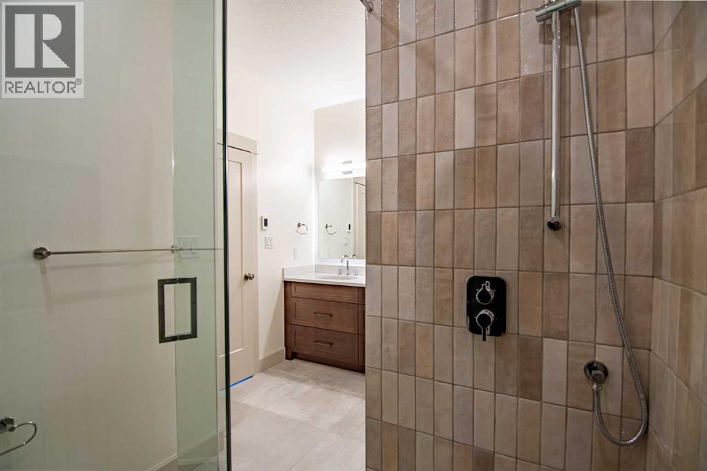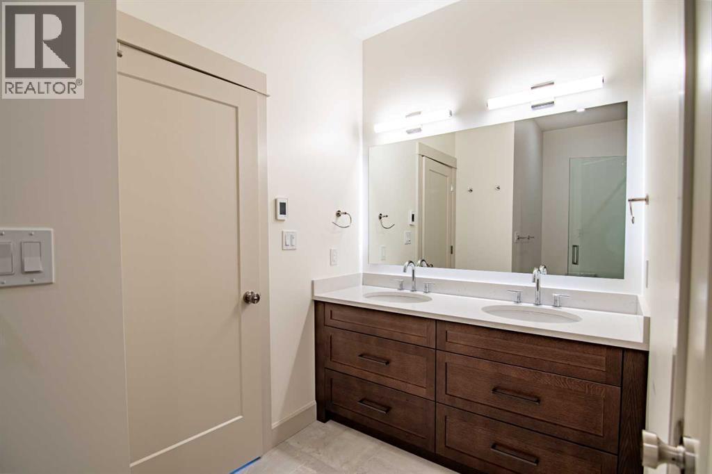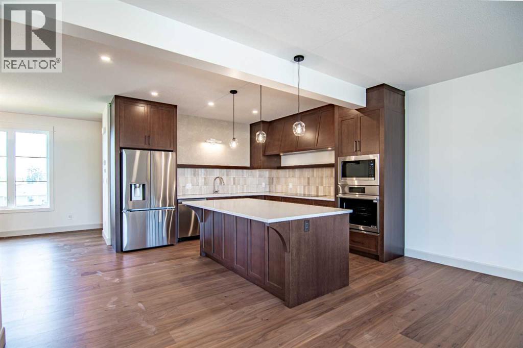 Welcome to Edgerton Place, where comfort meets convenience in the heart of Rocky Mountain House. Nestled in the stunning foothills of the Rocky Mountains this executive new build townhome offers a modern, low-maintenance lifestyle in a prime central location—just steps from brand-new pickleball courts and within walking distance to local shops, restaurants, and everyday amenities. The main level welcomes you with a spacious family room, ideal for hosting guests or enjoying quiet evenings, complete with a stylish three-piece bath. A wide hallway, adorned with rich cream-colored slate tile, leads to an open foyer that sets the tone for the rest of the home. Just off the foyer, the heated garage is ready for both comfort and function, equipped with 220-volt wiring for electric vehicles or workshop use. A separate utility room adds convenience, while the elevator provides effortless access to every level of the home, making it ideal for those seeking long-term accessibility. Up the beautifully crafted stairway, finished in deep-toned hardwood and lit by elegant gallery lighting, the second level opens to a bright and airy dining room perfect for entertaining. A discreet two-piece powder room and a walk-in pantry sit just off the dining area, adding both style and storage. The heart of the home is the expansive kitchen, where an oversized island invites gatherings and casual meals. Light quartz countertops pair perfectly with custom dark wood cabinetry, all accented by a cream-toned tile backsplash that adds warmth and texture. Adjacent to the kitchen, the living room is anchored by a sleek floor-to-ceiling fireplace that brings both visual impact and cozy ambiance. From here, step out onto your private balcony, finished with modern glass and aluminum railings — a low-maintenance space perfect for outdoor entertaining or quiet morning coffee. The third floor is dedicated to rest and retreat. The primary bedroom is a true sanctuary, featuring vaulted ceilings, abundant na tural light, a walk-in closet, and a luxurious four-piece ensuite bath with accessible shower. A spacious secondary bedroom also offers its own large closet and a private three-piece ensuite, providing comfort and privacy for family or guests. Conveniently located between the bedrooms, the laundry area ensures maximum efficiency without sacrificing space or design. From top to bottom, this home is a rare find — offering upscale finishes, smart functionality, and timeless design, all wrapped in an accessible, thoughtfully crafted layout. Whether you're looking for luxury, flexibility, or a forever home, this townhome delivers on every level. (id:63190)